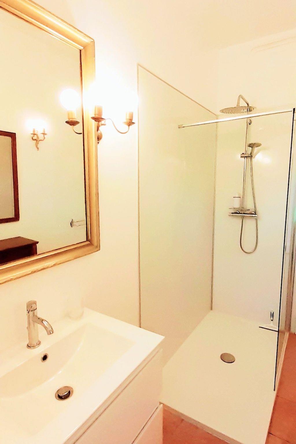 The immense wooded garden (2,500m2) bordered by stone walls is the perfect place to relax on deckchairs. A footpath leads down to the beautiful white sandy beach.