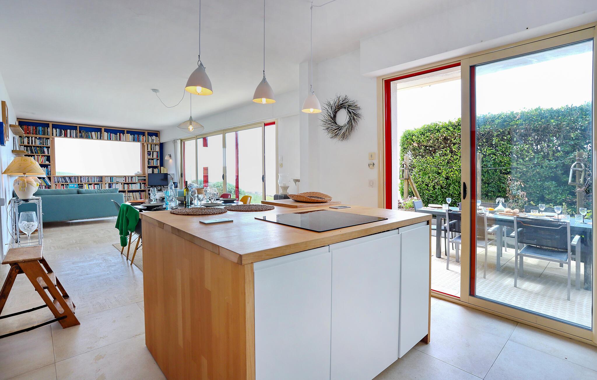 Velkommen til dette rummelige feriehus, hvor I kan se havet fra alle rum. Pisk lækre måltider op i det moderne, åbne køkken og tag plads i den lyse og smagfuldt indrettede opholdsstue. Gennemse det interne bibliotek og glæd jer til hyggelige aftener og gode snakke med et glas vin i sofaen.