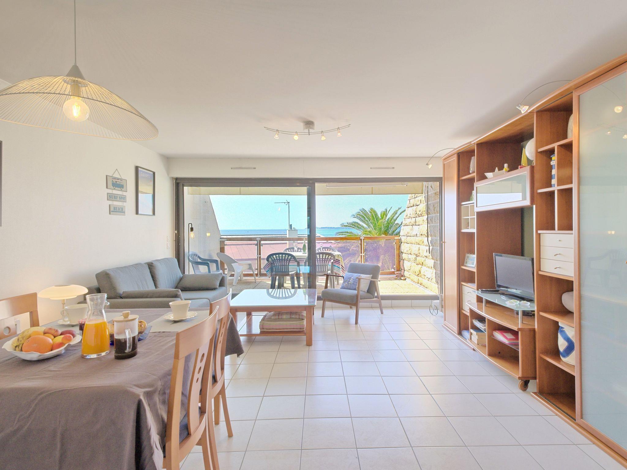 "Belle Vue Mer et Groix", 3-room apartment 70 m2 on 2 levels on 2nd floor. Bright, renovated in 2025: living/dining room with dining nook, TV, international TV channels and hi-fi system. Exit to the balcony. 1 room with sloping ceilings with 1 french bed (160 cm, length 200 cm). 1 room with sloping ceilings with 2 beds (90 cm, length 190 cm). Kitchen (oven, dishwasher, 4 ceramic glass hob hotplates, toaster, kettle, microwave, freezer, electric coffee machine). Shower/WC, sep. WC. Electric heating. Balcony 12 m2. Balcony furniture. View of the sea. Facilities: washing machine, iron, children's high chair, baby cot. Internet (WiFi, free). Please note: smoke alarm.