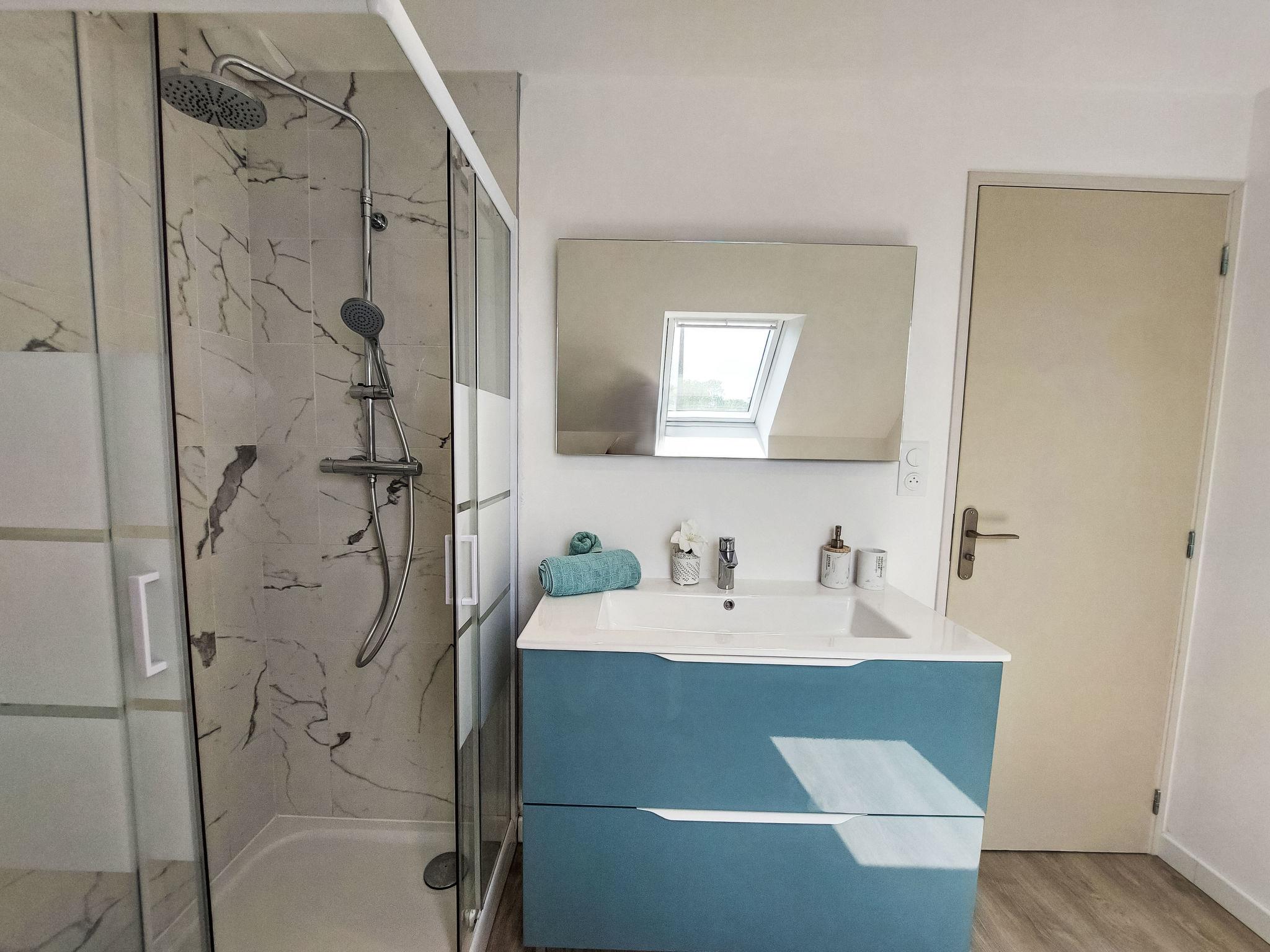 Terraced house "La Trélennoise", renovated in 2024. 2.4 km from the centre of Plonéour-Lanvern, 7 km from the sea, 7 km from the beach. For shared use: property 1'000 m2, garden (not fenced) with lawn, parking (for 2 cars) on the premises. Shop 2 km, restaurant 2 km, bus stop 2 km, sandy beach "Plage de Kermabec" 7 km. Sports harbour 15 km, surf school 7 km. Nearby attractions: Pointe de la Torche 10 km, Pont l'Abbé 6 km, Le Guilvinec 13 km, Phare d'Eckmühl 14 km, Audierne, Cap Sizun 28 km. Hiking paths: GR34, Baie d'Audierne, Cap Sizun.