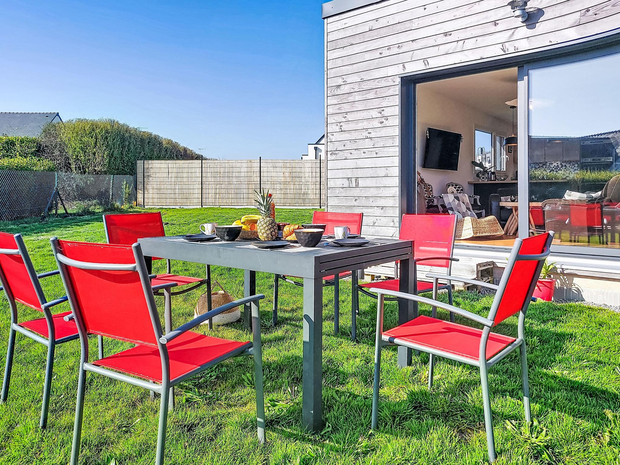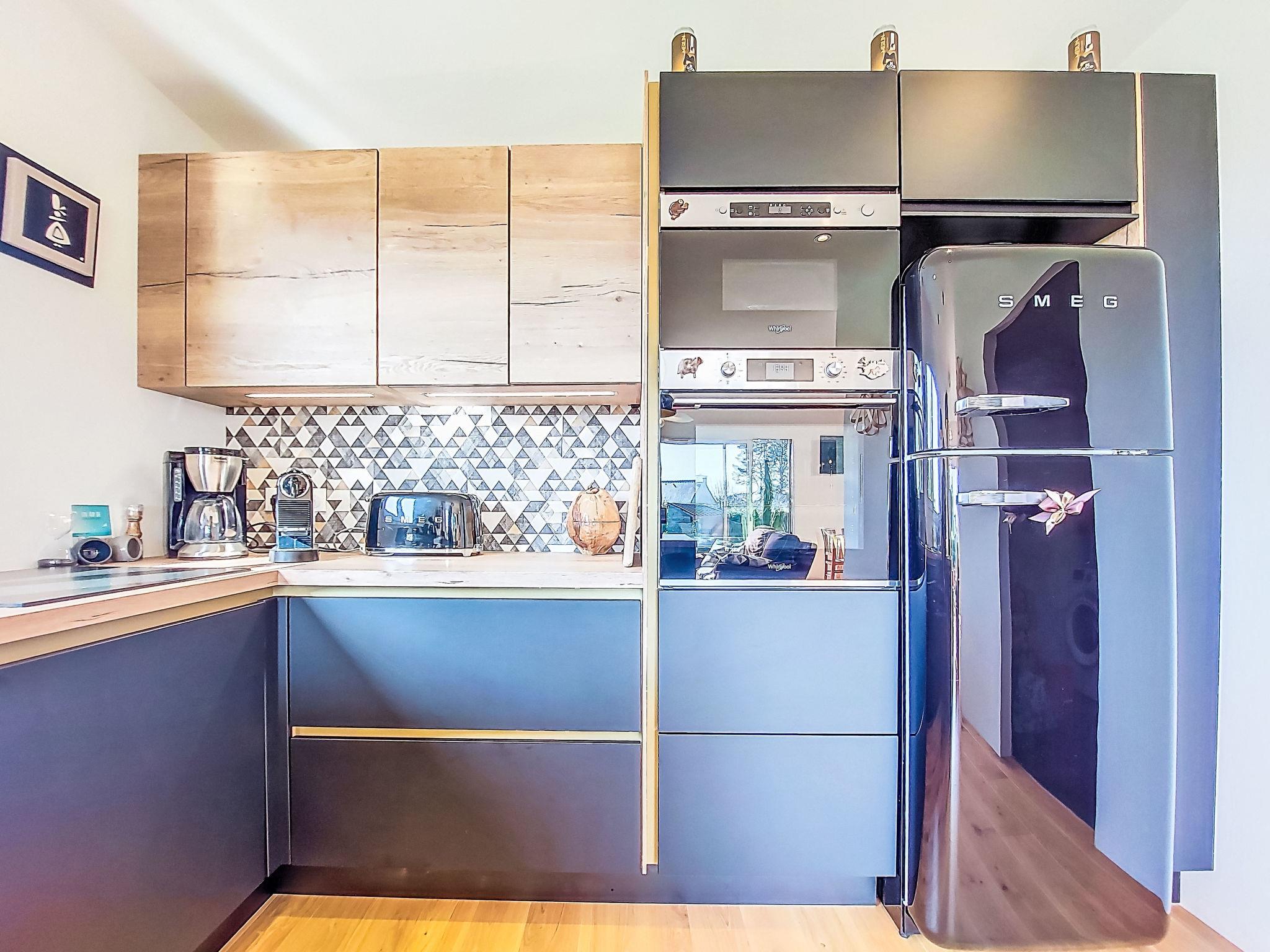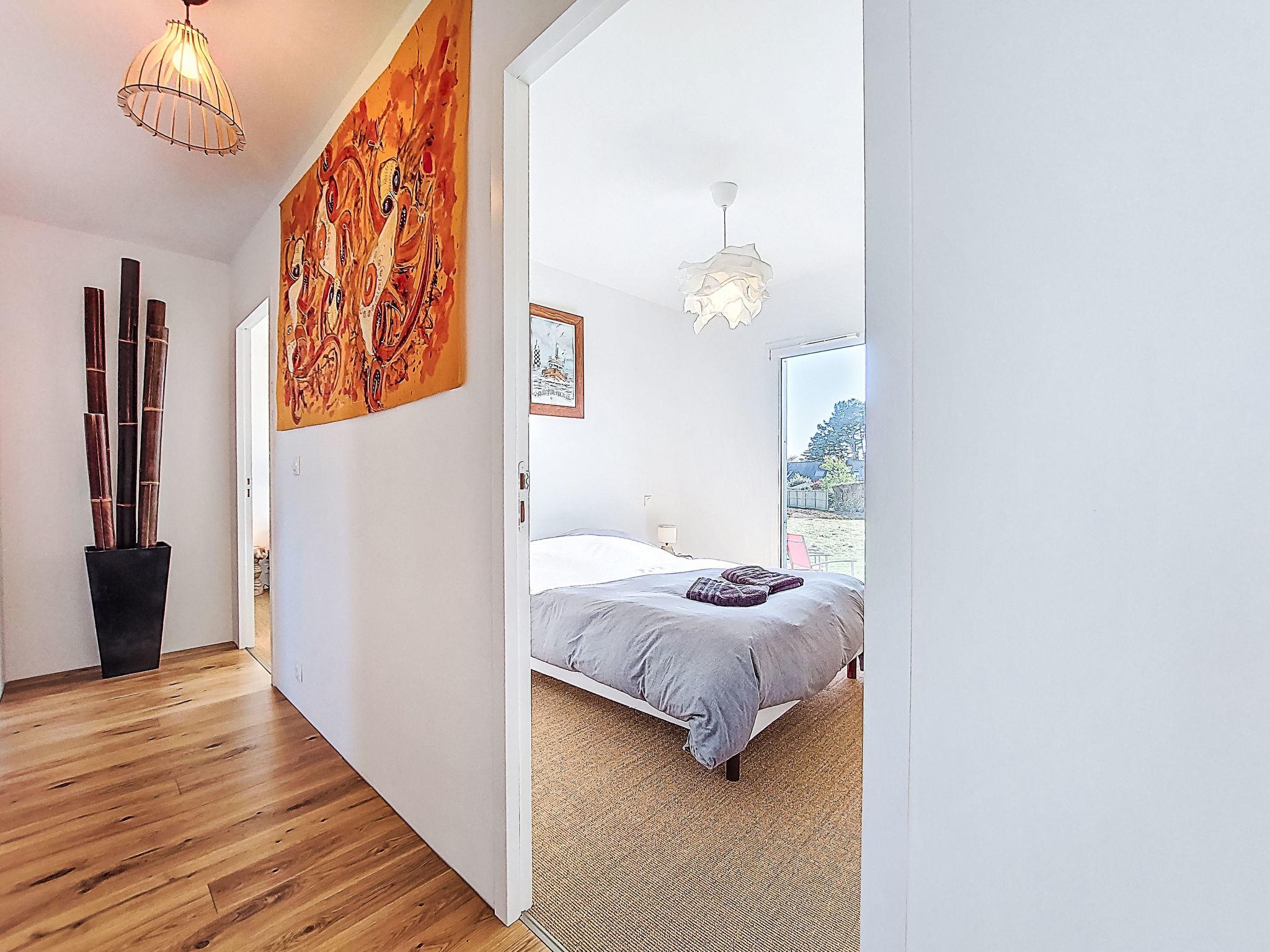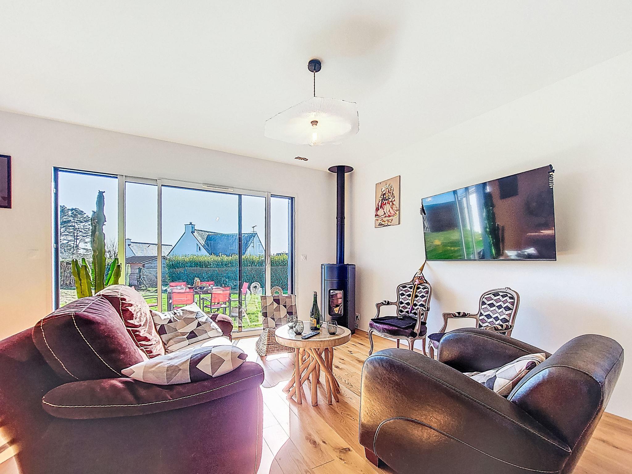 "Ty Coat", 4-room house 90 m2, south facing position. Comfortable furnishings: entrance hall. Living/dining room with Scandinavian wood stove, dining table and TV (flat screen). Exit to the garden. 2 rooms, each room with 1 french bed (140 cm, length 190 cm). 1 room with 1 french bed (160 cm, length 210 cm). Open kitchen (oven, dishwasher, 4 induction hot plates, toaster, kettle, microwave, freezer, electric coffee machine). Shower/WC. Heating not available in all rooms. Terrace furniture, barbecue (portable). Facilities: washing machine, baby cot for up to 2 year olds, hair dryer. Internet (WiFi, free). Please note: non-smoking house. Smoke alarm. Offer by a private individual according to Art. 155, IV of CGI.