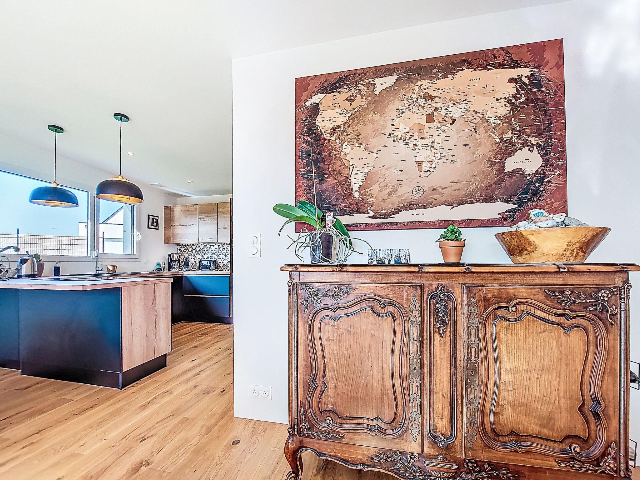 Single-family house "Ty-Coat", built in 2024. In the resort 1 km from the centre of Plonéour-Lanvern, 6 km from the sea, 6 km from the beach. Private: property 540 m2, garden (not fenced) with lawn, parking (for 2 cars) on the premises. Grocery 1 km, supermarket 5 km, bakery 1 km, bus stop 1 km, railway station "Quimper" 20 km, sandy beach "Kermabec, Tréguennec" 6 km, indoor swimming pool 7 km. Sports harbour 14 km, golf course (9 hole) 20 km, surf school 6 km, sailing school 15 km. Nearby attractions: Baie d'Audierne 6 km, Pont l'Abbé 6 km, Pointe de la Torche, Penmarc'h 14 km, Le Guilvinec, Loctudy 14 km, Quimper 20 km, Pointe du Raz 40 km. Hiking paths: GR 34.