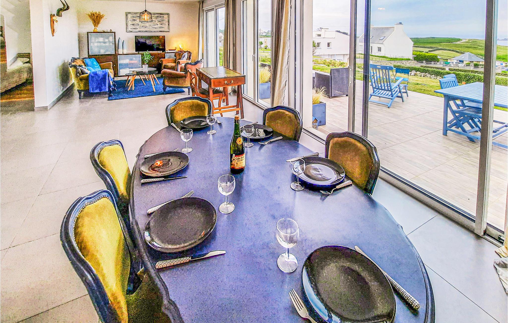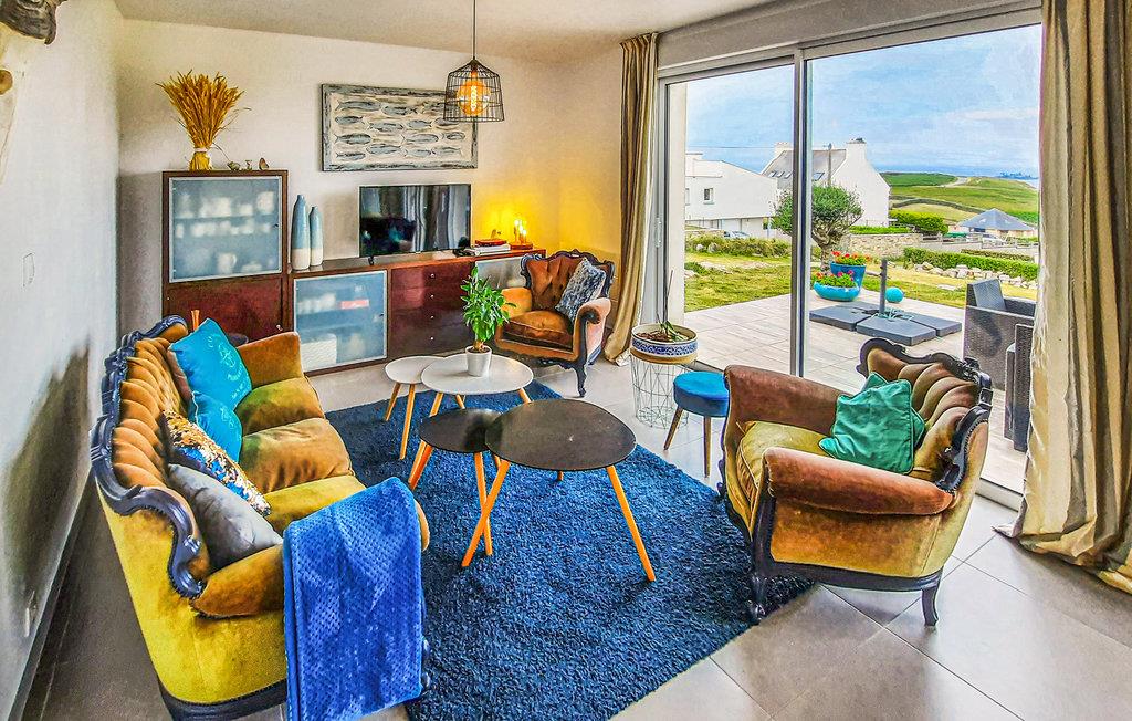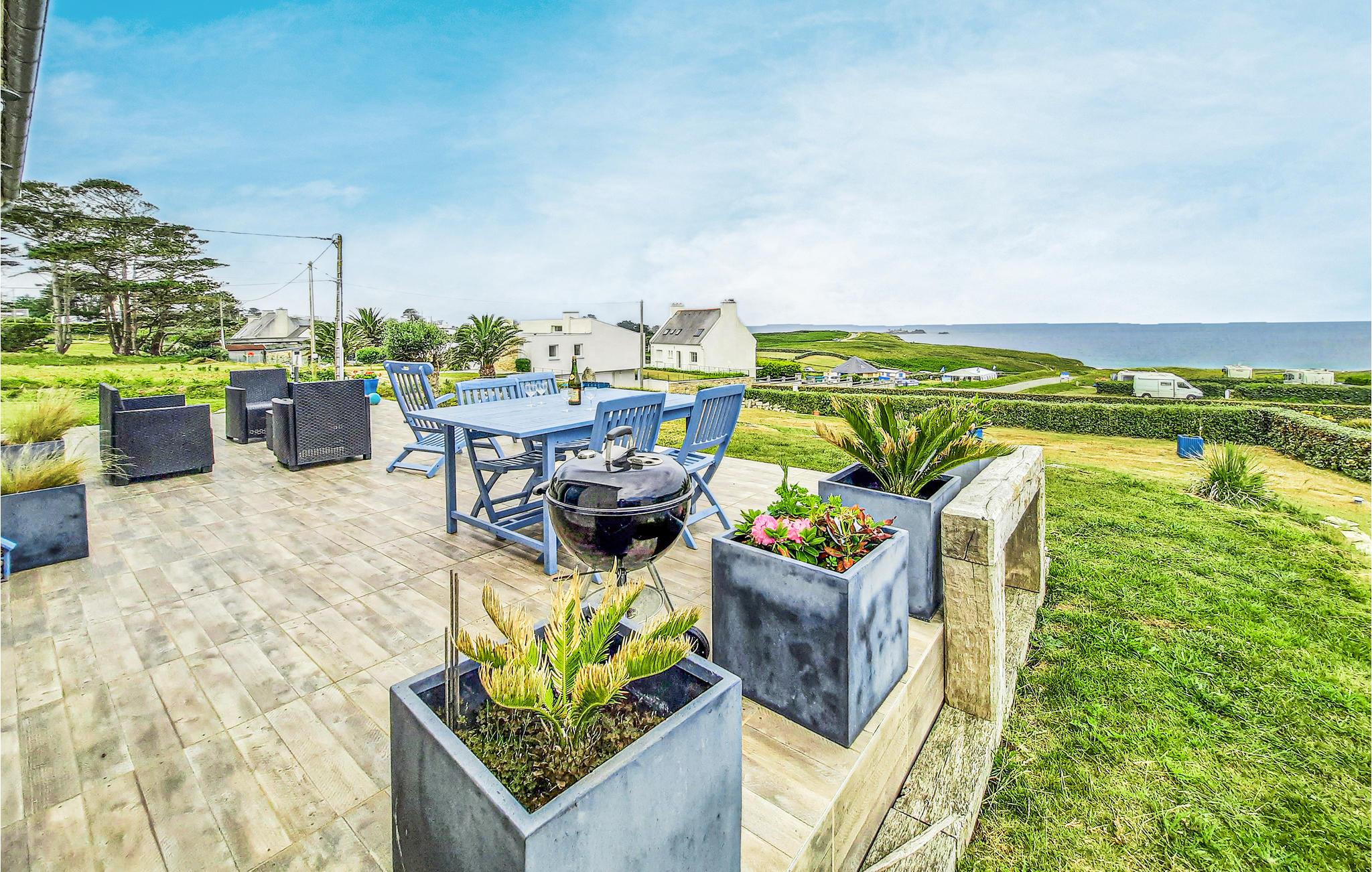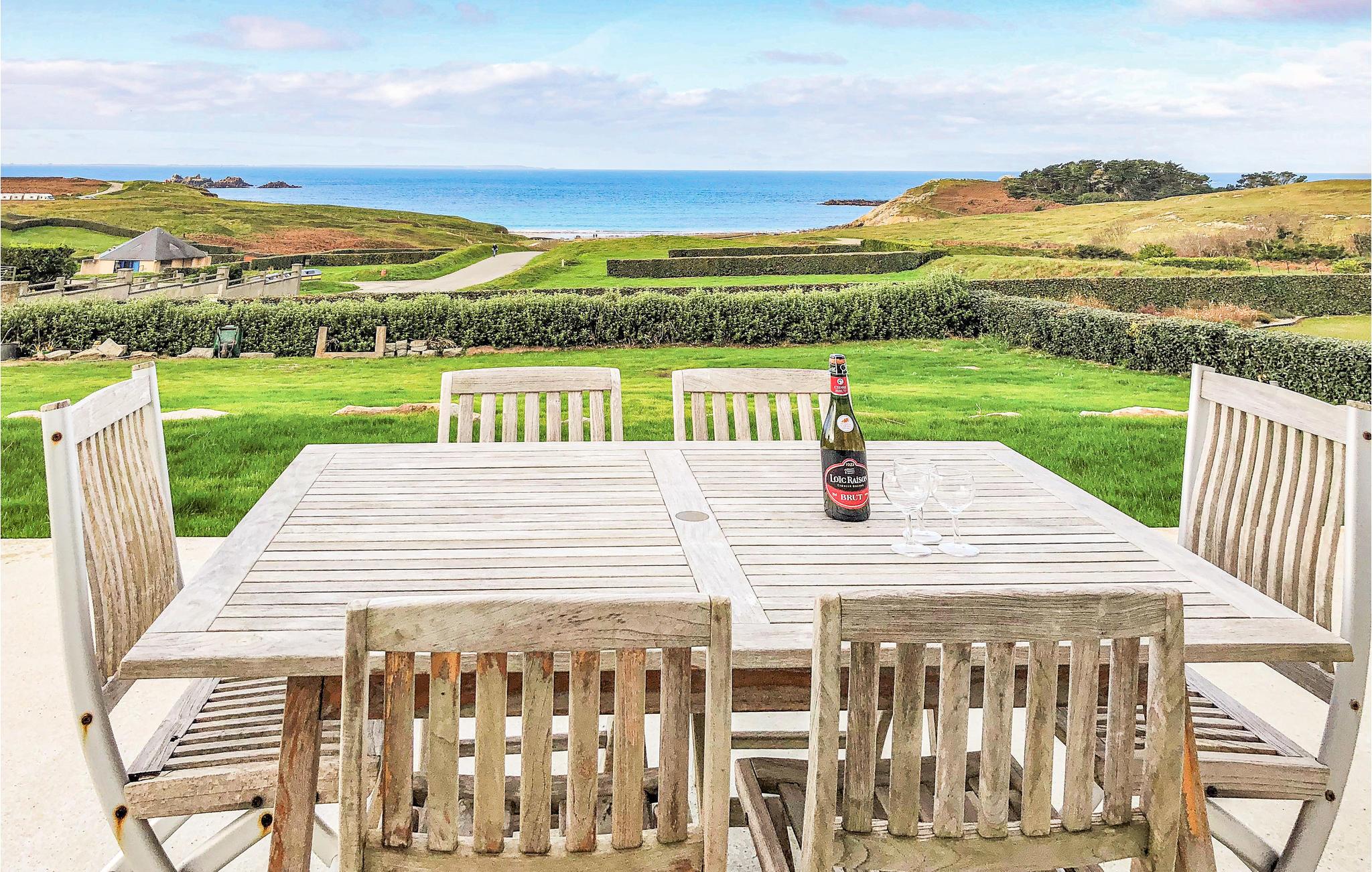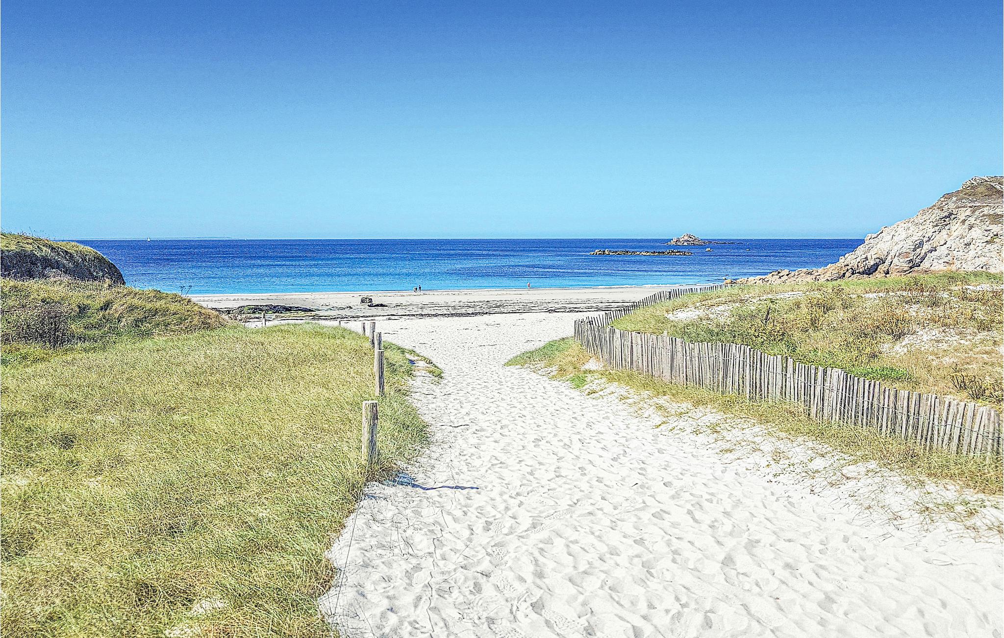 Perfekt feriehus til en uforglemmelig ferie i Finistère. Beliggende 27 km fra Brest i et beskyttet naturområde kun 350 meter fra stranden. Fra huset nyder I godt af en smuk panoramaudsigt over havet. Takket være de store glaspartier kommer masser af lys ind i huset. Indretningen er moderne og elegant, og det rummelige soveværelse har en stor dobbeltseng. Besøg øerne Ouessant og Molène. Den traditionelle fiskerby Camaret-sur-Mer (20 km) og dens Vauban-tårn er også et besøg værd. I Plouarzel kan I beundre Menhir-stenen i Kerlouas (10 km). Oplev også Fort Bertheaume, Saint-Mathieu-fyrtårnet og den storslåede udsigt over Brestvejen. 7 km til en golfbane med både en 9-hullers og en 18-hullers bane. OBS: Ejendommen er skrånende og ikke indhegnet.