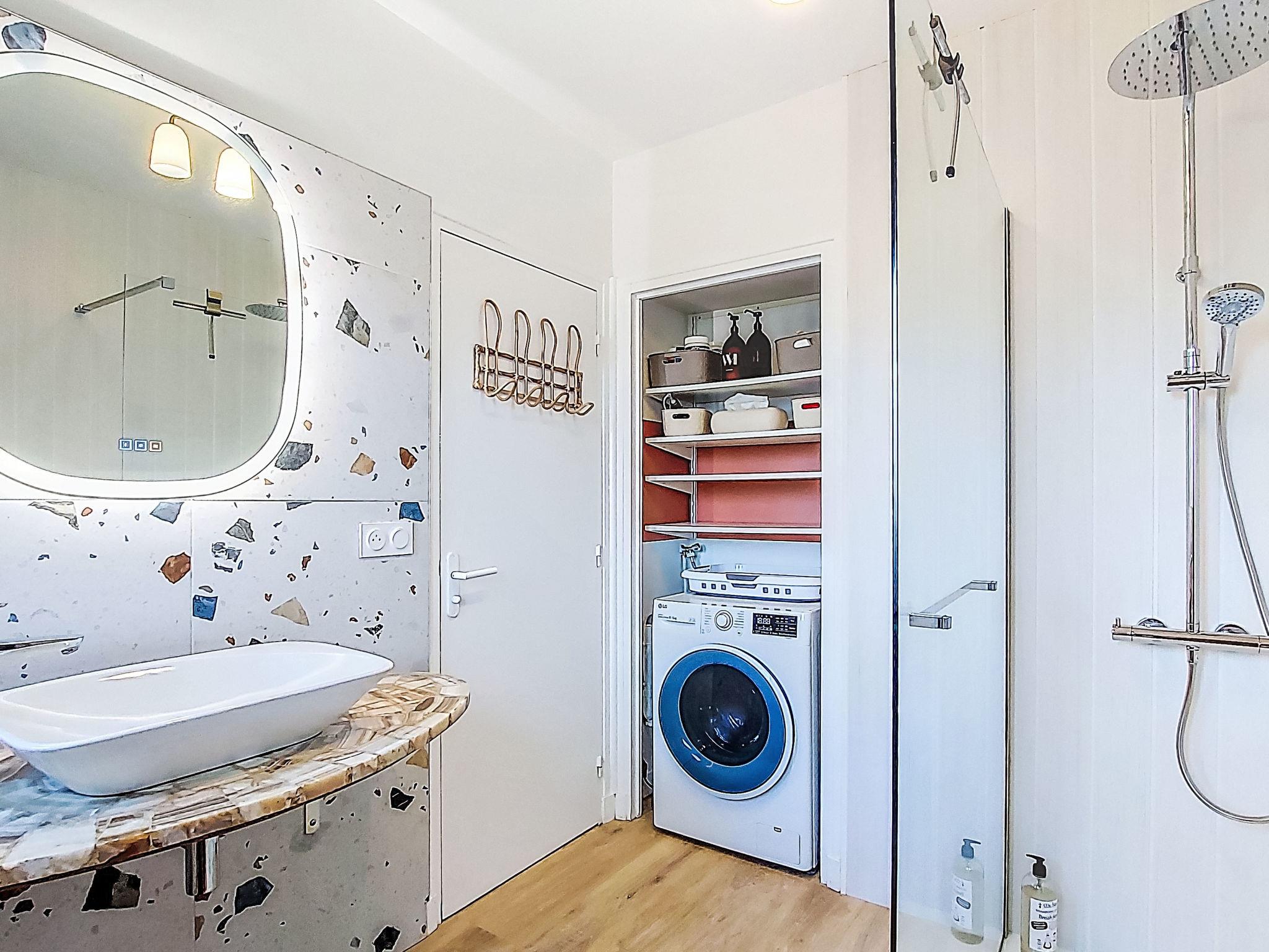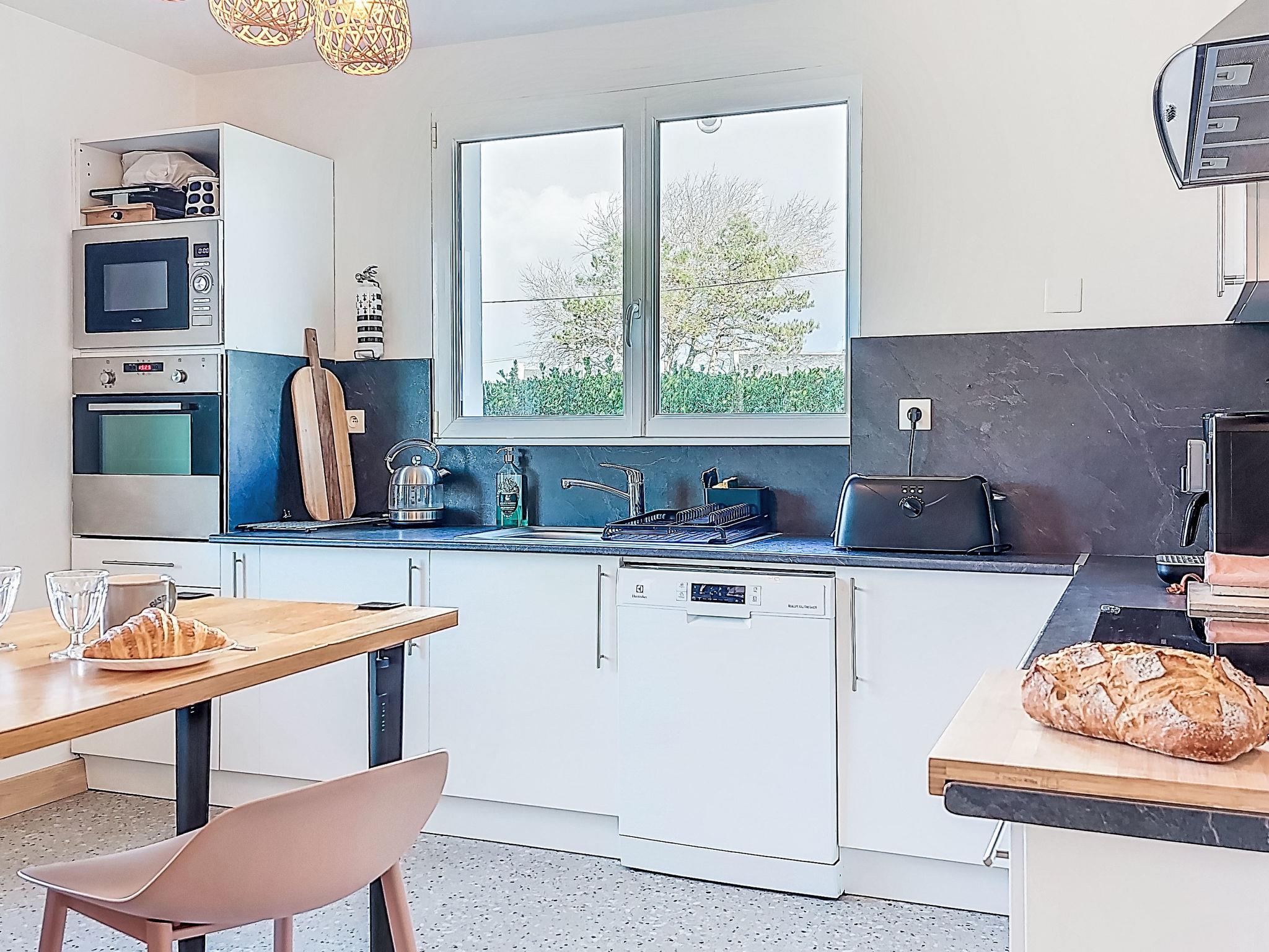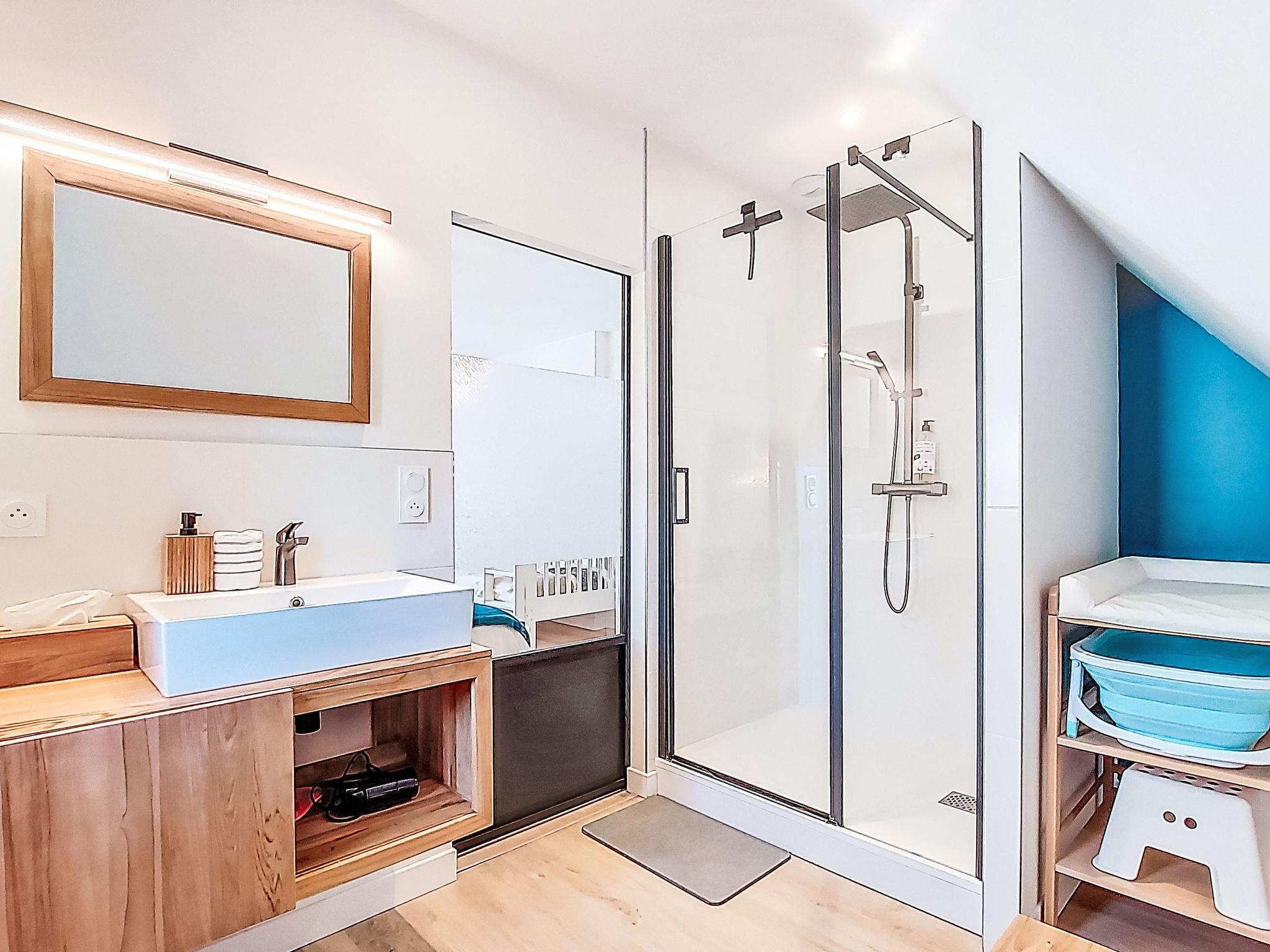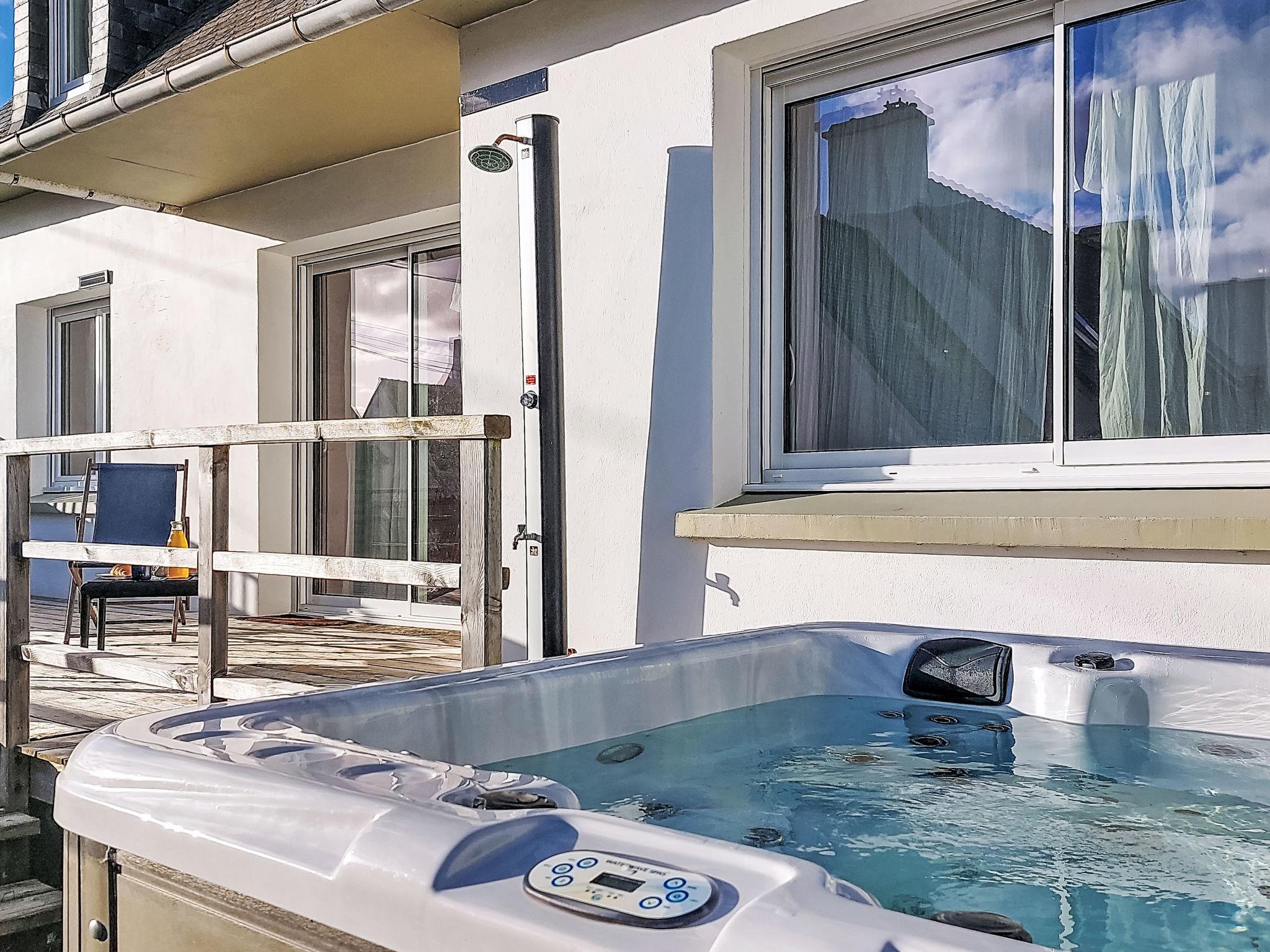 Modern, beautiful, comfortable single-family house "Villa Koraill Glaz". In the district of Porsmeur 3 km from the centre of Plouescat, in the residential district, 250 m from the sea, 250 m from the beach. Private: property 300 m2, well-kept garden with lawn and wildlife garden. Outdoor shower, hot tub, parking on the premises. Shop 3 km, grocery 3 km, supermarket 2.7 km, restaurant, bar 300 m, bakery 3 km, café 700 m, bus stop 2.5 km, ferry "Roscoff" 24 km, sandy beach "Porsmeur" 250 m, thermal baths "Thalasso Roscoff" 24 km. Sports harbour 24 km, marina 24 km, golf course (9 hole) 6 km, surf school 20 km, sailing school 660 m, minigolf 1.2 km, walking paths from the house 250 m. Nearby attractions: Char à voile, Baie du Kernic 750 m, Dunes de Keremma, réserve ornithologique 8 km, Meneham, Kerlouan 18 km, Roscoff, Jardin exotique, Île de Batz 24 km, Château de Kerjean 18 km, Morlaix 37 km. Hiking paths: GR34, sentier des Douaniers, 2 mn à pied 250 m.