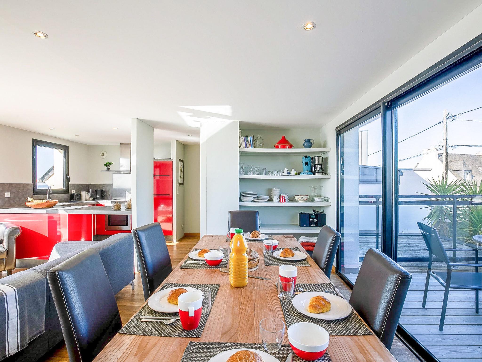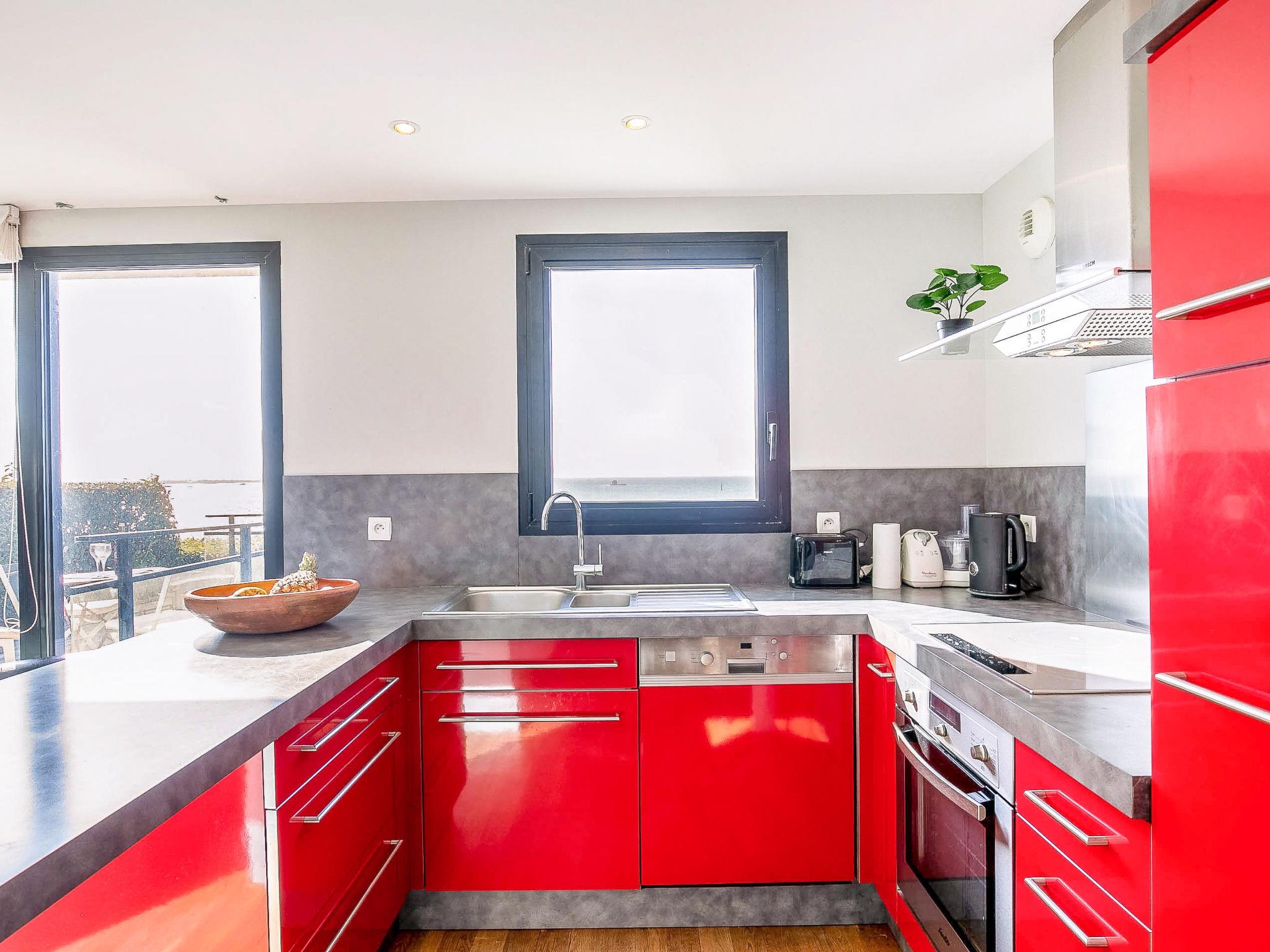 "La Villa Marine", 4-room house 100 m2 on 3 levels. Comfortable and modern furnishings: open living/dining room with dining table, satellite TV and international TV channels (flat screen), hi-fi system. Exit to the balcony, to the terrace. Open kitchen (oven, dishwasher, 3 induction hot plates, toaster, kettle, microwave). On the lower ground floor: 1 room with 2 beds (90 cm, length 200 cm). 1 small room (140 cm, length 190 cm). Shower, sep. WC. 2nd upper floor: 1 room with 1 french bed (160 cm, length 200 cm), separate WC and shower. Exit to the balcony. Electric heating, floor heating. Parquet floors. Beautiful panoramic view of the sea. Facilities: washing machine, dryer, iron. Internet (WiFi, free). Please note: non-smoking house. Smoke alarm. 29185 000074 AS