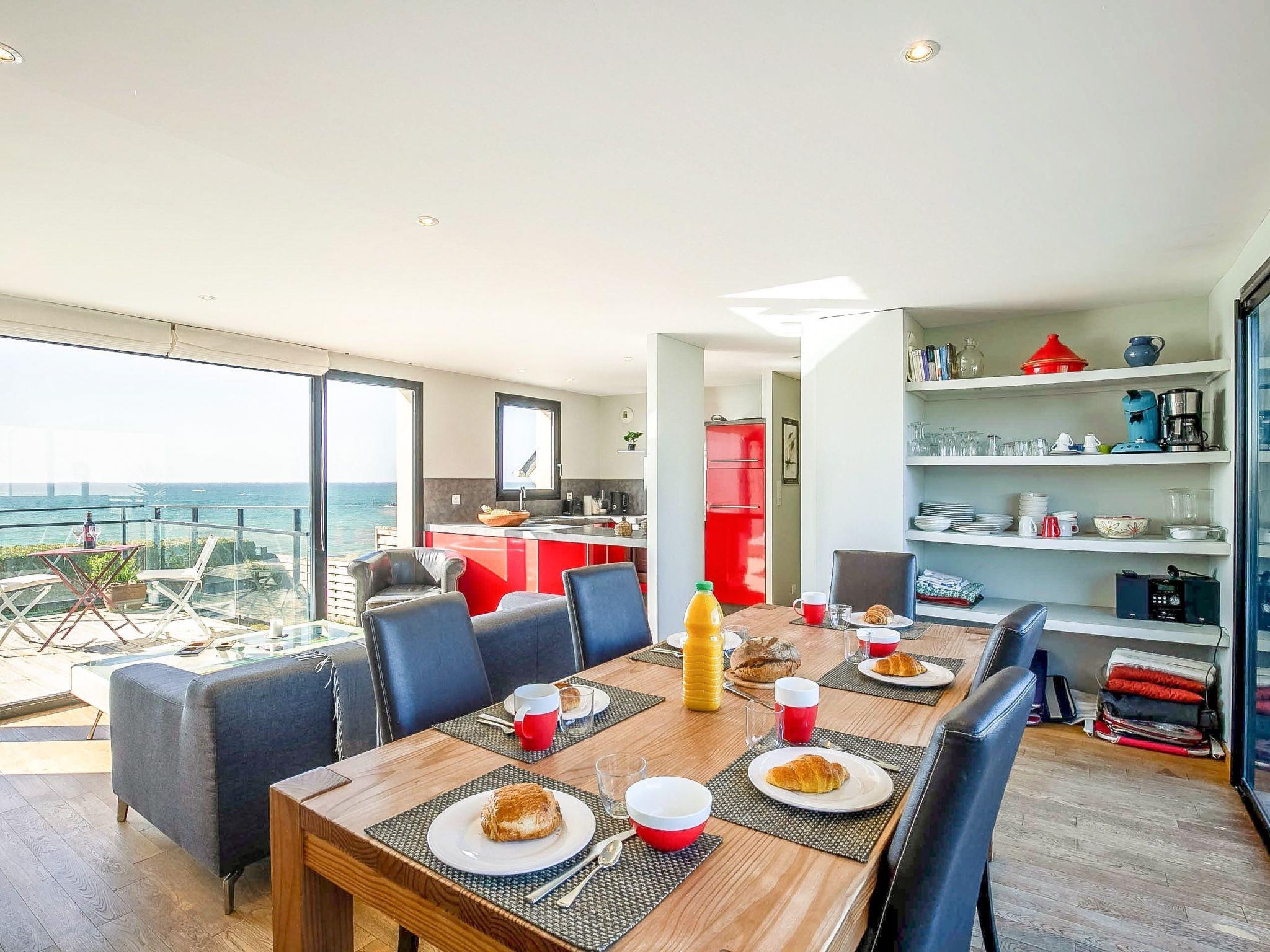 Modern, beautiful terraced house "La Villa Marine". Porsmeur 3.5 km from the centre of Plouescat, 18 km from the centre of Lesneven, in the residential district, 10 m from the sea, 10 m from the beach, direct access to the beach, in a cul-de-sac. Private: natural state property 200 m2 with wildlife garden, parking on the premises. Shop 3.5 km, supermarket 3.5 km, restaurant 120 m, bakery 3.5 km, bus stop 2.9 km, sandy beach "Plage Pors Meur" 10 m, thermal baths "Thalasso Roscoff" 24 km. Marina 500 m, golf course (9 hole) 6 km, surf school 1 km, sailing school 1 km, minigolf 1.3 km, walking paths from the house 10 m. Nearby attractions: Réserve ornithologique, Dunes de Keremma 9 km, Château de Kerjean, St.Vougay 13 km, Jardin exotique Roscoff, Île de Batz 24 km, Carantec, Baie de Morlaix 30 km, Morlaix 38 km, Océanopolis Brest 50 km. Hiking paths: GR34, sentier des douaniers 10 m.