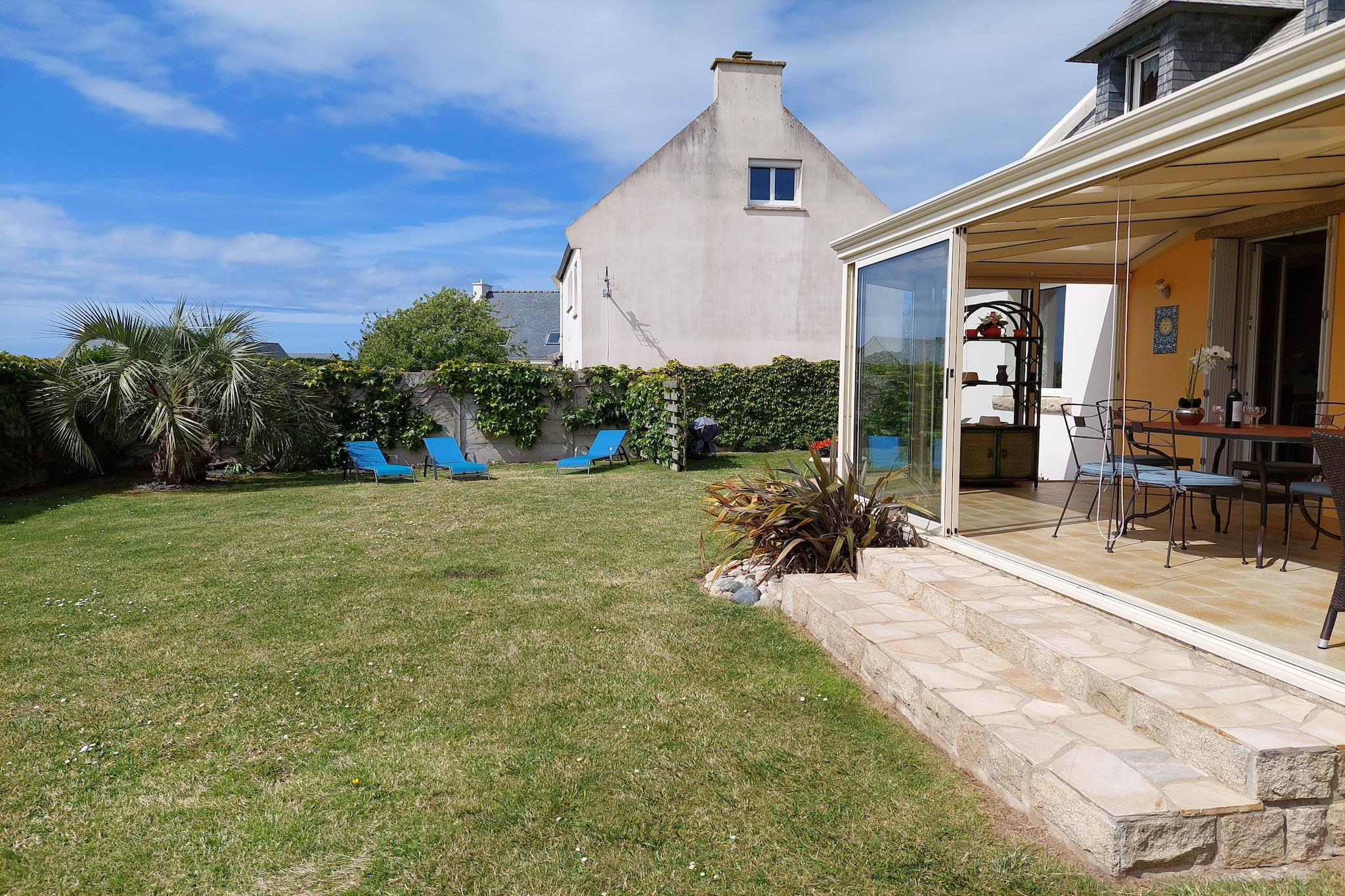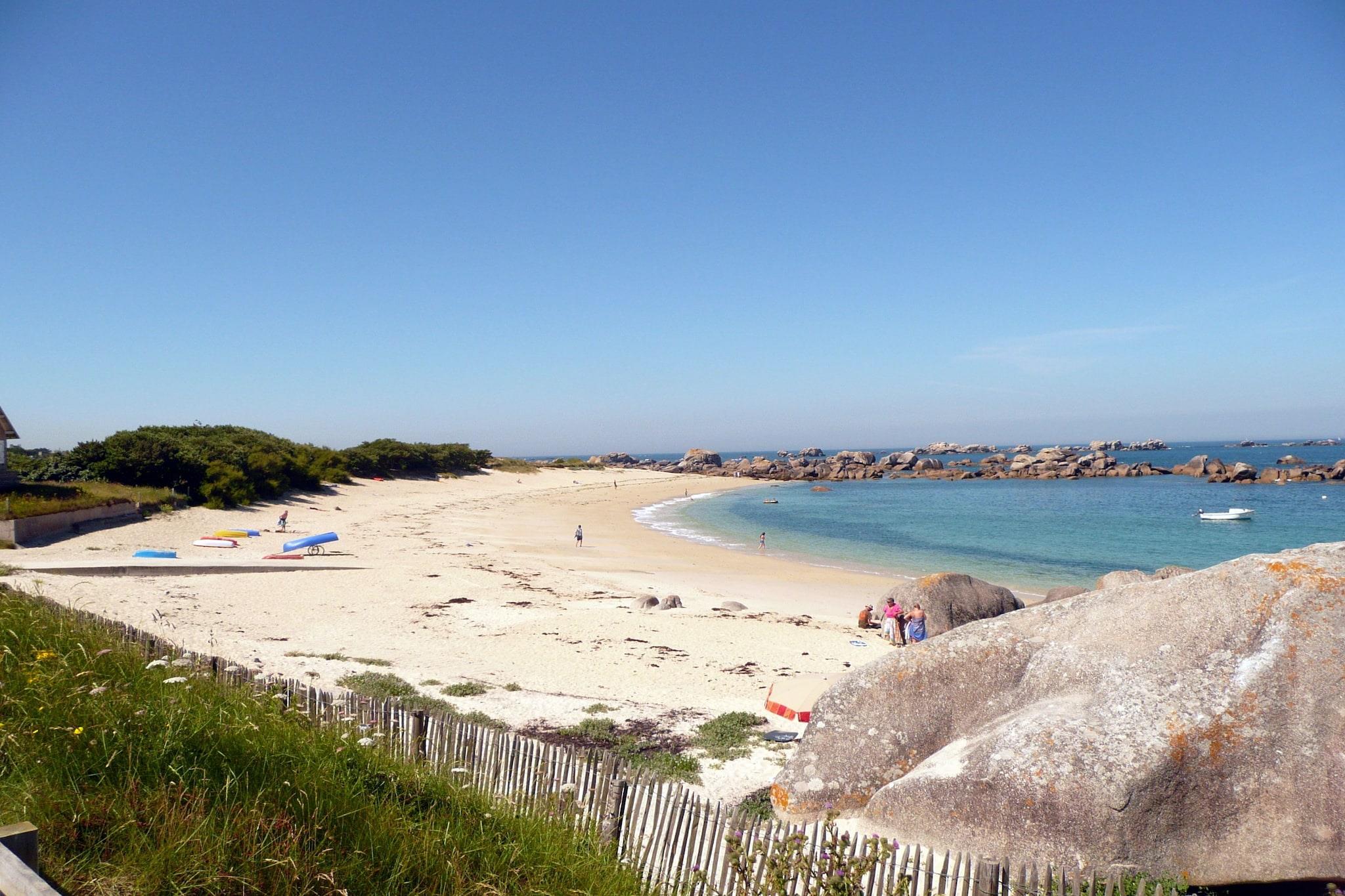 Kun 300 m til den lange sandstrand. Det typiske egnssommerhus med en dejlig stor vinterhave ligger uden for byen direkte ved kysten. Det rummelige feriehus er komfortabelt indrettet, den smukt anlagte haveejendom er godt indhegnet, ideel til børn eller kæledyr. Det uforlignelige, 13 km lange kystlandskab med brede sandstrande og beskyttede små bugter har gjort stedet kendt som et ferieparadis. Markedshallen fra det 16. århundrede identificerer byen som centrum for en rig grøntsagsregion. Den velkendte badeby tilbyder en bred vifte af fritidsaktiviteter, vandsport, traditionelle restauranter og et kasino. Ved lavvande kan du tage på strandsejlads i Kernic-bugten. Kystvæddeløbsbanen byder på en ekstraordinær oplevelse for hestevæddeløbsfans; hver sommer tiltrækker de mange entusiastiske tilskuere og hesteelskere her. Aktiviteter i nærheden: Talrige udflugtsmuligheder i det nærliggende område, såsom til den maleriske havn i Roscoff eller flådebyen Brest, med det oceanografiske museum kendt i hele Frankrig: Oceanopolis. Vest via Kerlouan, fiskerbyen Meneham, menhir Men Marz i Brignogan og de omfattende klitter i Keremma. Fyrtårne kan også besøges i området. Talrige havnefestivaler finder sted om sommeren Medbring gerne eget sengetøj, håndklæder og viskestykker!