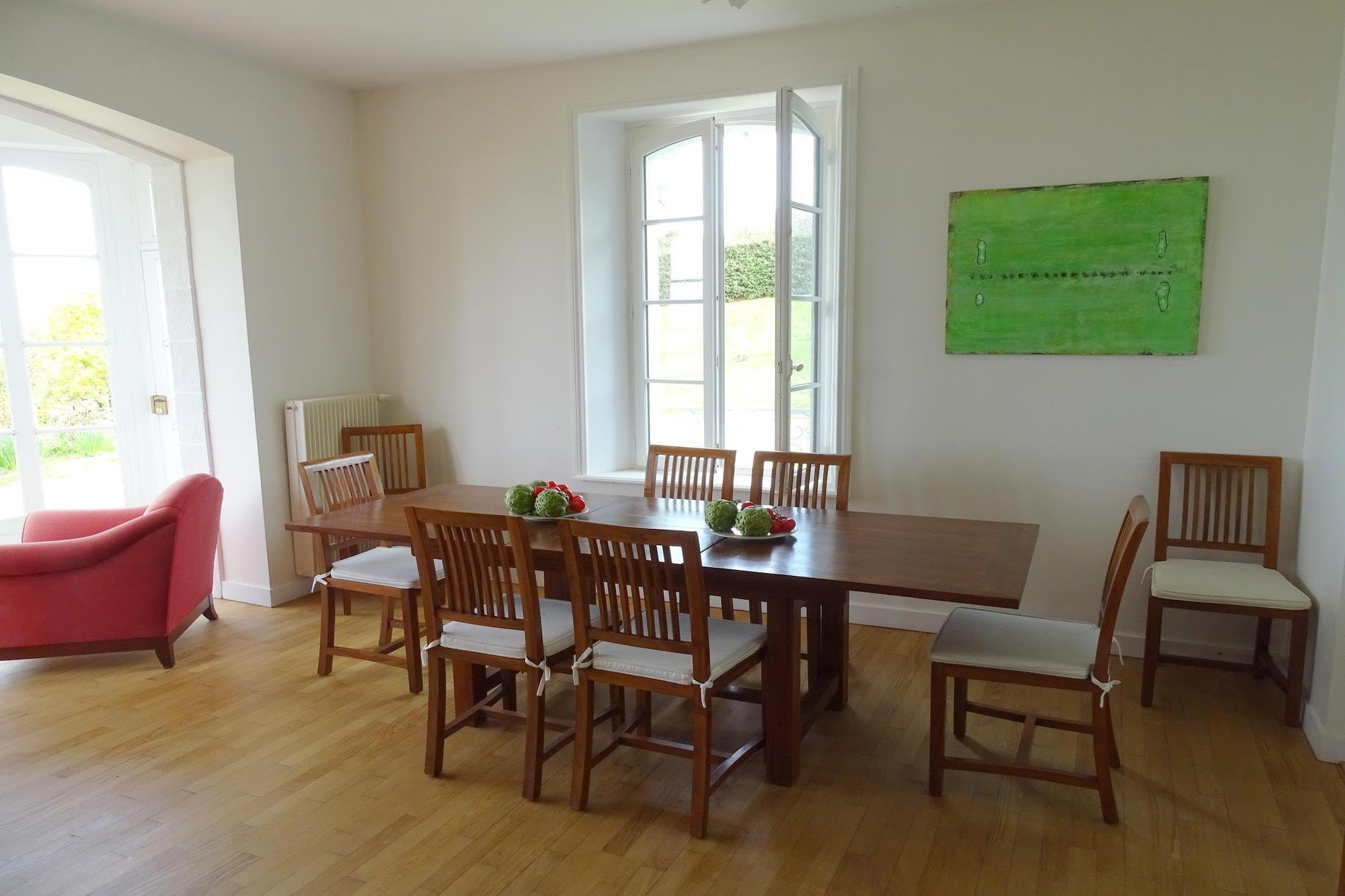 Ferievilla med autentisk fransk charme i en fantastisk beliggenhed over Primel bugten. Fra den velholdte, parklignende anlagte ejendom og næsten alle værelser kan du nyde en fantastisk udsigt over havet og stranden nedenfor, som du kan nå direkte fra haven. Selve villaen byder på behagelig komfort i 3 etager med flere opholdsområder, et veludstyret køkken, 2 moderne badeværelser og fem rummelige soveværelser. I tre af dem er de traditionelle små håndvaske bibeholdt, hvilket er meget praktisk, når det er optaget af en stor familie eller lille gruppe. Alle finder hurtigt deres yndlingssted her; Nyd den vidunderlige havudsigt i stuestolen ved stævnvinduet, solbad på altanen på 1. sal, helt skjult, eller tag en eftermiddagslur i parken under beskyttelse af et højt træ. ikke mindre end 8 forskellige sandstrande er en af de smukkeste i det nordlige Finistères, kun få kilometer fra den berømte lyserøde granitkyst. En tur til havne- og kurbyen Roscoff eller til byen Morlaix med sin unikke arkitektur byder på variation. Meget tæt på, i det nærliggende departement Côtes d'Armor, tiltrækker den populære badeby Perros Guirec med sin brede vifte af fritidsaktiviteter.
