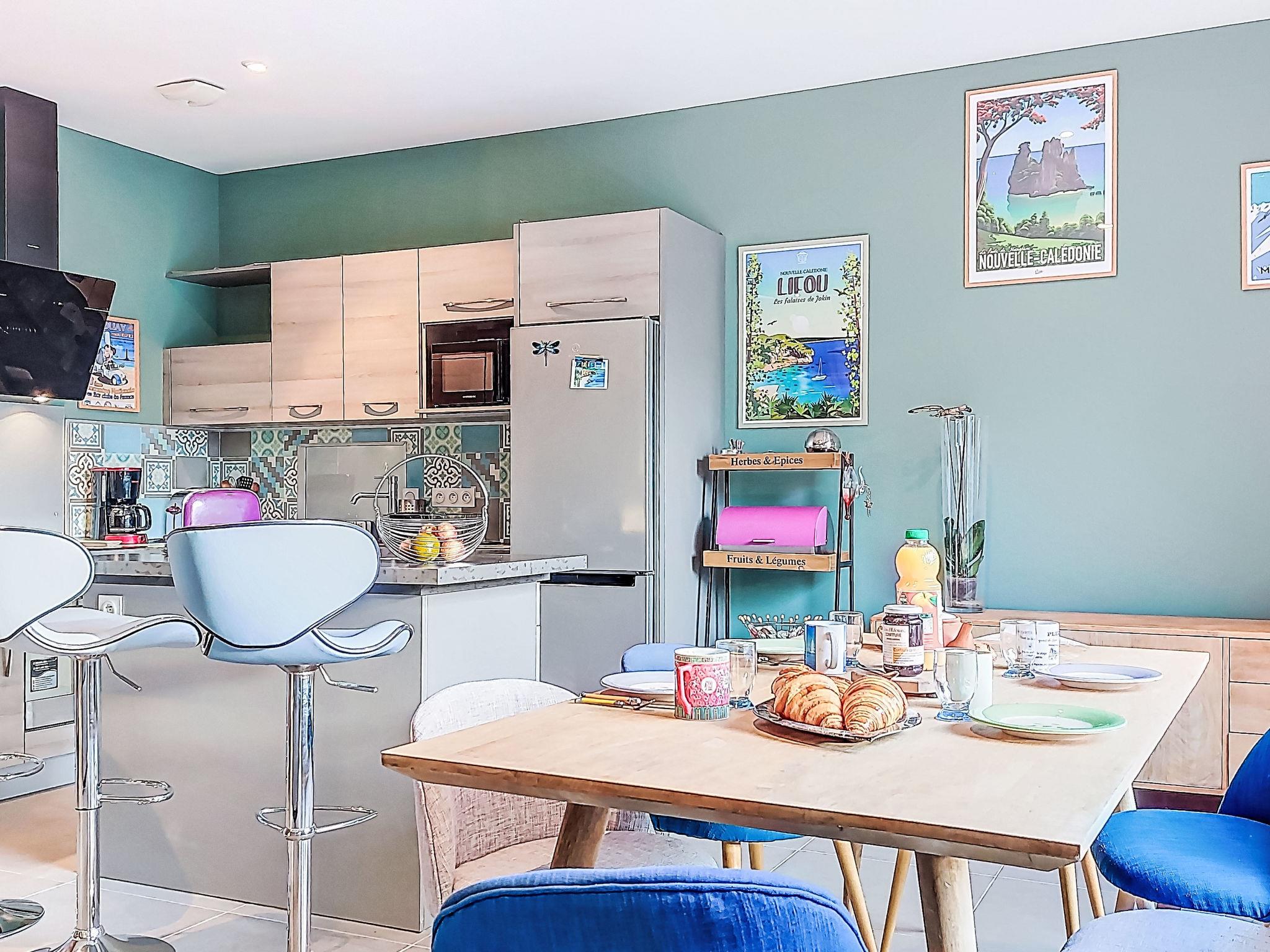 "Bienvenue", 4-room house 70 m2. Beautiful and cosy furnishings: living/dining room 40 m2. Exit to the garden, to the veranda. 1 room 10 m2 with 1 french bed (140 cm, length 190 cm). Small office. 1 room 12 m2 with 1 sofabed (140 cm, length 190 cm). Large, open kitchen (oven, dishwasher, 3 induction hot plates, toaster, kettle, microwave, freezer, electric coffee machine, cooking island). Shower, sep. WC. Electric heating. Facilities: washing machine, dryer, iron, hair dryer. Internet (WiFi, free). Please note: non-smoking house. Smoke alarm. Offer by a private individual according to Art. 155, IV of CGI.