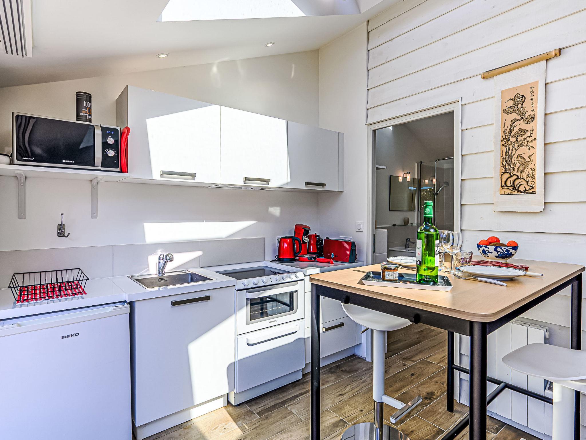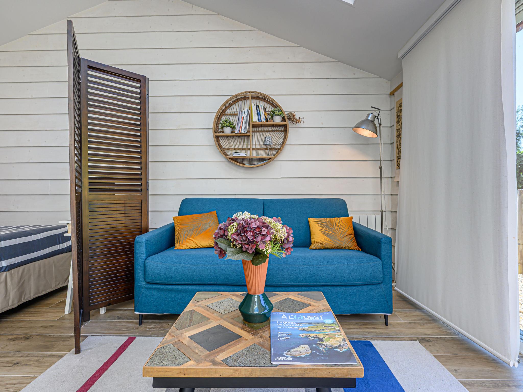 "Neizh Bihan", 1-room studio 30 m2. Comfortable furnishings: living/dining room with 1 french bed (1 x 160 cm, length 190 cm), TV (flat screen). Exit to the terrace. Open kitchen (3 hot plates, oven, dishwasher, toaster, kettle, microwave, electric coffee machine). Shower/WC. Electric heating. Terrace 43 m2. Terrace furniture, barbecue. Facilities: iron, baby cot (extra), hair dryer. Internet (WiFi, free). Parking. Please note: non-smokers only. Smoke alarm. Offer by a private individual according to Art. 155, IV of CGI.