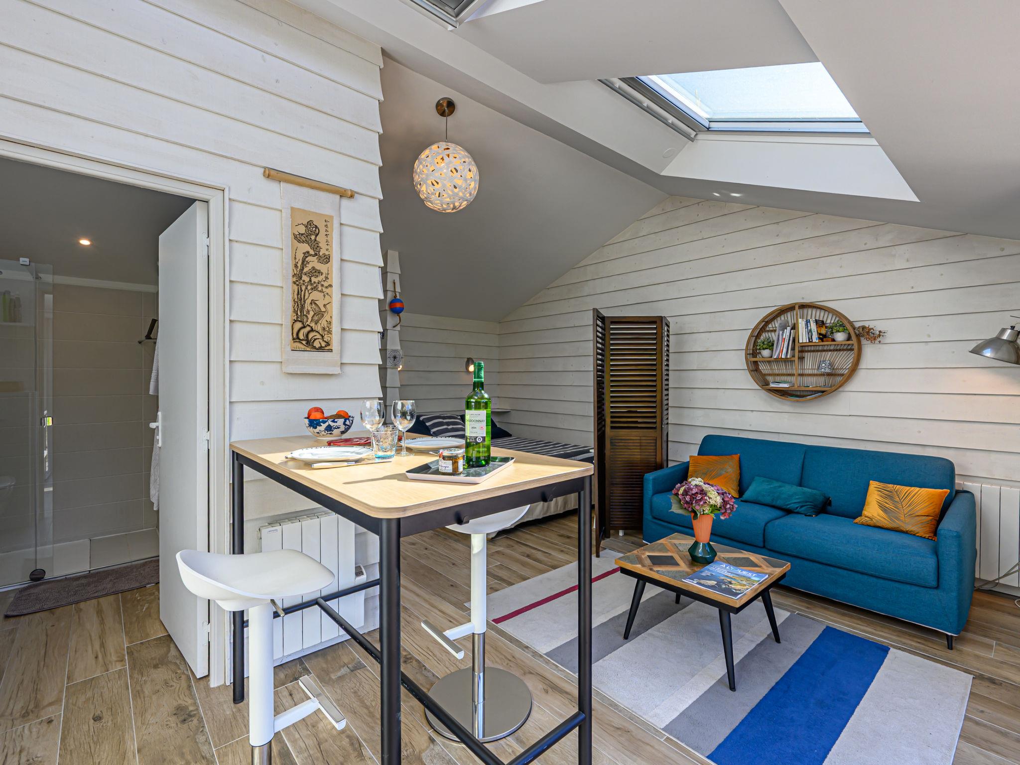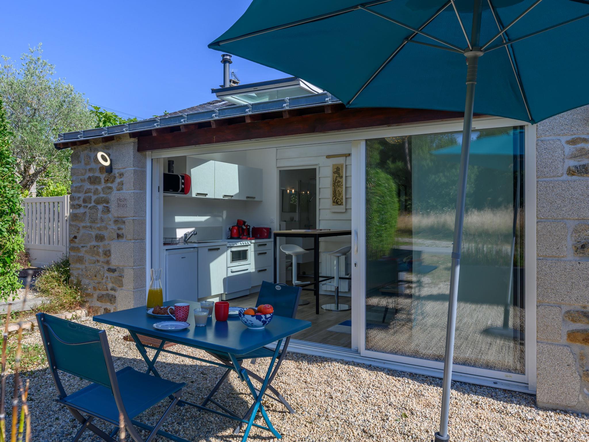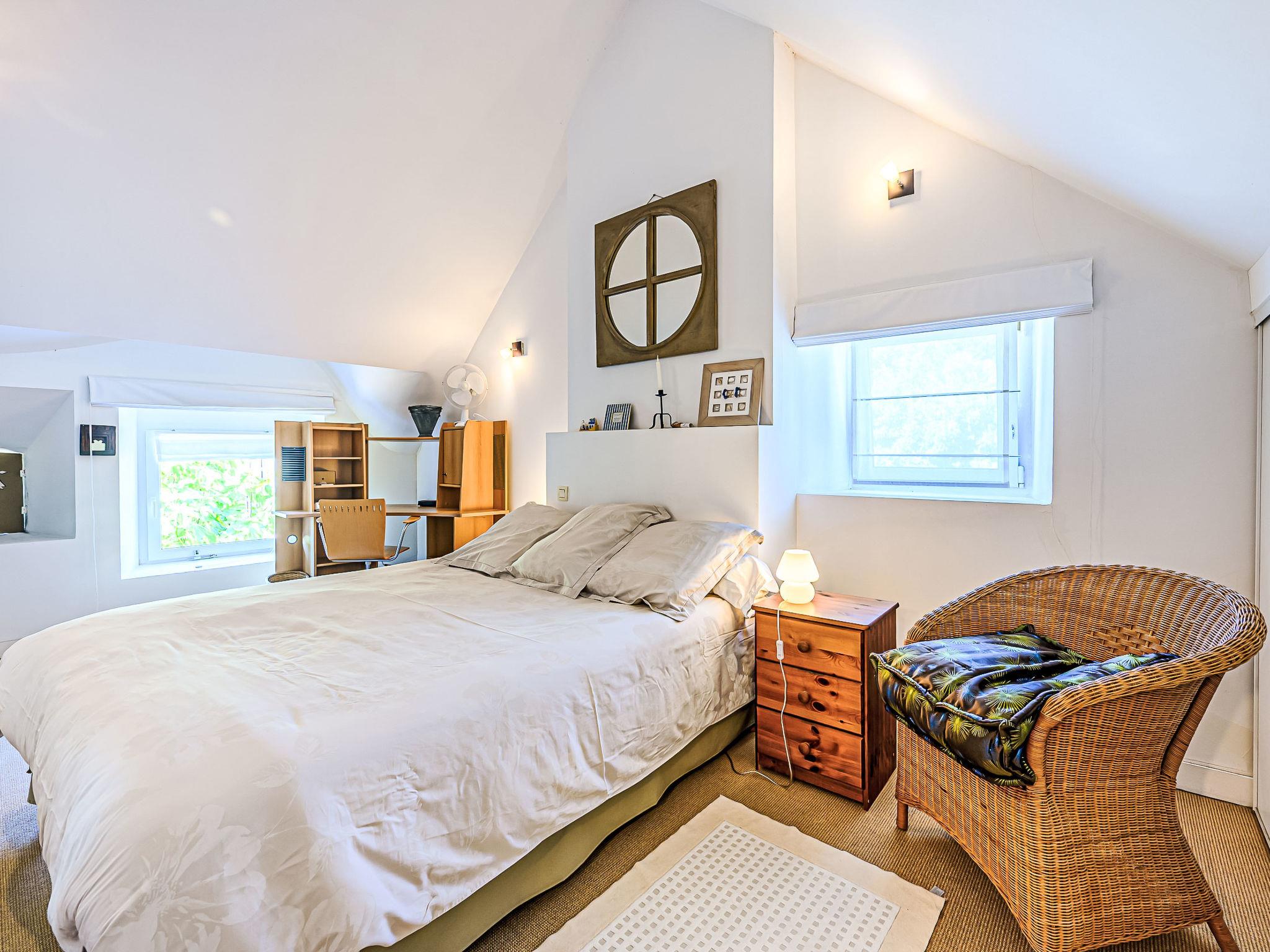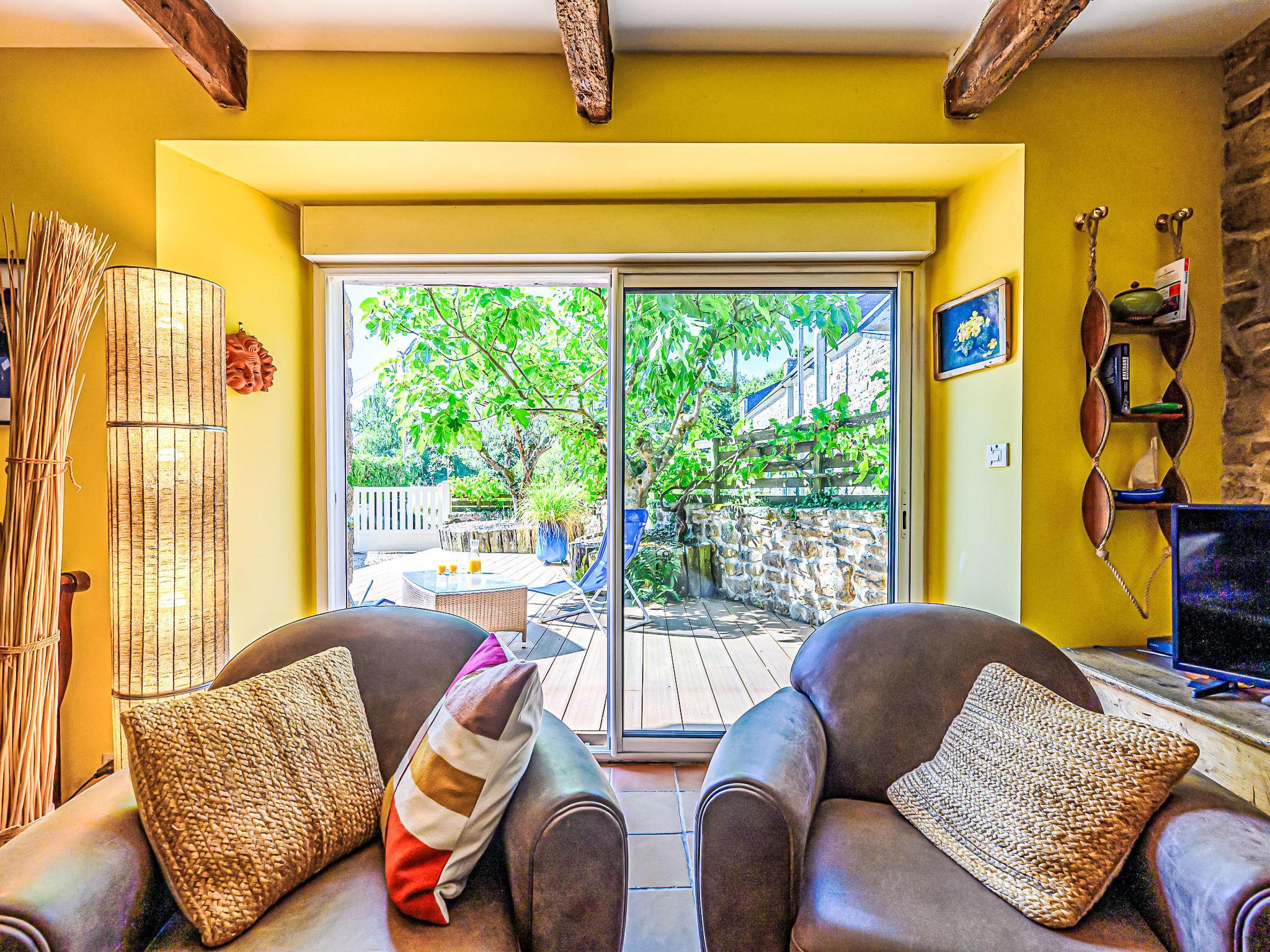"Chromlech'dek", 6-room house 135 m2. Comfortable furnishings: dining room with TV (flat screen). Exit to the terrace. Kitchen (4 hot plates, oven, dishwasher, toaster, kettle, microwave, freezer, electric coffee machine). Upper floor: 1 room with 1 french bed (1 x 160 cm, length 190 cm), shower. 1 room with 1 french bed (1 x 160 cm, length 190 cm). 1 room with 1 x 2 bunk beds (90 cm, length 190 cm). 1 room with 1 french bed (1 x 140 cm, length 190 cm). Bath/shower, sep. WC. Electric heating. 2 terraces. Terrace furniture, barbecue. Facilities: washing machine, dryer, iron, hair dryer. Internet (WiFi). Parking. With 1 independent Studio of 30m², fully equipped: (3 hotplates, oven, dishwasher, toaster, electric kettle, microwave, electric coffee maker). Shower/WC. Electric heating. Terrace 43 m2, bed 160×190, television and access to a private terrace. Offer by a private individual according to Art. 155, IV of CGI.