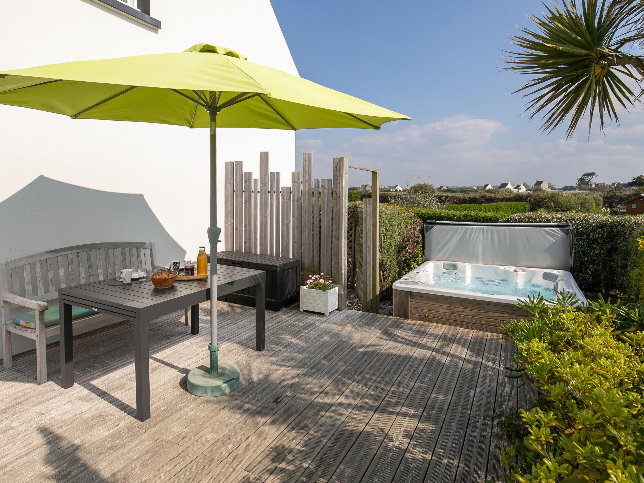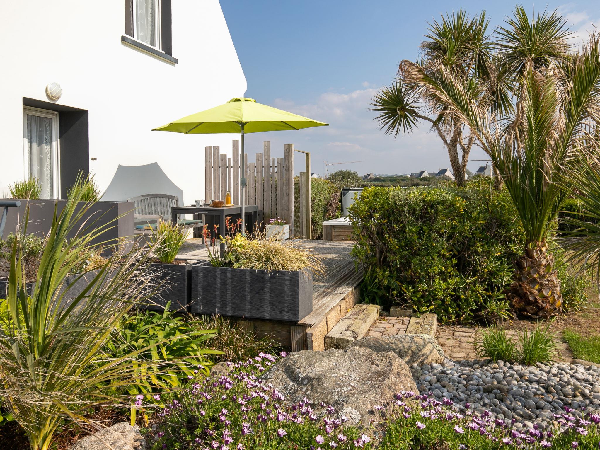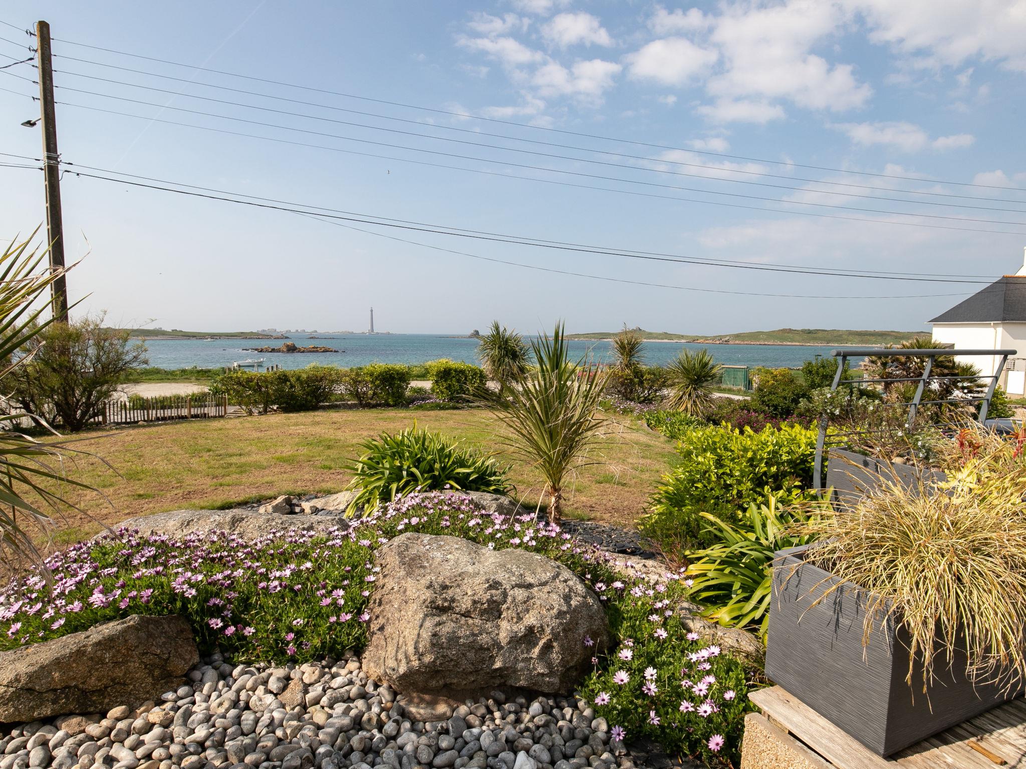 Beautiful, cosy, comfortable single-family house "L'Air du Large", 2 storeys in 2020. In the district of Le Reun, Lilia 5 km from the centre of Plouguerneau, in a quiet, elevated position in the residential district, traffic calmed area, 50 m from the sea, 50 m from the beach, north-west facing position. Private: large, well-kept garden 1'400 m2 (not fenced) with lawn and wildlife garden. Hot tub, table tennis, terrace, garden furniture, barbecue, parking (for 3 cars) on the premises. Shop, grocery 700 m, supermarket 4.5 km, restaurant, bakery, bus stop 700 m, sandy beach "Kervenni" 600 m. Golf course (18 hole) 35 km, sailing school 13 km, indoor tennis centre 5 km, walking paths from the house 50 m. Nearby attractions: Phare de l'Ile Vierge 1.2 km, Aber Wrac'h 3 km, Aber Benoît 11 km, Ile Cézon 16 km, Dunes de St. Marguerite 16 km. Hiking paths: GR34, sentier des douaniers 50 m.