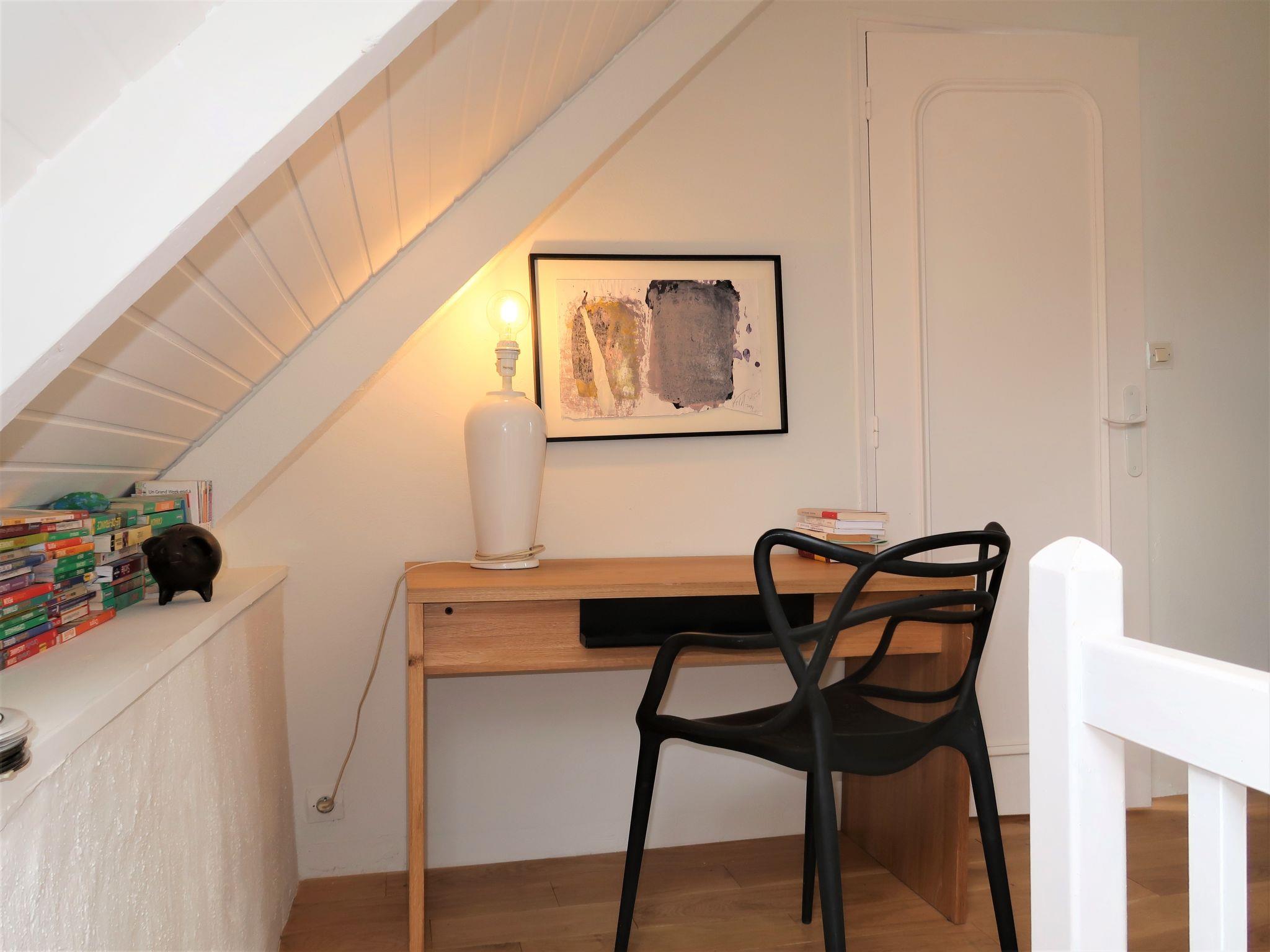 "Dolce Vita", 4-room semi-detached house 120 m2 on 2 levels. Beautiful and cosy furnishings: living/dining room with open-hearth fireplace, dining table and TV (flat screen), radio and DVD. Exit to the garden. Kitchen (mini-oven, dishwasher, 4 gas rings, toaster, kettle, electric coffee machine). Exit to the garden. Bath/WC. Top floor: (steep stair) open gallery with rooflight with 1 french bed (160 cm, length 200 cm). 1 room with sloping ceilings with rooflight with 1 french bed (160 cm, length 200 cm). 1 room with sloping ceilings with 2 beds (90 cm, length 190 cm). Sep. WC. Electric heating. Terrace 50 m2. Terrace furniture, barbecue (portable), deck chairs (2). Facilities: washing machine, dryer, iron, children's high chair, baby cot. Please note: non-smoking house. Maximum 1 pet/ dog allowed. Smoke alarm. Instead of an enclosed bedroom, some sleeping areas are located in an open-plan area (gallery, alcove, etc.). Offer by a private individual according to Art. 155, IV of CGI.