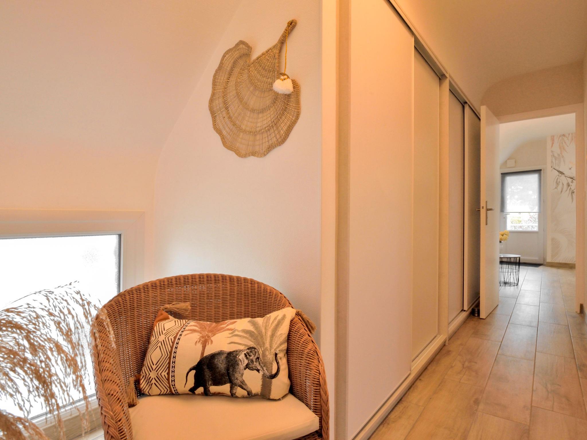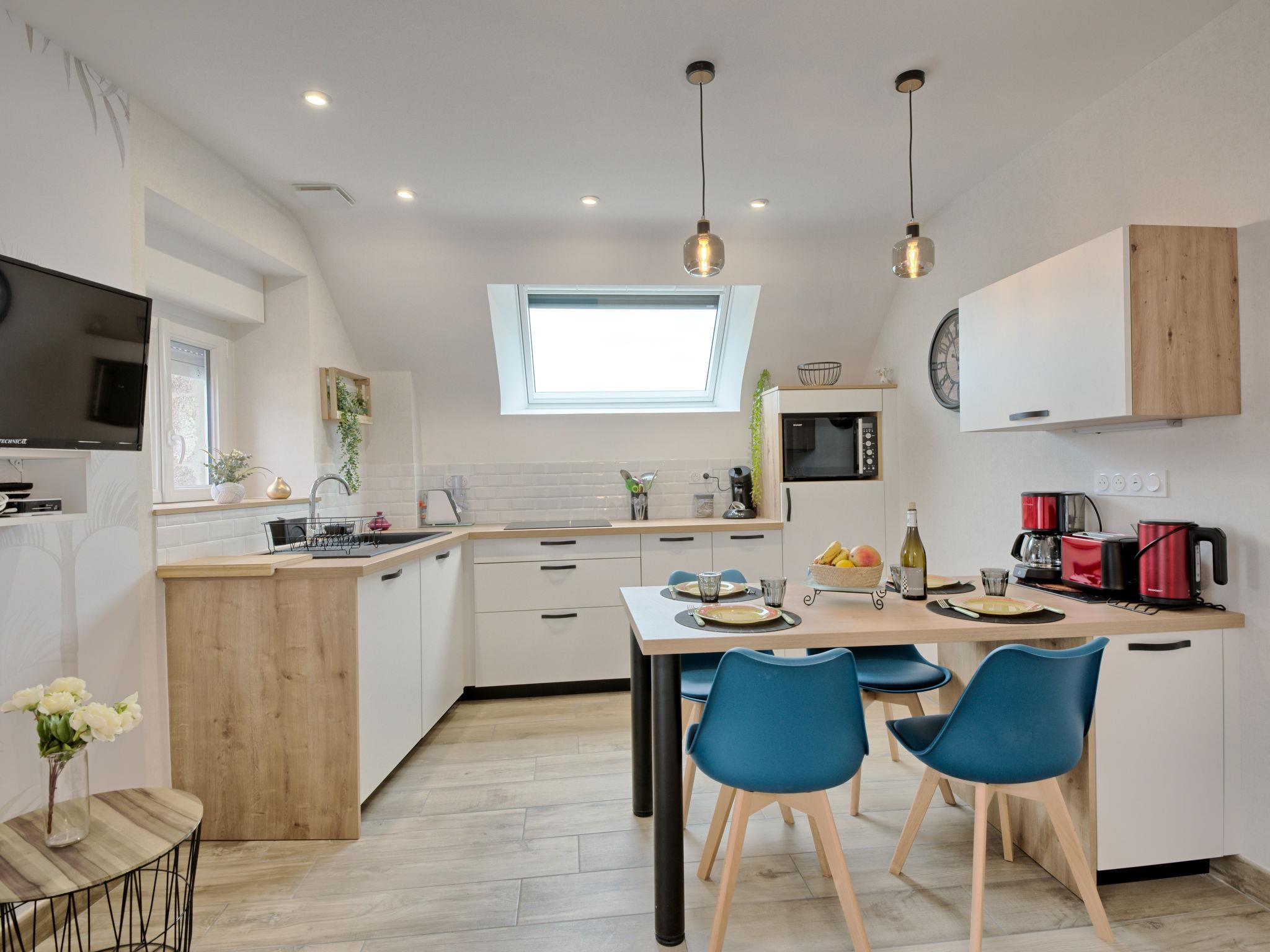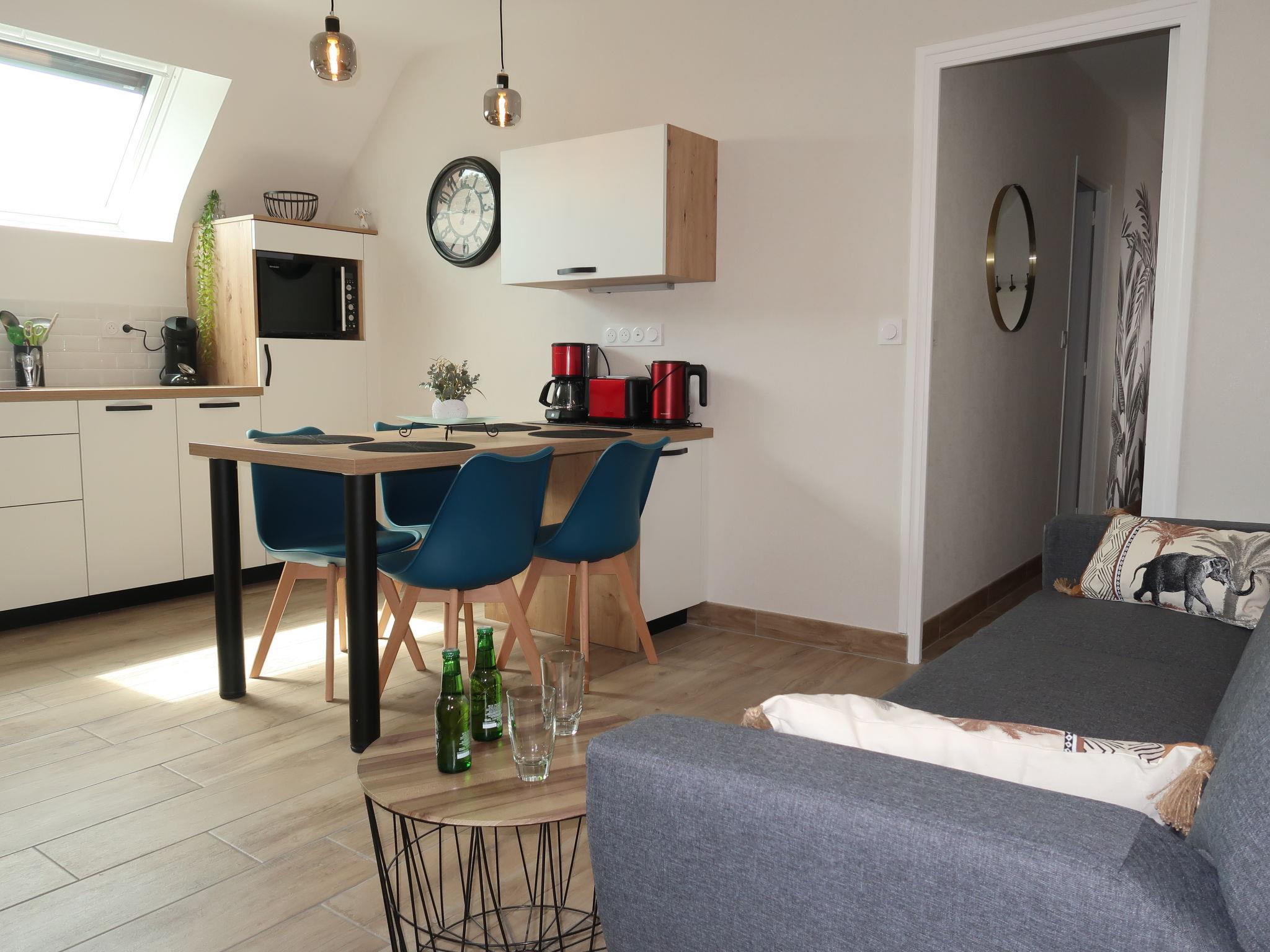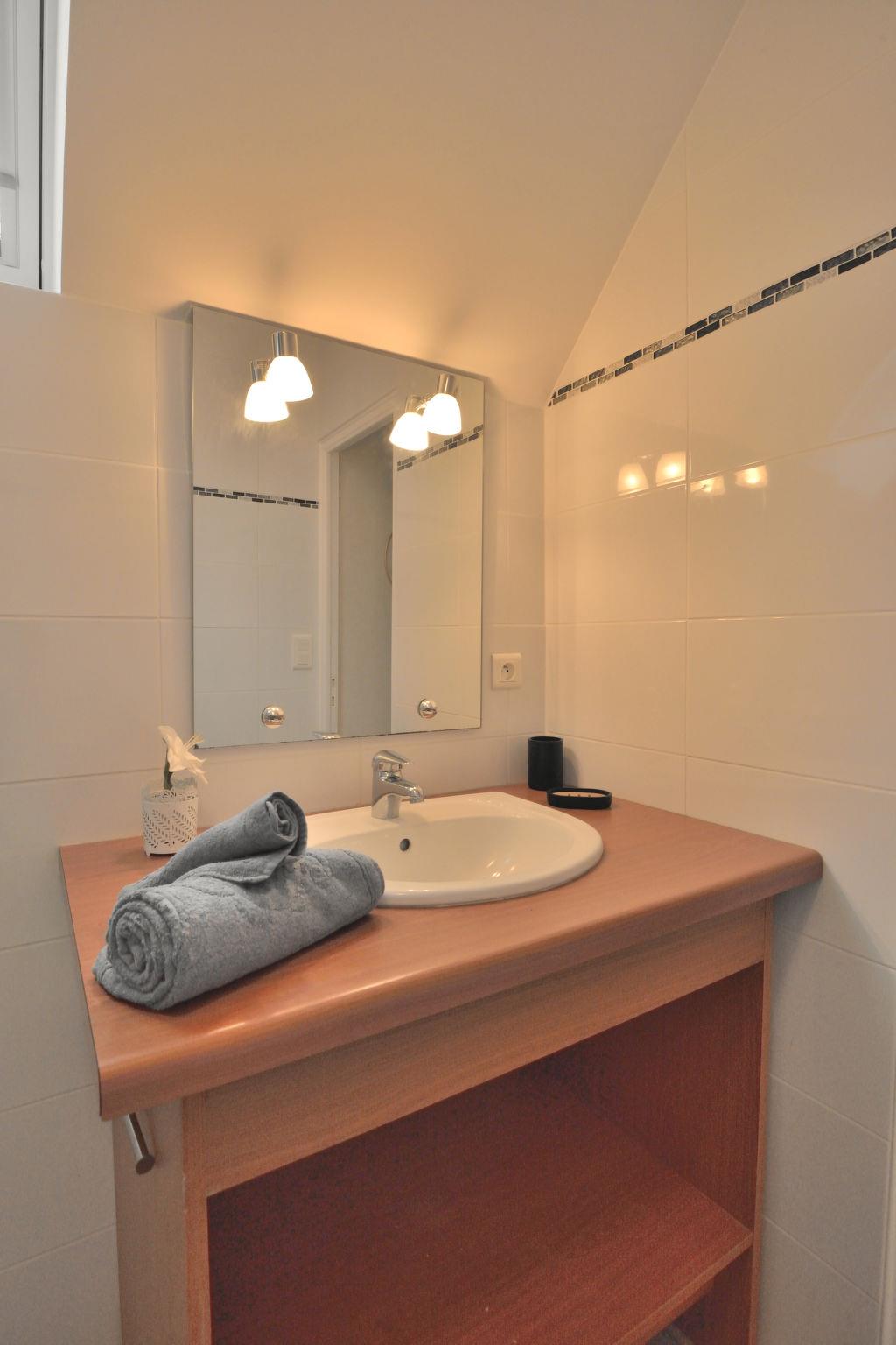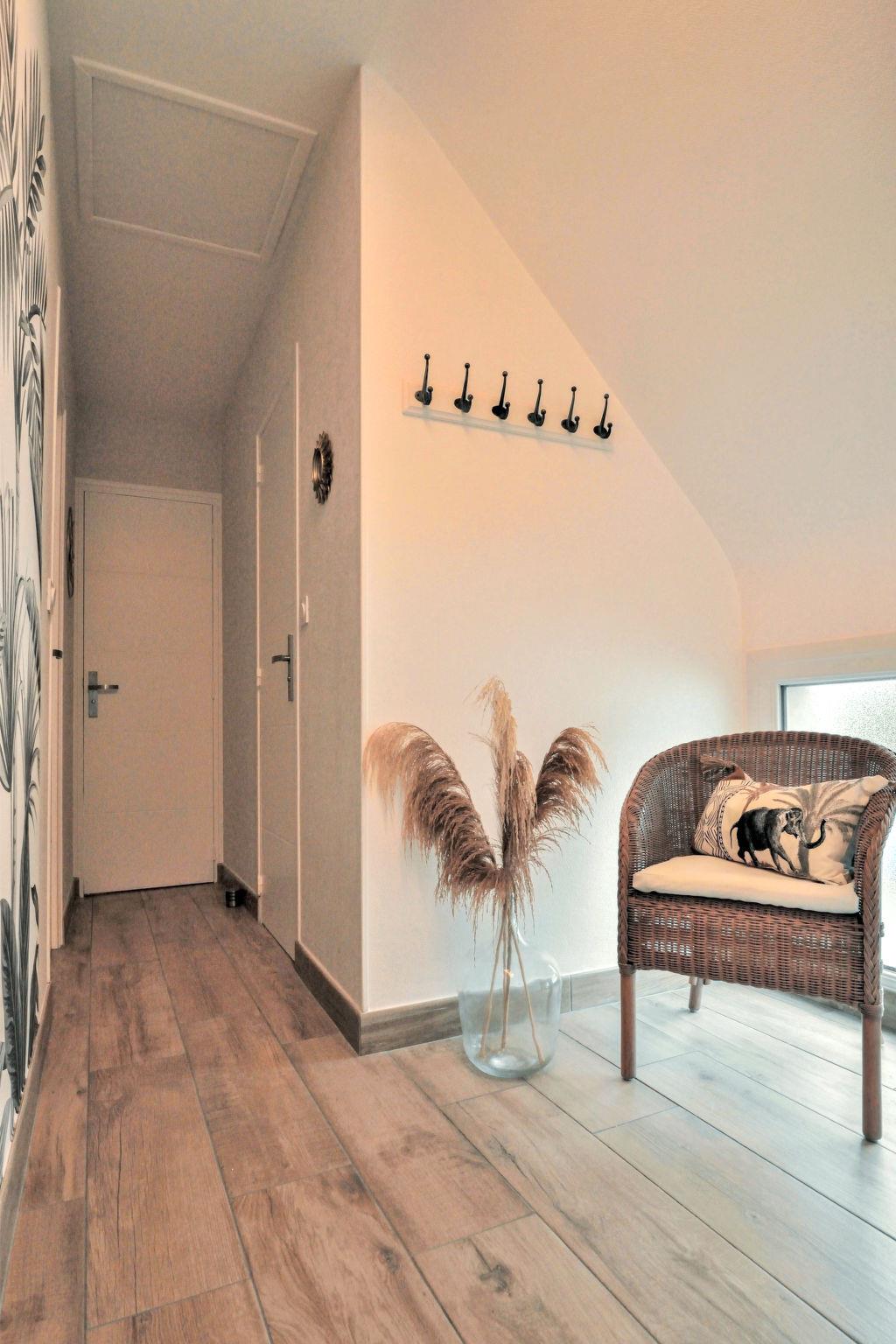 "Hoedic", 3-room apartment 40 m2 on 1st floor. Fully renovated in 2022, beautiful and cosy furnishings: living/dining room with dining table, satellite TV and international TV channels (flat screen). 1 room with 1 french bed (140 cm, length 190 cm). 1 room with 2 beds (90 cm, length 190 cm). Open kitchen (dishwasher, 3 induction hot plates, toaster, microwave, freezer, electric coffee machine). Shower, sep. WC. Electric heating. Deck chairs (2). Facilities: washing machine, iron, hair dryer. Internet (WiFi, free). Please note: non-smokers only. Smoke alarm. Offer by a private individual according to Art. 155, IV of CGI. 56169250021PL