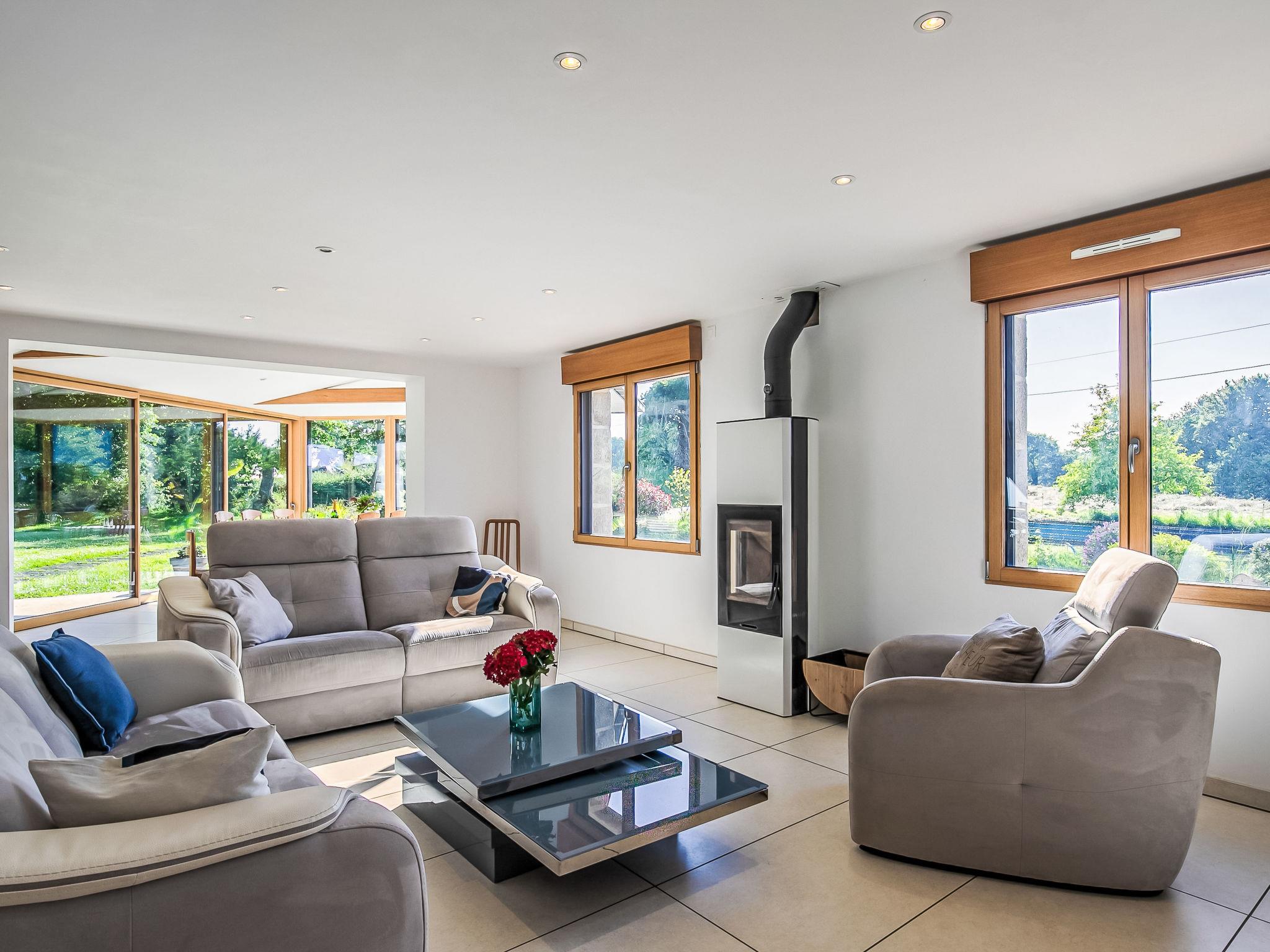 Very beautiful, comfortable single-family house "Les Menhirs", renovated in 2019, surrounded by trees and meadows. In the hamlet Lann Tréman 2.6 km from the centre of Ploumilliau, 5.8 km from the centre of Saint Michel-en-Grève, 7.7 km from the centre of Lannion, 6.2 km from the sea, in the countryside. For shared use: property 2'500 m2 (fenced). Private: beautiful, well-kept garden 400 m2 with lawn and wildlife garden, lawn for sunbathing, swimming pool secured (10 x 5 m, depth 140 cm, seasonal availability: 03.Apr. - 27.Nov.). Table tennis, garden furniture, barbecue, parking (for 5 cars) on the premises. Carport. Shop 2.6 km, bus stop 3 km, sandy beach 6.2 km. Owner lives in separate semi-detached house.