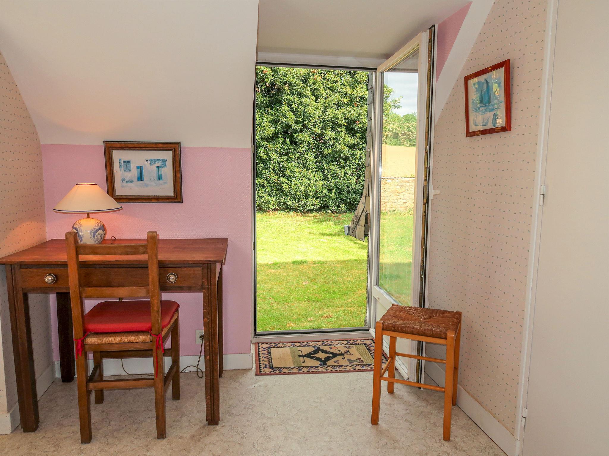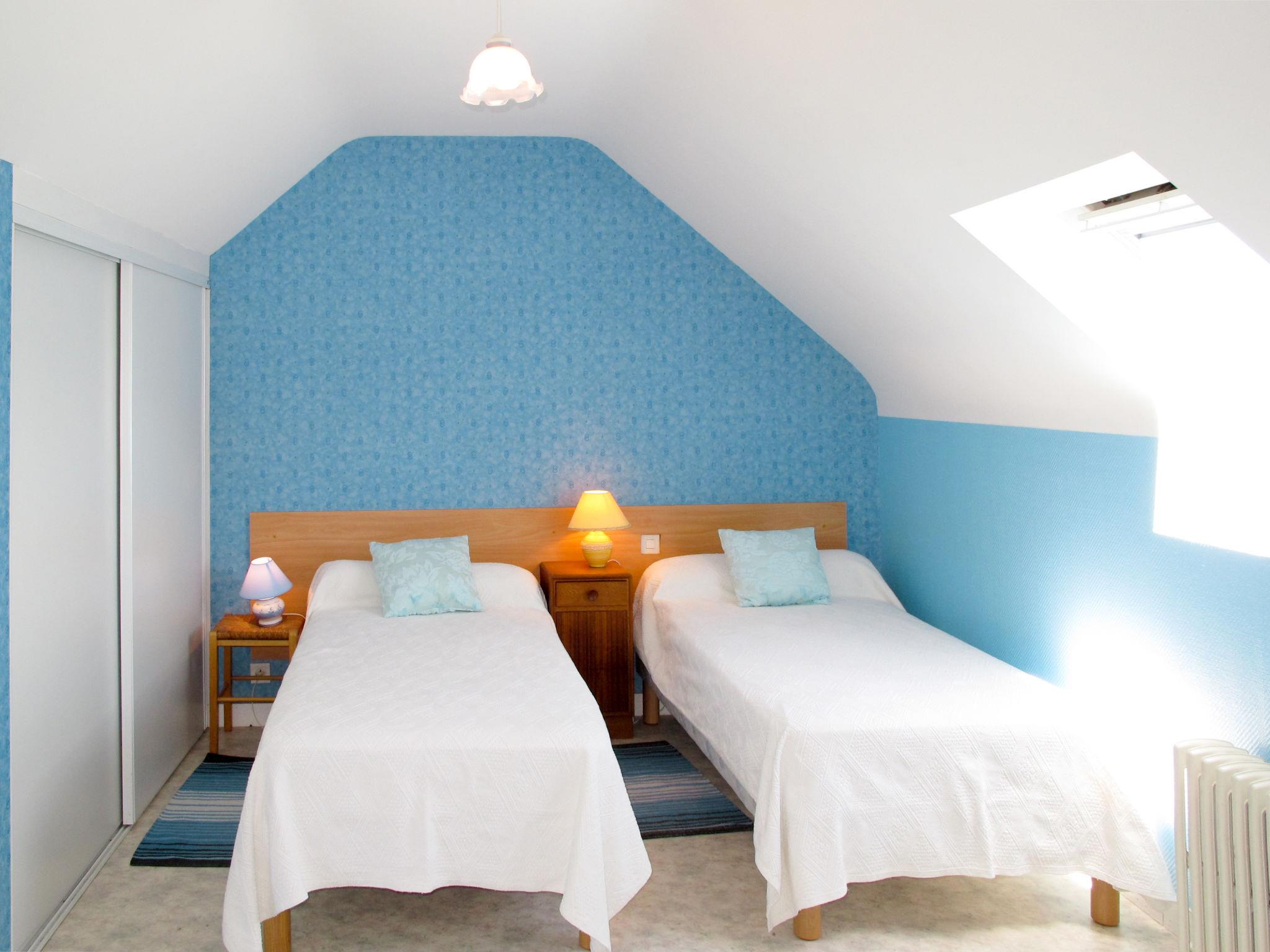 "Gîte Triskell", 4-room house 70 m2 on 2 levels. Partly with sloping ceilings, practical and rustic furnishings: living/dining room with dining table, satellite TV and international TV channels (flat screen), radio. Open kitchen (oven, dishwasher, 4 gas rings, toaster, kettle, microwave, electric coffee machine). Shower, sep. WC. Upper floor: open walk-through room with 1 bed (90 cm, length 190 cm). Interconnecting room with 1 french bed (160 cm, length 200 cm). Exit to the garden. 1 room with 2 beds (90 cm, length 190 cm). Exit to the garden. Sep. WC. Gas heating. Terrace. Terrace furniture, barbecue (portable), deck chairs (5). Facilities: iron, children's high chair, baby cot, hair dryer. Internet (WiFi, free). Please note: non-smoking house. Smoke alarm. 02206022226210072