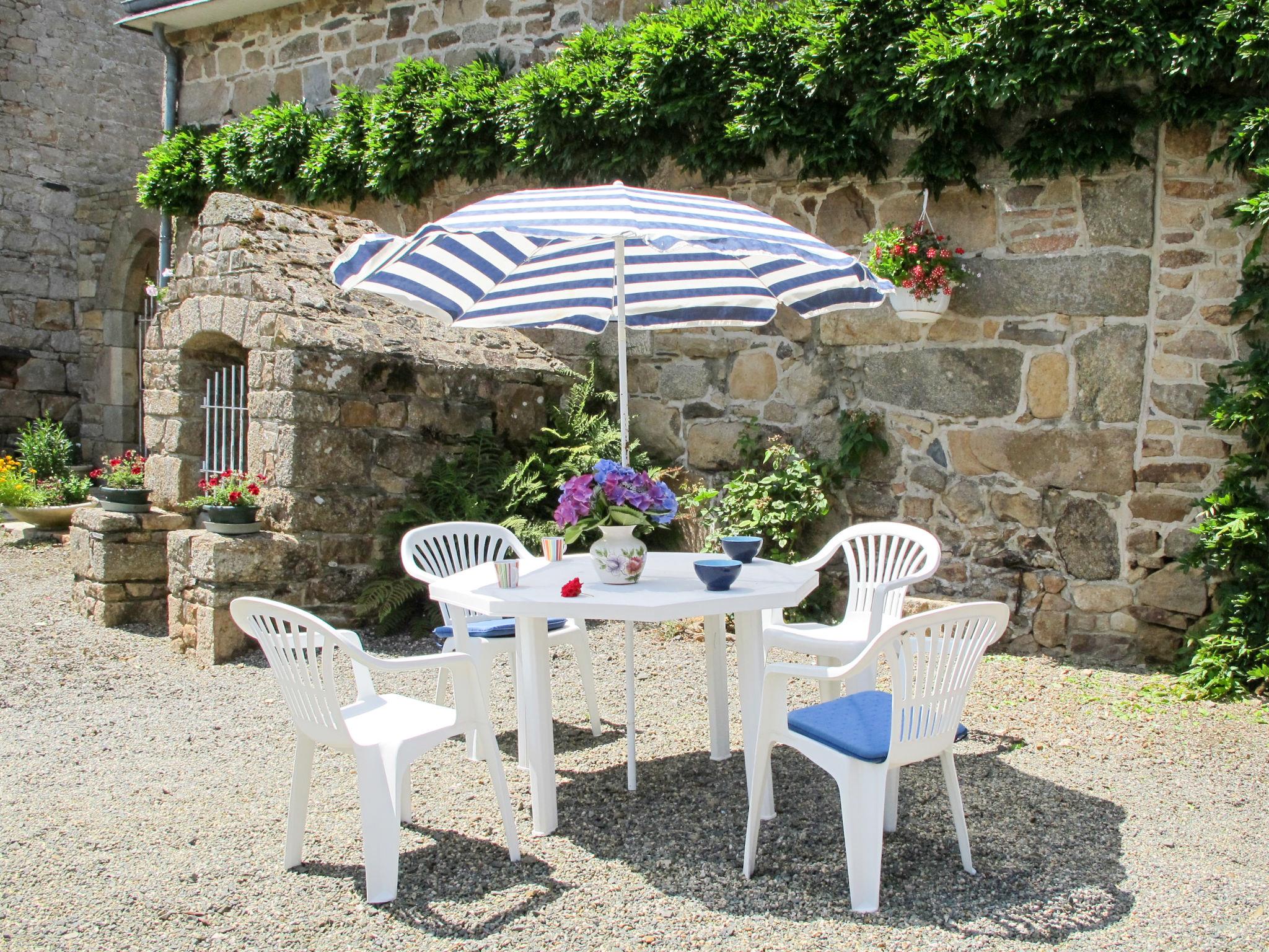 Very cosy cottage "Gîte Triskell". 3 km from the centre of Ploumilliau, 6 km from the centre of St. Michel-en-Grève, 6 km from the centre of Lannion, 6 km from the sea, in the countryside. For shared use: property 4'000 m2 (fenced) with lawn and plants, pond, swimming pool heated, secured (9 x 4 m, seasonal availability: 30.Apr. - 01.Oct.) with internal staircase. Badminton, volleyball court. Private: small, well-kept garden 150 m2 with lawn and trees. In the complex: washing machine, tumble dryer (for shared use). Parking on the premises. Shop 3 km, supermarket 5 km, bus stop 3 km, sandy beach 6 km. Please note: the owner lives on the same property.