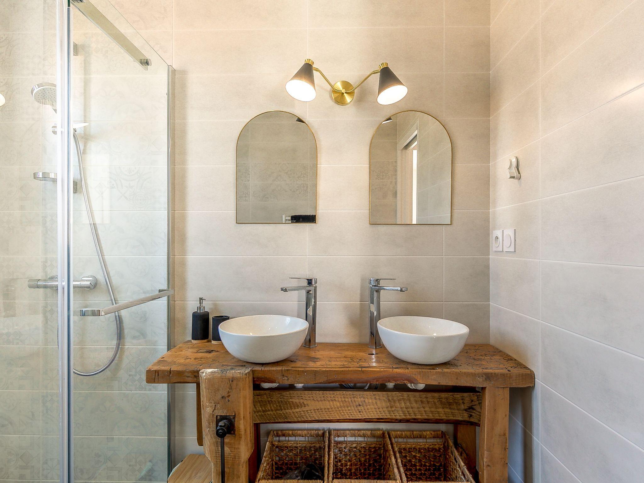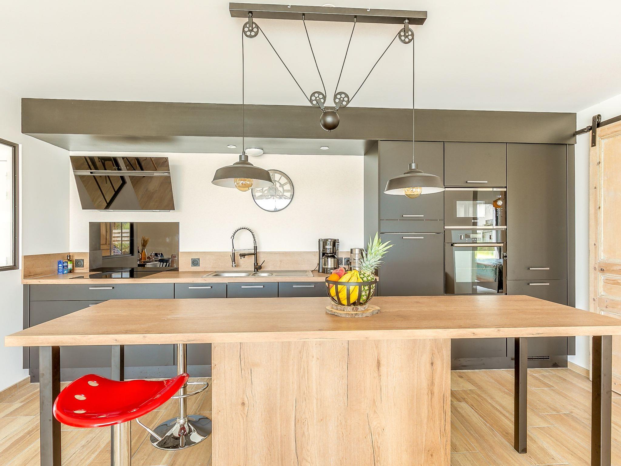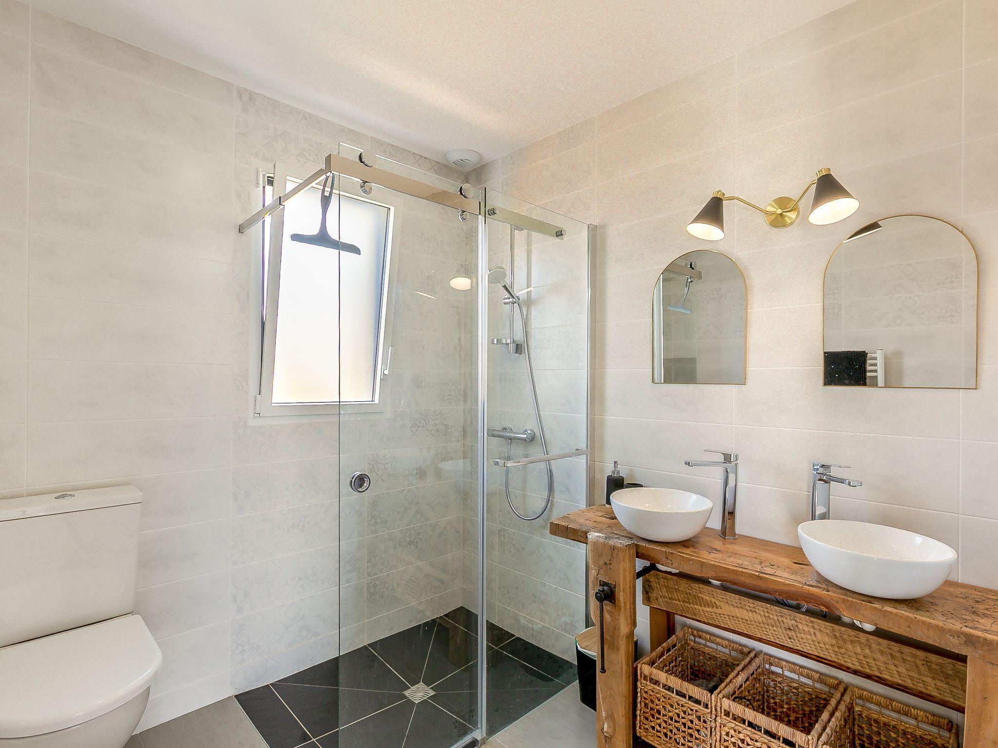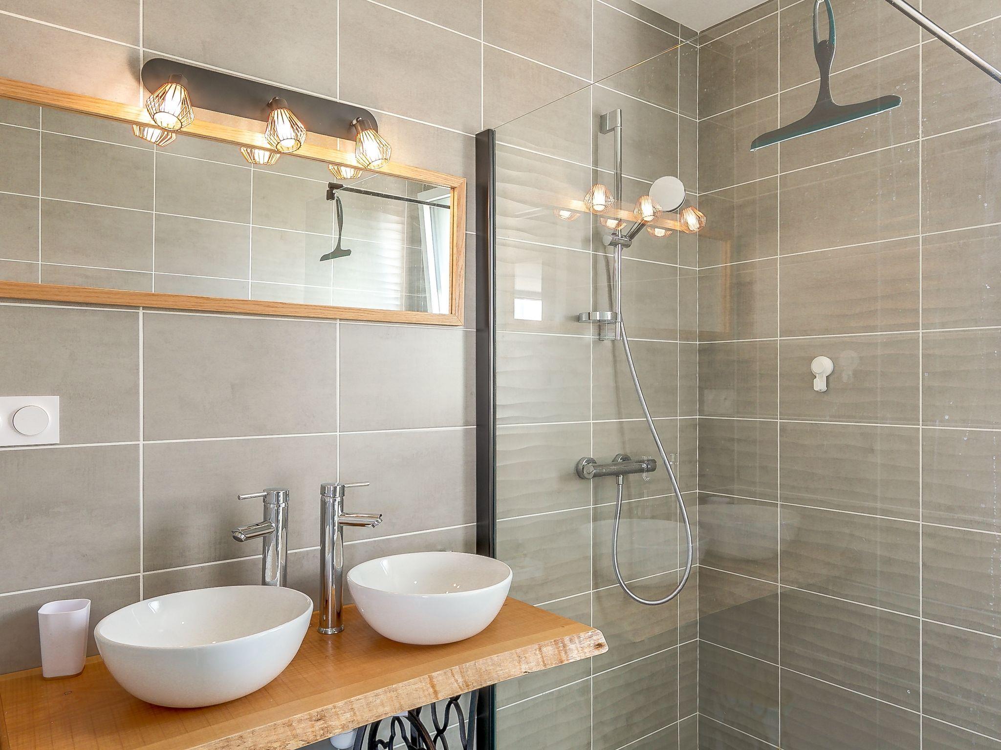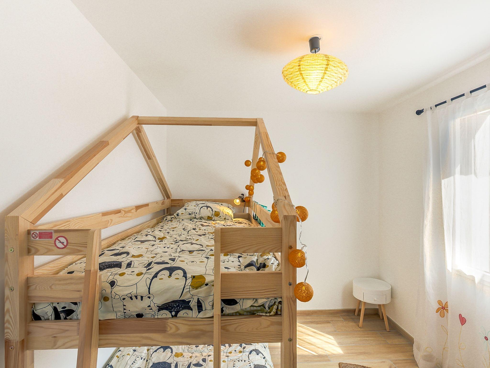"Les Lagons du Lividic", 5-room house 117 m2. Modern and tasteful furnishings: large living/dining room 53 m2 with TV (flat screen). Exit to the terrace, to the swimming pool. 1 room with 1 french bed (160 cm, length 200 cm), electric shutters. Exit to the terrace. 1 room with 1 x 2 bunk beds (90 cm, length 200 cm), electric shutters with shower/WC and double hand-basin. 1 room with 1 french bed (140 cm, length 190 cm), electric shutters. Exit to the terrace. 1 room with 2 beds (80 cm, length 200 cm), electric shutters with separate WC, shower and double hand-basin. Large, open kitchen (oven, dishwasher, 3 induction hot plates, toaster, kettle, freezer, electric coffee machine). Gas heating. Large terrace 100 m2, south facing position, lawn. Terrace furniture, barbecue (portable), deck chairs (8). Facilities: washing machine, dryer, hair dryer. Internet (WiFi, free). Please note: non-smoking house. Smoke alarm, fire extinguisher. Please note: The bedroom with the 160x200 bed and the shower/WC in this part of the house are suitable for people with reduced mobility. FR2991.641.1