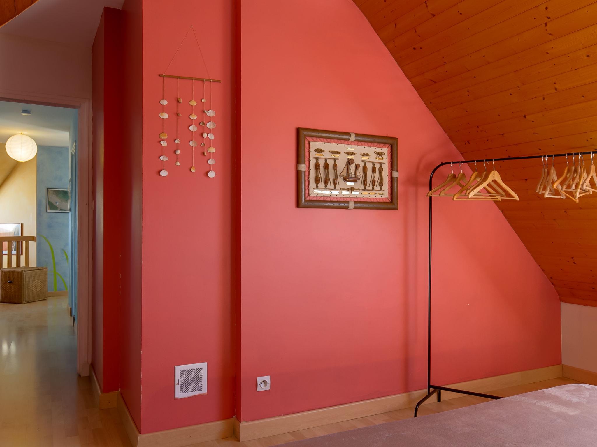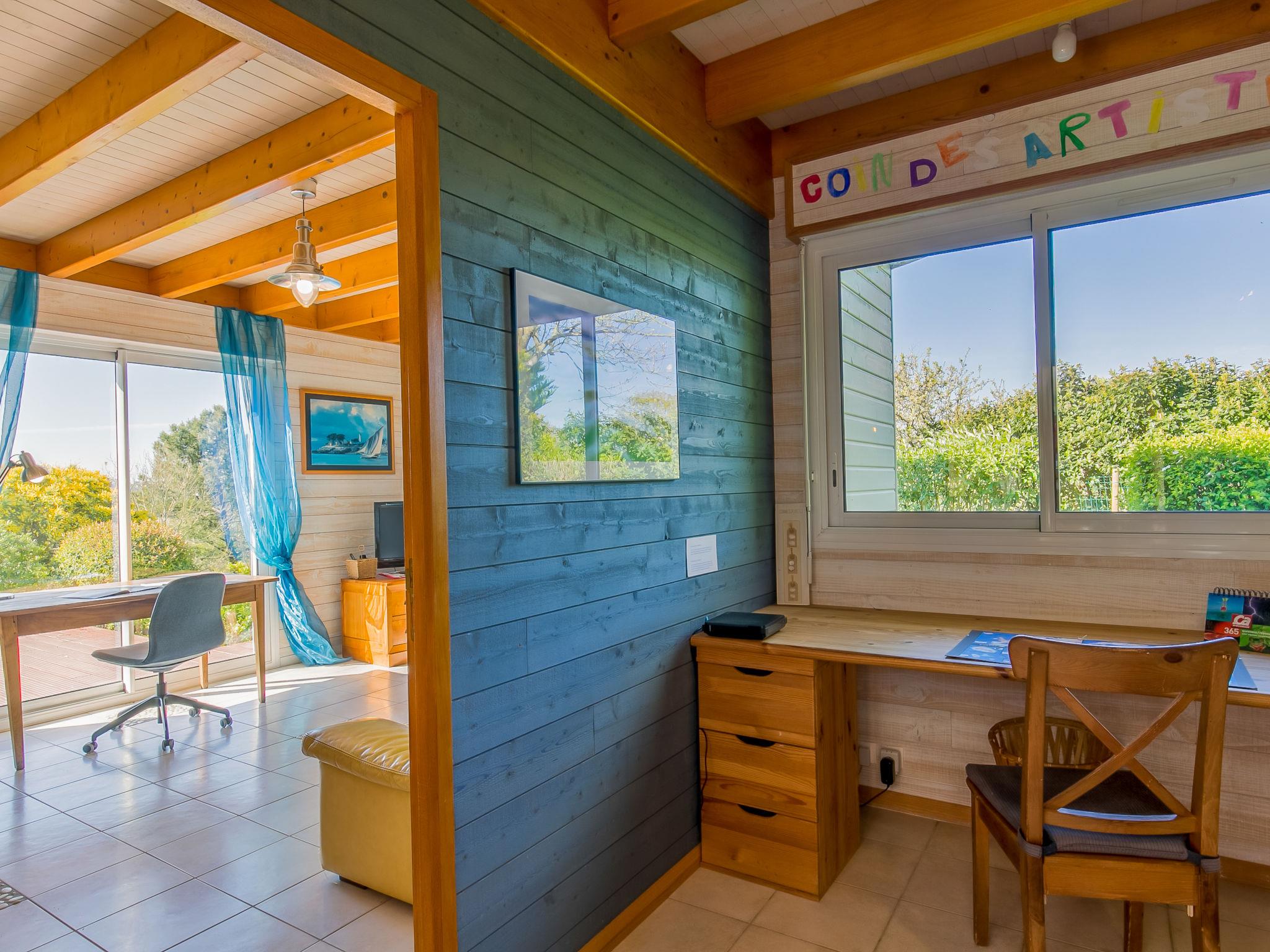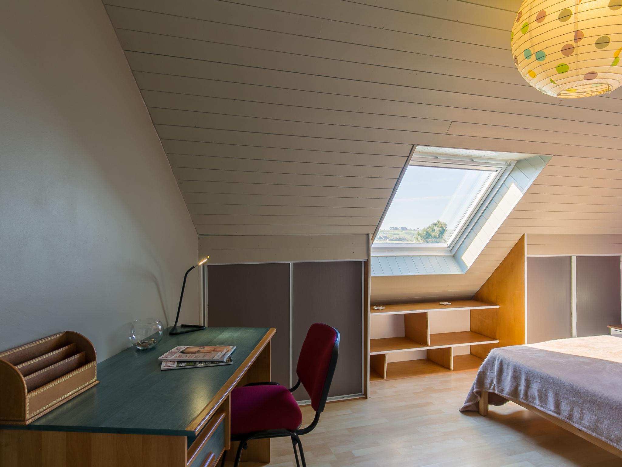 "Villa Panorama Mer", 7-room house 180 m2 on 2 levels. Bright, comfortable and tasteful furnishings: large living/dining room with sliding door with Scandinavian wood stove and dining table. Exit to the terrace. Living room with TV, hi-fi system, DVD and DVD collection available. Exit to the terrace. Office. 1 room with Dressing room with 1 french bed (160 cm, length 200 cm), shower. Open kitchen (oven, dishwasher, 3 ceramic glass hob hotplates, toaster, kettle, microwave, freezer, electric coffee machine). Exit to the terrace. Sep. WC. Underfloor heating. Upper floor: 1 room with sloping ceilings with 1 french bed (160 cm, length 200 cm). 2 rooms with sloping ceilings, each room with 1 french bed (140 cm, length 190 cm). 1 room with sloping ceilings with 2 beds (90 cm, length 190 cm). Bathroom, sep. WC, double hand-basin. Electric heating. Terrace. Terrace furniture, barbecue (portable), deck chairs (2). View of the sea. Facilities: washing machine, iron, children's high chair, baby cot. Internet (WiFi, free). Please note: non-smoking house. Maximum 2 pets/ dogs allowed. Smoke alarm.