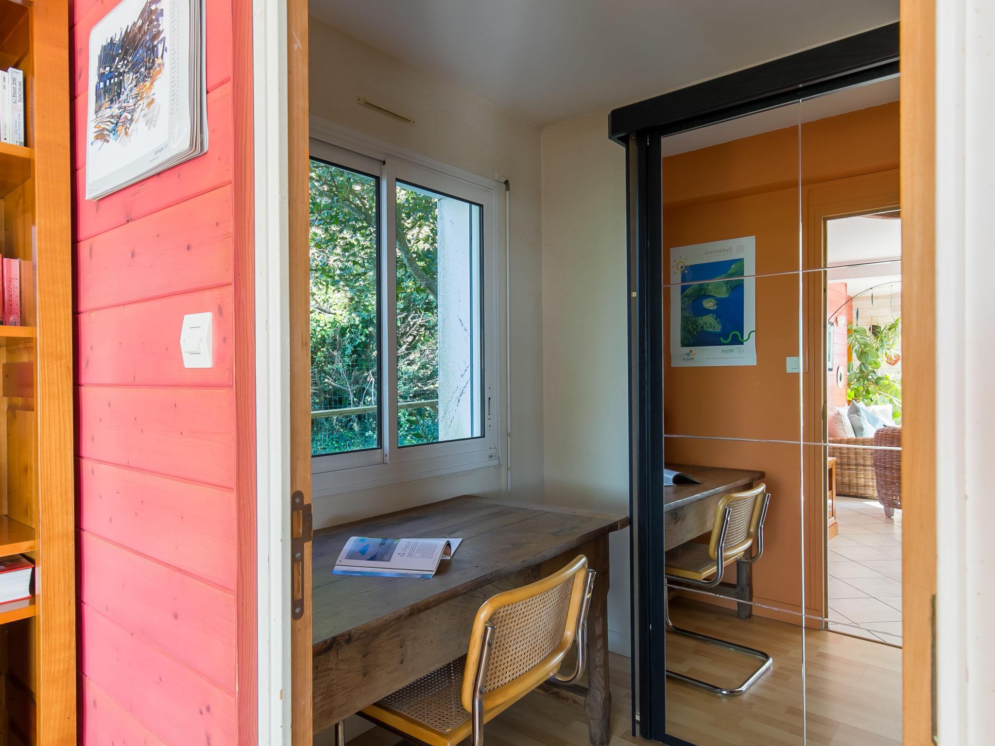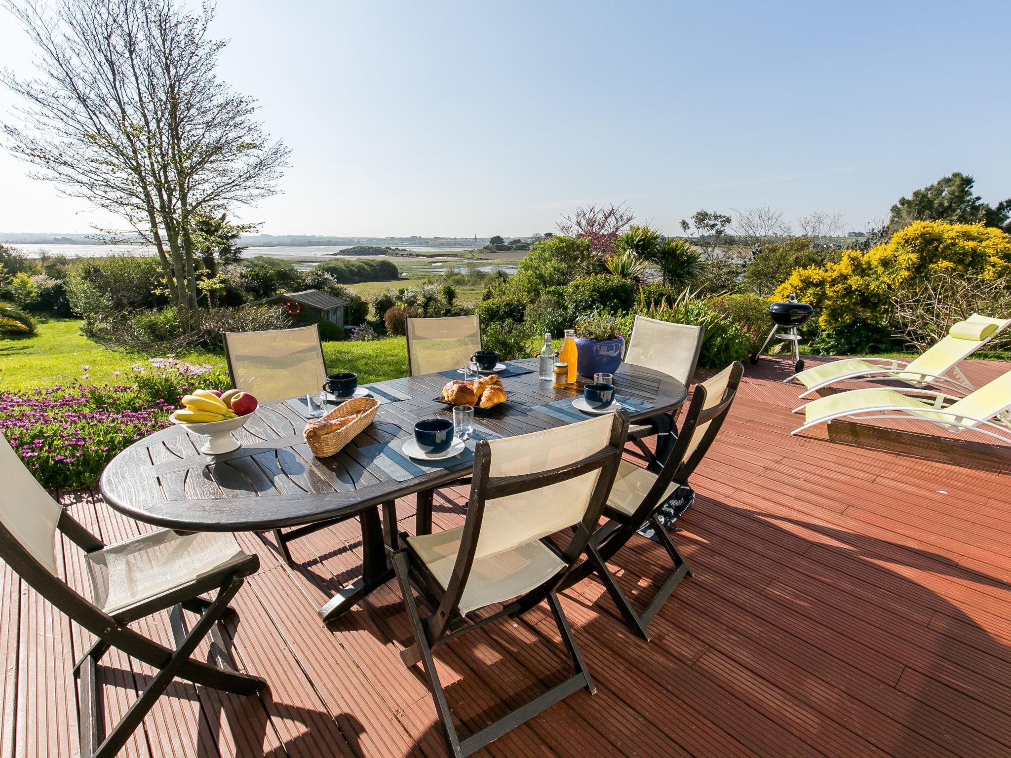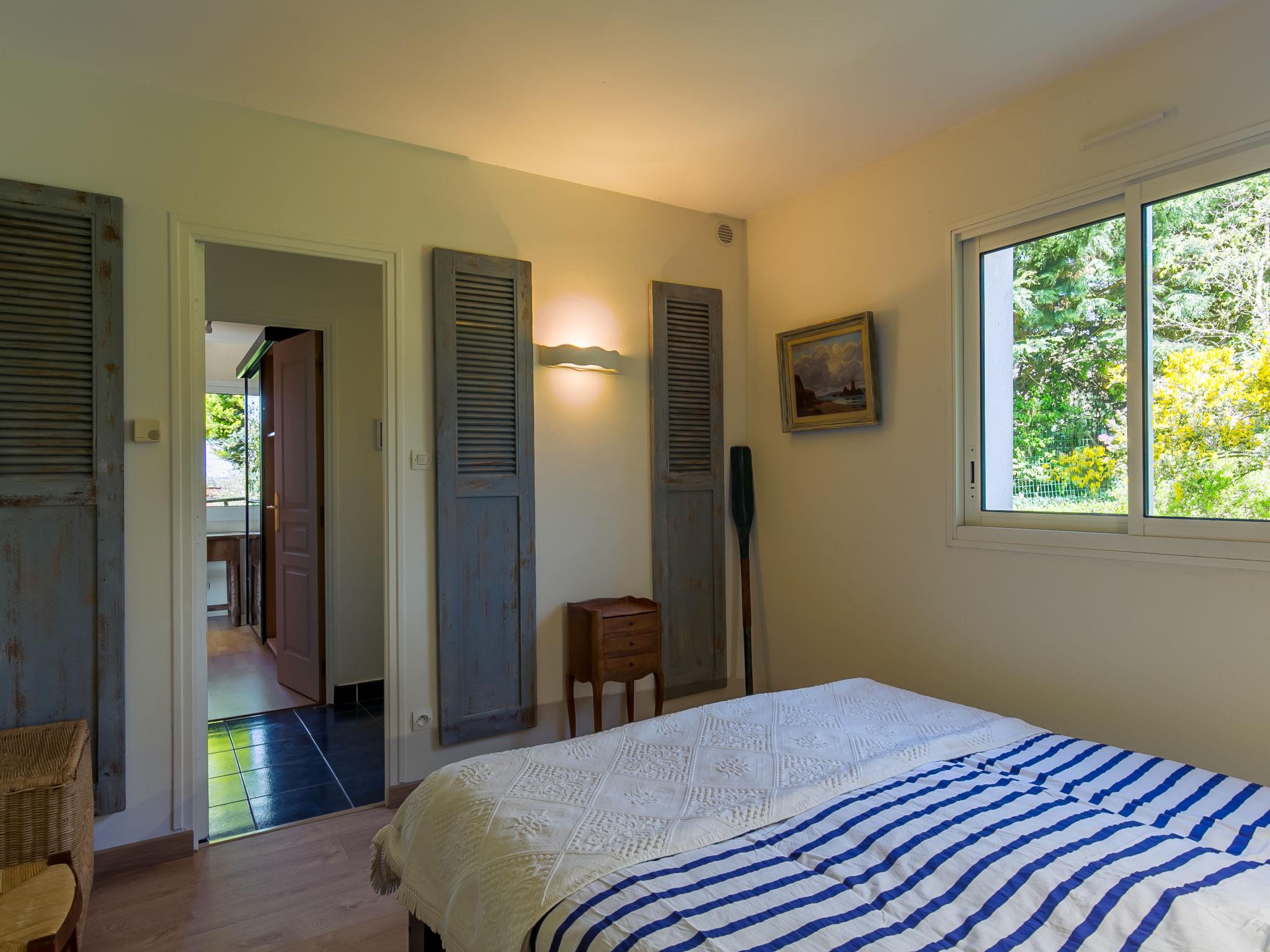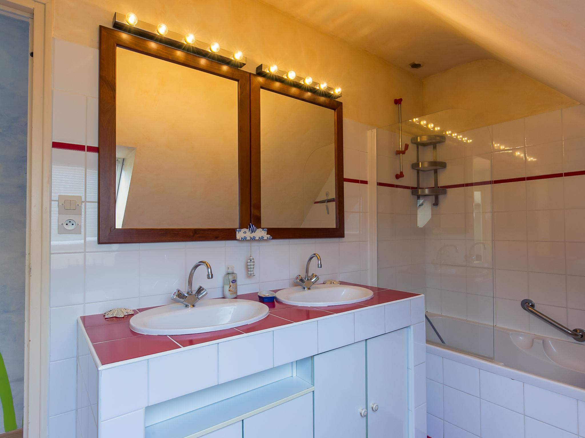 "Villa Panorama Mer", 7-room house 180 m2 on 2 levels. Bright, comfortable and tasteful furnishings: large living/dining room with sliding door with Scandinavian wood stove and dining table. Exit to the terrace. Living room with TV, hi-fi system, DVD and DVD collection available. Exit to the terrace. Office. 1 room with Dressing room with 1 french bed (160 cm, length 200 cm), shower. Open kitchen (oven, dishwasher, 3 ceramic glass hob hotplates, toaster, kettle, microwave, freezer, electric coffee machine). Exit to the terrace. Sep. WC. Underfloor heating. Upper floor: 1 room with sloping ceilings with 1 french bed (160 cm, length 200 cm). 2 rooms with sloping ceilings, each room with 1 french bed (140 cm, length 190 cm). 1 room with sloping ceilings with 2 beds (90 cm, length 190 cm). Bathroom, sep. WC, double hand-basin. Electric heating. Terrace. Terrace furniture, barbecue (portable), deck chairs (2). View of the sea. Facilities: washing machine, iron, children's high chair, baby cot. Internet (WiFi, free). Please note: non-smoking house. Maximum 2 pets/ dogs allowed. Smoke alarm.