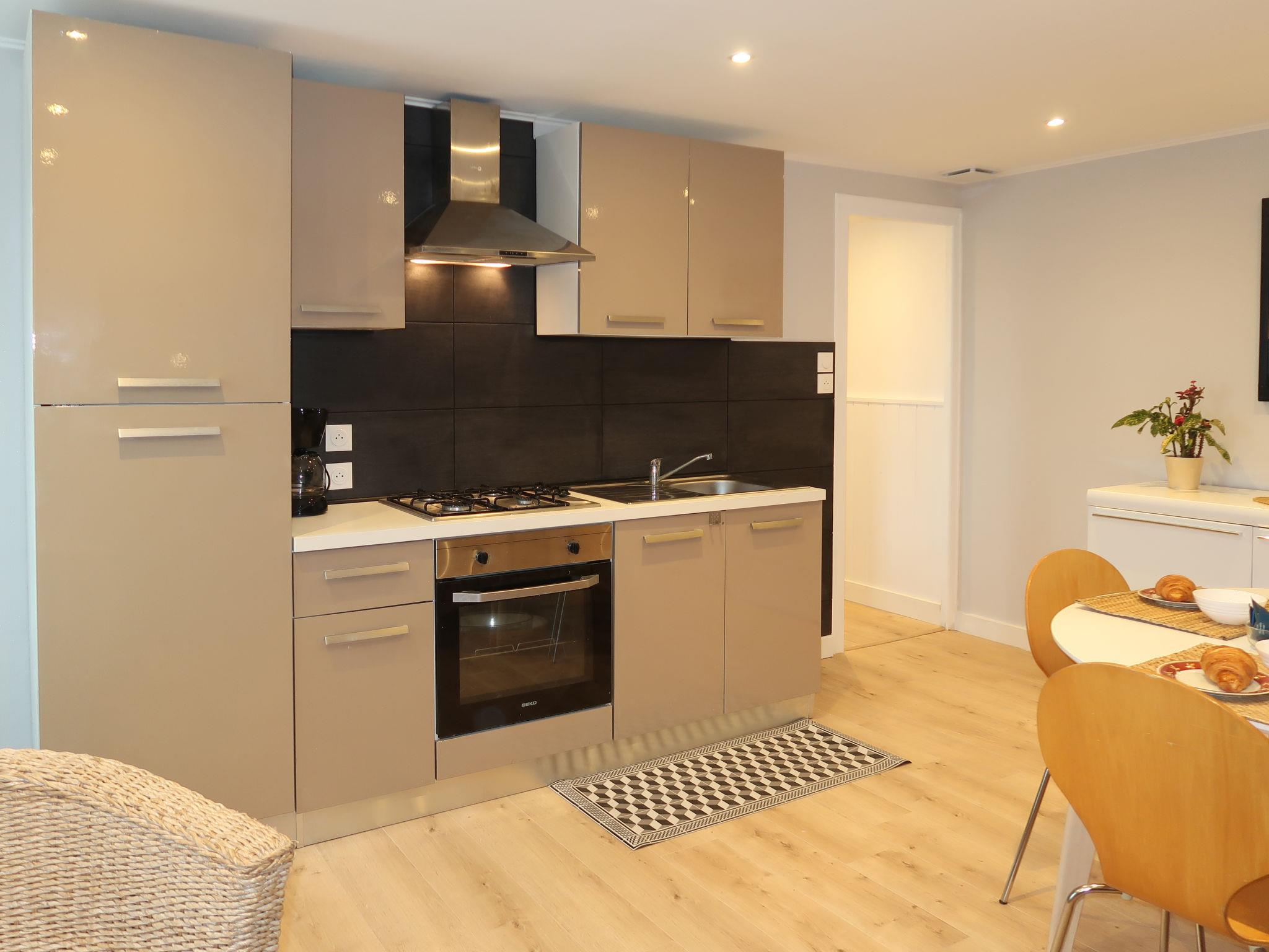 "Ty Coz", 3-room terraced house 70 m2. Fully renovated in 2021, beautiful furnishings: living/dining room with dining table. Exit to the garden. 1 room with 1 french bed (140 cm, length 190 cm). 1 room with 2 beds (90 cm, length 200 cm). Open kitchen (oven, dishwasher, 4 gas rings, toaster, kettle, microwave, freezer, electric coffee machine). Shower, sep. WC, double hand-basin. Electric heating. Garden 100 m2. Terrace furniture, barbecue (portable), deck chairs (2). Facilities: washing machine, dryer, iron. Internet (WiFi, free). Please note: non-smoking house. Private entrance, smoke alarm.