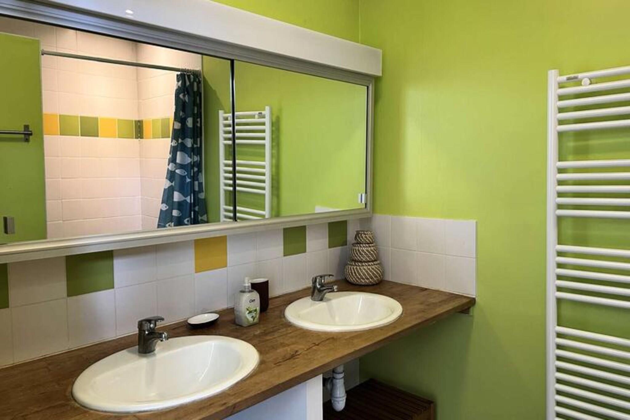 På den betagende Penthièvre-kyst inviterer dette charmerende stenhus dig til at opleve den perfekte blanding af komfort og naturlig skønhed. Kun få minutter fra de berømte badebyer Erquy, Pléneuf-Val-André og Sables-d'Or-les-Pins er denne ejendom et paradis for familier og venner, der søger en rolig flugt. Omgivet af uspolerede landskaber, gyldne strande og naturskønne kyststier er det det ideelle tilflugtssted for naturelskere og dem, der ønsker at lade op. Uanset om du vandrer langs forrevne klipper, dyrker vandsport eller blot nyder panoramaudsigten, lover Penthièvre-kysten uforglemmelige øjeblikke. Indvendigt er huset omhyggeligt designet til at rumme op til 10 gæster. Stueetagen har en rummelig og solrig stue med hyggelige siddepladser, en spiseplads til 10 personer og et fuldt udstyret køkken med moderne apparater, herunder en Nespresso-maskine og en opvaskemaskine. Et praktisk vaskerum, et komfortabelt soveværelse med mezzanin og et elegant badeværelse med bruseniche fuldender denne etage. Ovenpå finder du tre ekstra soveværelser, herunder en master suite med eget badeværelse, et værelse med to enkeltsenge og et køjesengsværelse, der er perfekt til børn. Et separat badeværelse med badekar sikrer alles komfort. Udenfor er den sydvestvendte have og terrasse perfekte til spisning under åben himmel eller afslapning i solen. Udstyret med grill, parasol og liggestole er udendørsområdet ideelt til afslapning efter en dag med udforskning. Reserverede parkeringspladser og inkluderede faciliteter såsom Wi-Fi, sengelinned og håndklæder gør dit ophold ubesværet og behageligt. Uanset om du er tiltrukket af Bretagnes kystlinje, charmen i de nærliggende landsbyer eller roen i dette private tilflugtssted, tilbyder dette hus den perfekte base for en uforglemmelig ferie.