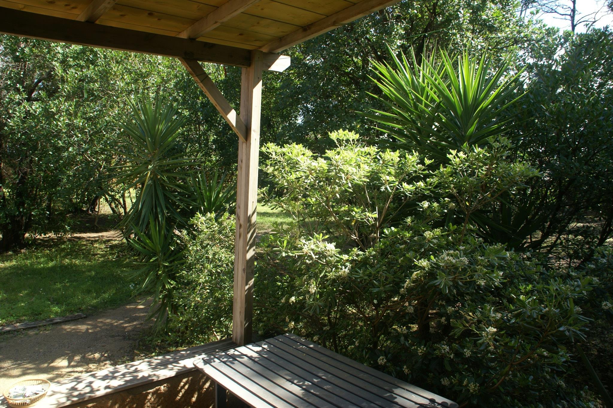 Stueetage: (Stue(dobbeltsovesofa, barnestol), åbent køkken(kaffemaskine, mikrobølgeovn, køle-fryseskab), badeværelse(bruser, håndvask, toilet)) Mellemetage: (soveværelse(enkeltseng, enkeltseng)) Fjernsyn, opvaskemaskine , bruser, vaskemaskine(deles med andre gæster), varme(elektrisk), klimaanlæg, terrasse(privat), have, havemøbler, grill, parkering, trampolin, swimmingpool(deles med andre gæster, opvarmet), petanquebane, barneseng