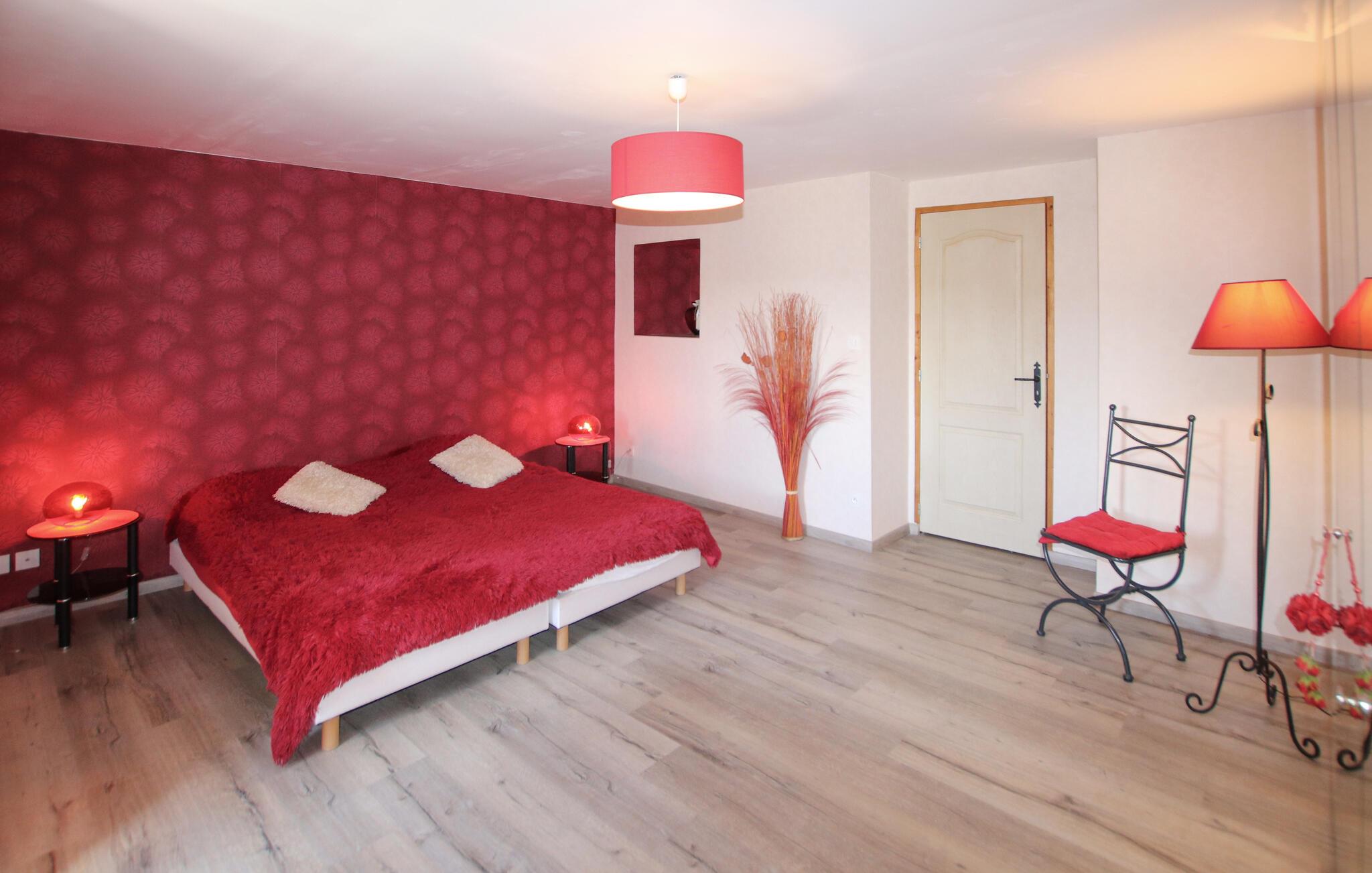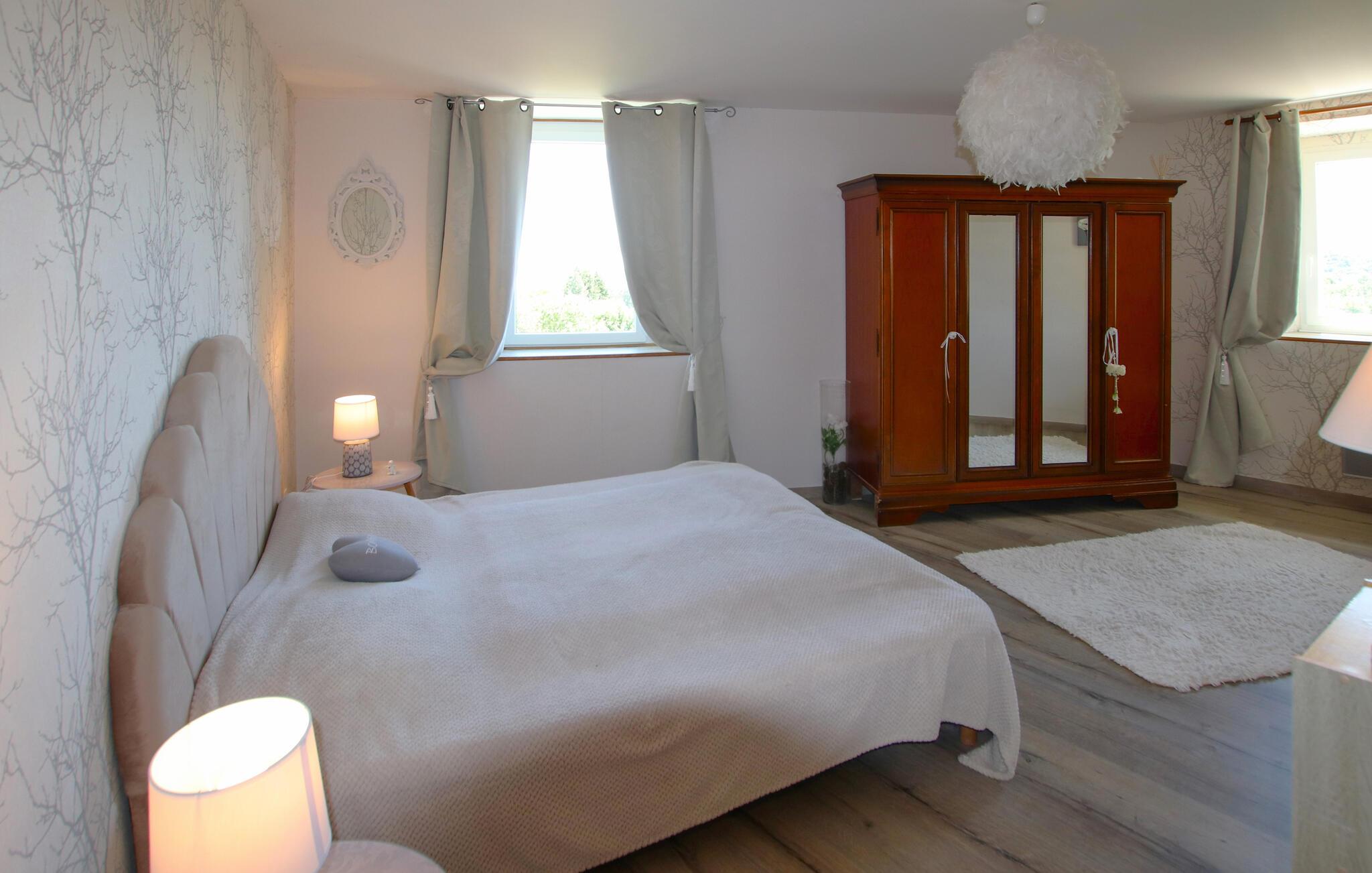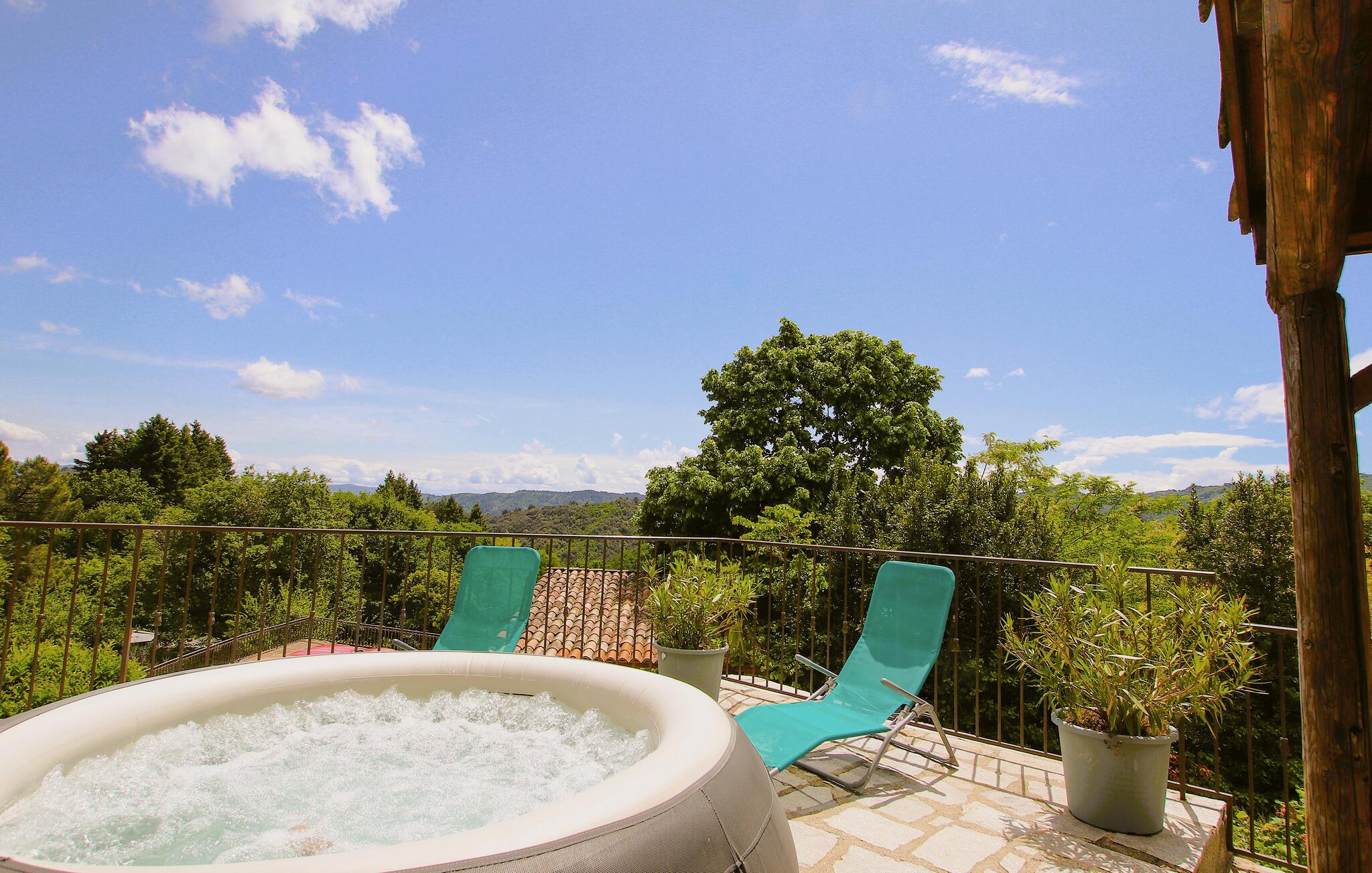Dette smagfulde og kærligt restaurerede stenhus byder jer velkommen, beliggende i de skovklædte bakker i naturparken Monts d'Ardèche, i udkanten af ??en historisk landsby, og forkæler jer med en storslået panoramaudsigt over landskabet. Gør nogle lækre ferieretter klar i det rummelige køkken og Find jer godt til rette for jer til hyggelige spilleaftener i den indbydende stue.