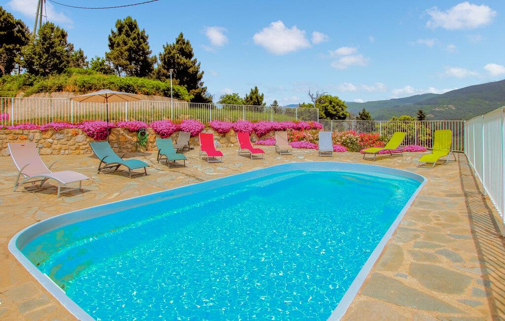 Dejlige timer venter jer også på den solrige terrasse med panoramaudsigt og i den opvarmede, afsidesliggende og børnesikre indhegnede pool. Tænd op i grillen om aftenen og glæd jer til stemningsfulde sammenkomster under den indbydende pergola.