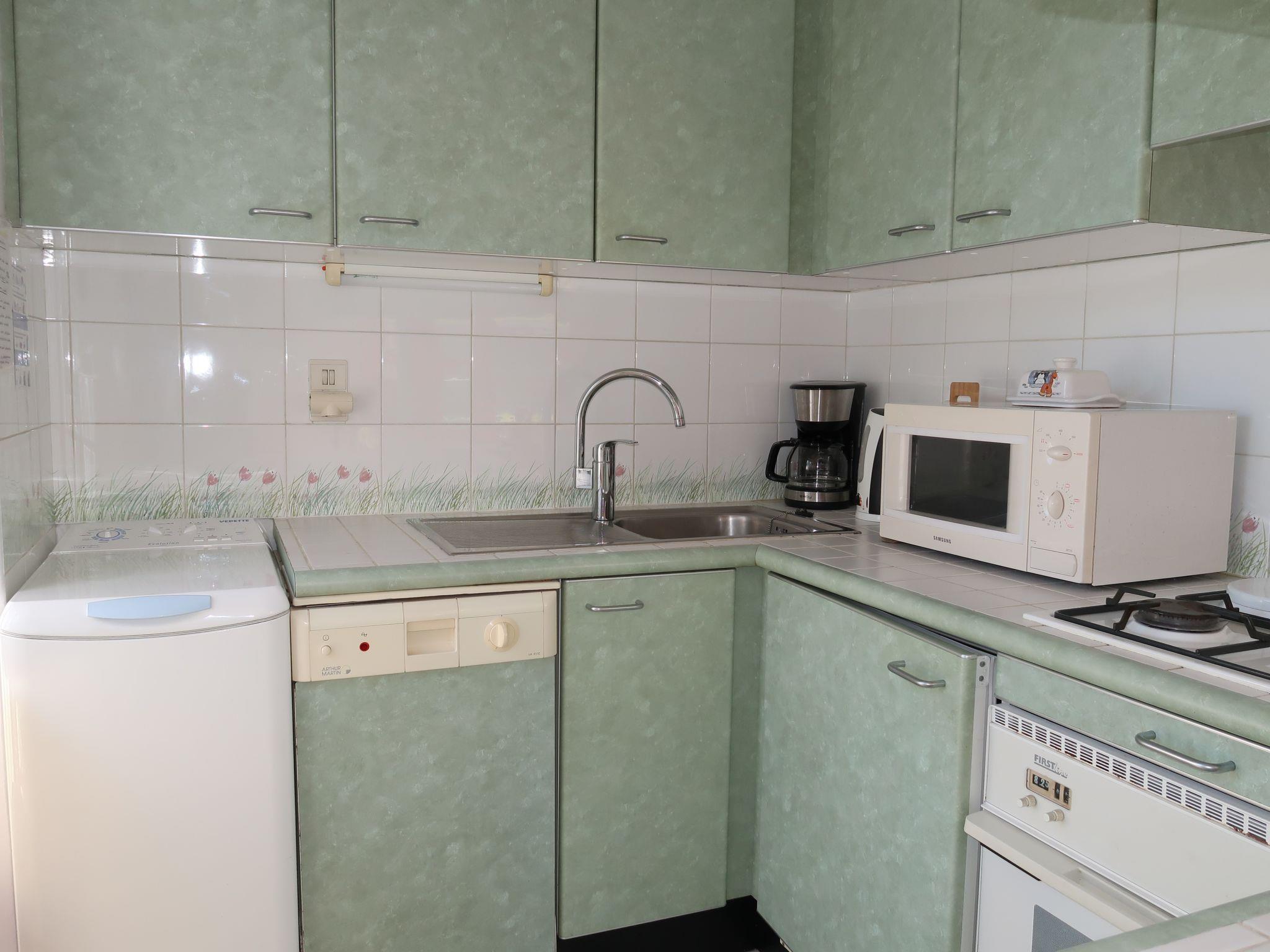 "Jasmin", 3-room apartment 50 m2, on the ground floor. Practical furnishings: living/dining room with dining table and satellite TV. Exit to the terrace. 1 room with 1 french bed (140 cm, length 190 cm). 1 room with 2 beds (90 cm, length 190 cm). Small, open kitchen (1 hot plate, oven, dishwasher, 3 gas rings, toaster, kettle, microwave, electric coffee machine). Shower, sep. WC. Electric heating. Carpet. Terrace. Terrace furniture, barbecue (portable), deck chairs (2). Facilities: washing machine, baby cot. Internet (WiFi, free). Please note: non-smokers only. Private entrance, smoke alarm.