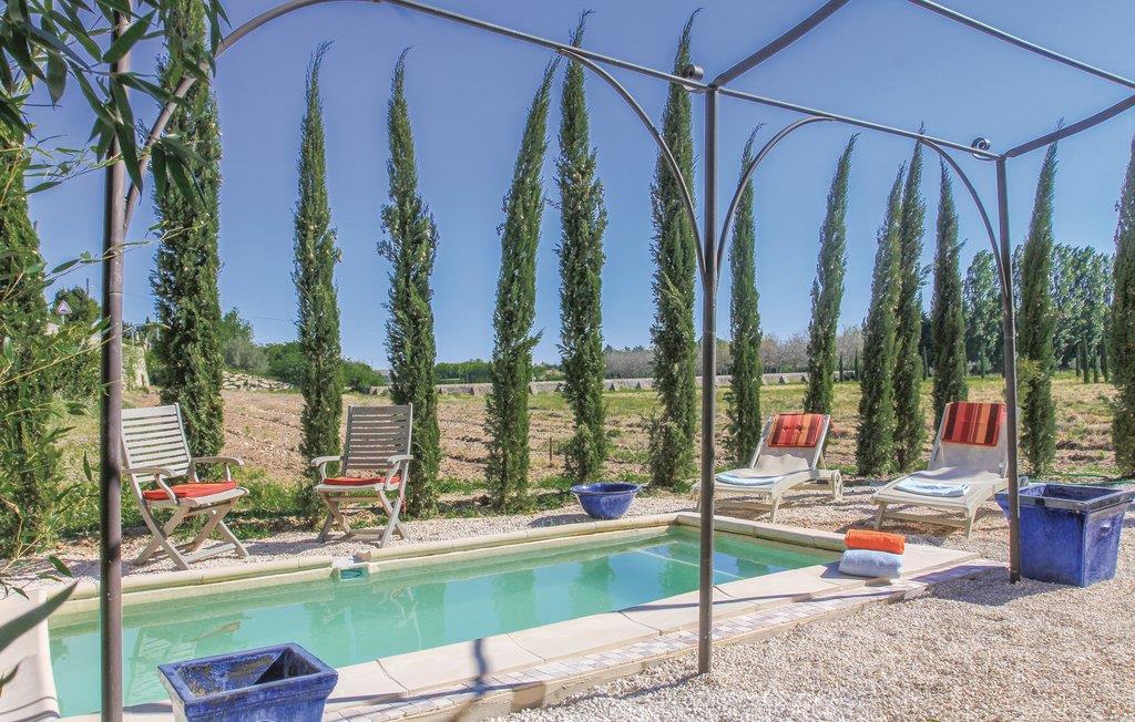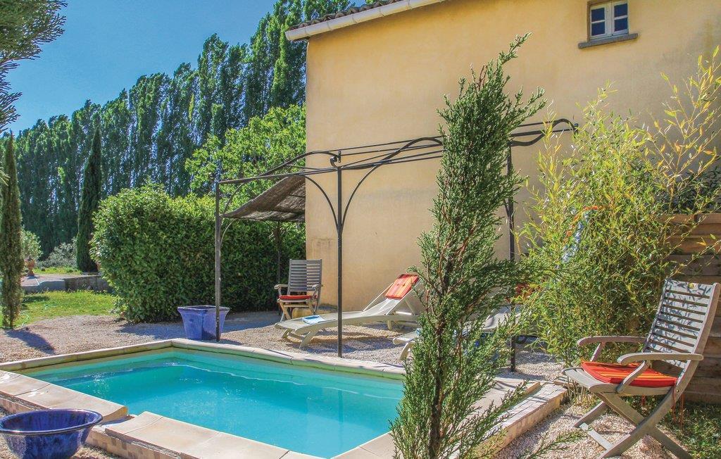 Dette charmerende feriehus med pool i Pont-Saint-Esprit åbner sine døre lige ved floden Ardèches imponerende kløft, ikke langt fra det vidunderlige Château Trois Soleil. Den 200 m² store have og den rummelige, skyggefulde terasse med grill indbyder til afslapning og udendørs måltider. Glæd jer til en velholdt og behagelig indretning i provencalsk stil. Køkken og soveværelse 1 nårs via en udvendig trappe.