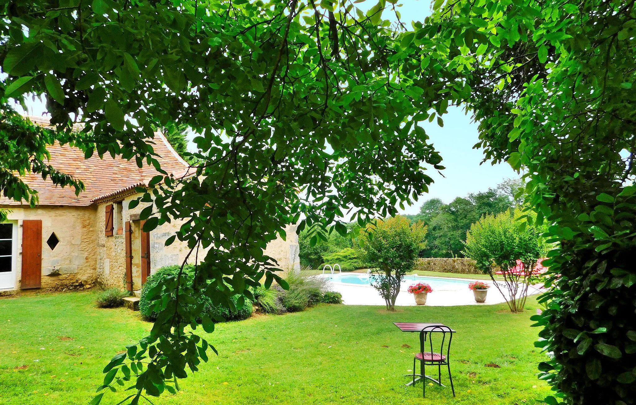 Oplev dette feriehus beliggende i det fredfyldte landskab i Dordogne, kun 1 km fra landsbyen Pont Saint Mamet, hvilket giver nem adgang til vigtige butikker. Ejendommen består af to charmerende stenhuse, der sikrer god plads og ro. Hovedhuset byder dig velkommen med et veludstyret køkken og et fredfyldt soveværelse i stueetagen med et privat badeværelse mod haven. Ovenpå kan du opdage smagfuldt indrettede værelser med malerisk udsigt. Kun 15 m væk kan det andet hus prale af en dejlig opholdsstue med tekøkken og vaskefaciliteter. Den øverste etage afslører et fredfyldt soveværelse med moderne bekvemmeligheder, perfekt til et afslappende ophold. Ejendommen byder på en smukt anlagt have med frodige græsplæner og træer. Slap af under smedejernspergolaen eller nyd dejlige aftener på den overdækkede træterrasse udstyret med gas- og kulgrill. Tag en forfriskende dukkert i poolen ved siden af hovedhuset, som tilbyder et perfekt tilflugtssted under dit ophold. Derudover kan du omfavne afslappede aktiviteter med et bordtennissetup, mens du nyder den betagende udsigt over landskabet. Huset ligger 1 km fra hjertet af landsbyen Pont Saint Mamet, med alle nærbutikker og en tennisbane (også tilgængelig til fods). Nærmeste store indkøbscenter 12 km væk.