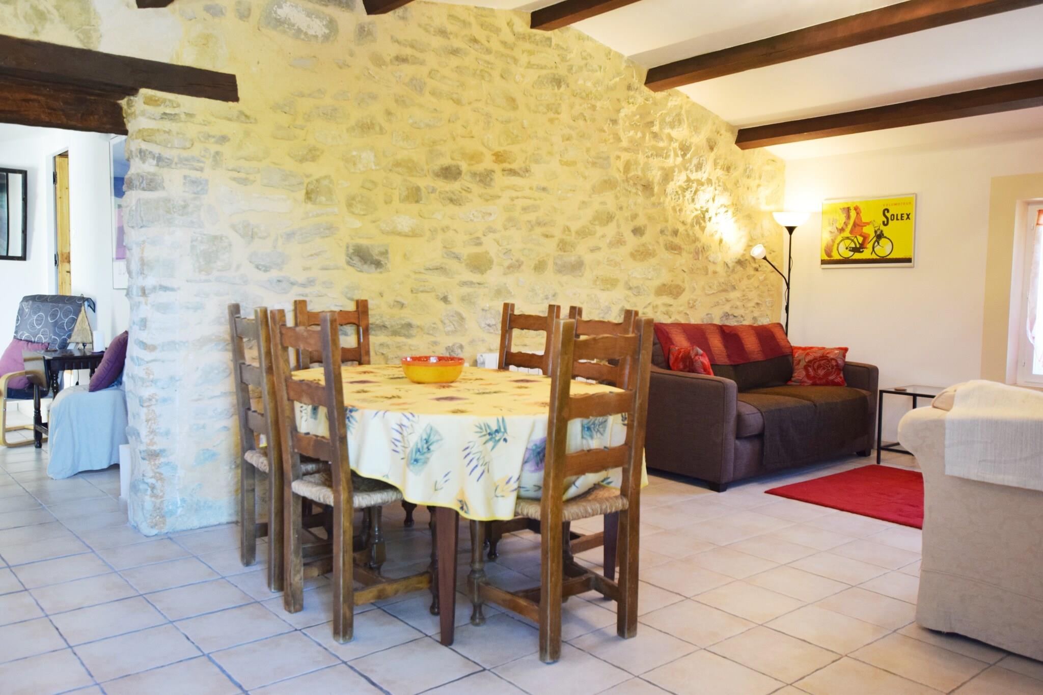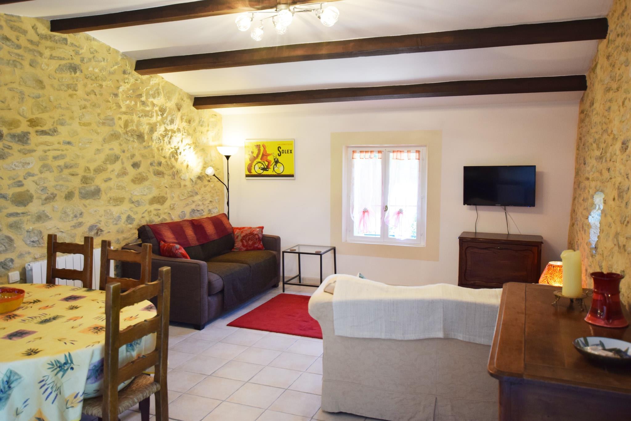 Lille domæne med traditionel sten Mas, fuldstændig renoveret med tre charmerende stenlejligheder, hver med sin egen private terrasse og en fælles pool. Denne hytte, der passer til 4perons, ligger på første sal og er tilgængelig via en sten trappe, der fører til den forhøjede terrasse med indgangen til gite. Med udsigt over haven og poolen kan du nyde den fredelige og smukke omgivelser. Føles som lidt forfriskning? Tag en dukkert i poolen! På den store ejendom finder du en dejlig pool, der deler med gæsterne i de andre hytter, hvor du kan afkøle på varme sommerdage. De meget venlige og hjælpsomme ejere bor på stedet sammen med deres kat, hunde, kylling og fire donkies (Provence æsler reddet fra abbatoiren) men er meget diskret. Hvis du ønsker det, kan de give dig tips om alle aktiviteter og landsbyer at besøge i området.