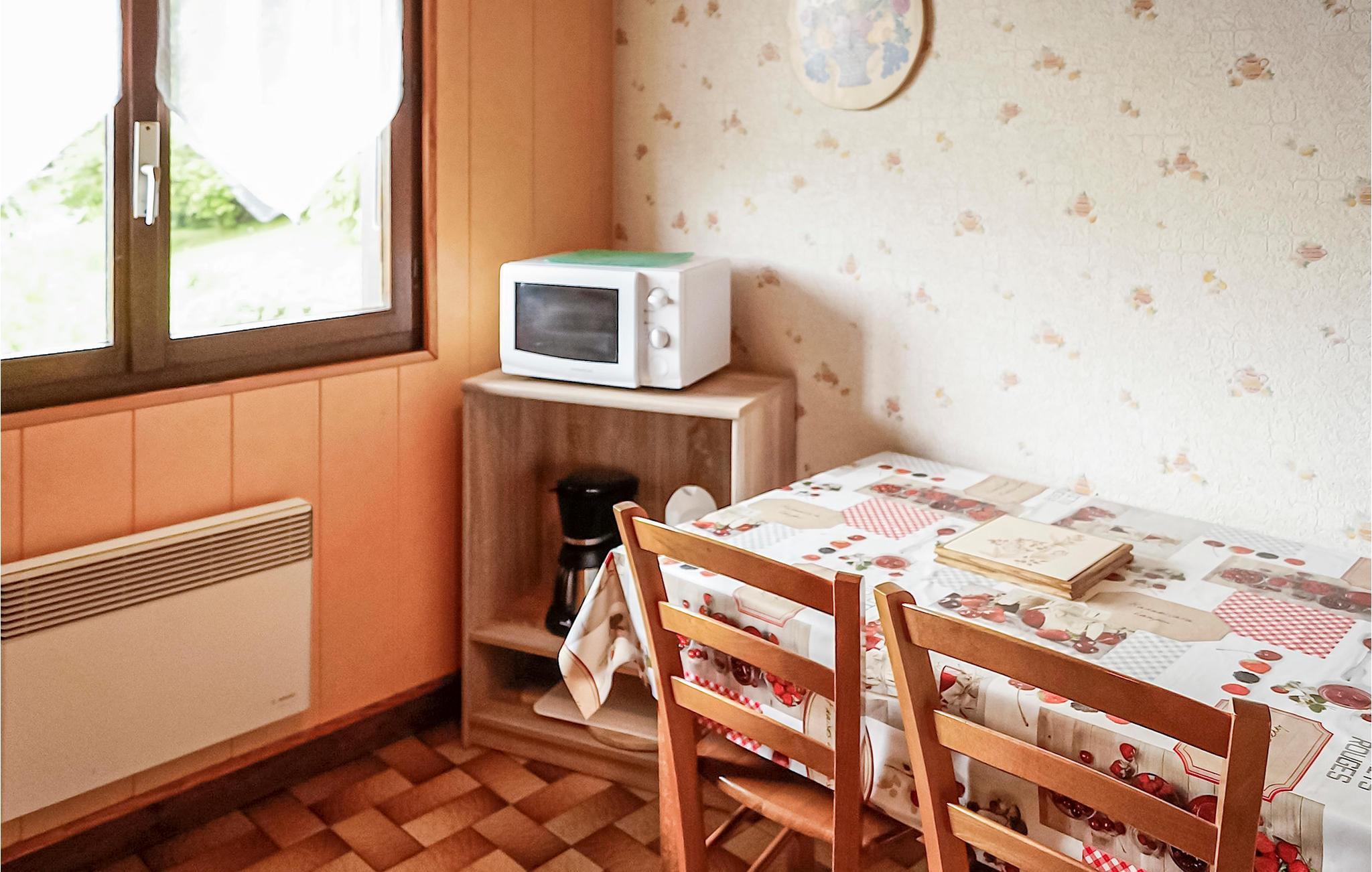 Tilbring afslappende dage i enkle, men funktionelle boliger, der tilbyder jer nærhed til naturen og en bred vifte af fritidsaktiviteter. Udnyt denne hyttes beliggenhed til at opleve Jurabjergene i alle deres facetter. Trævæggene og de enkle møbler i opholdsstuen skaber en hyggelig atmosfære. Slap af i lænestolene foran fjernsynet, eller nyd jeres måltider ved spisebordet.