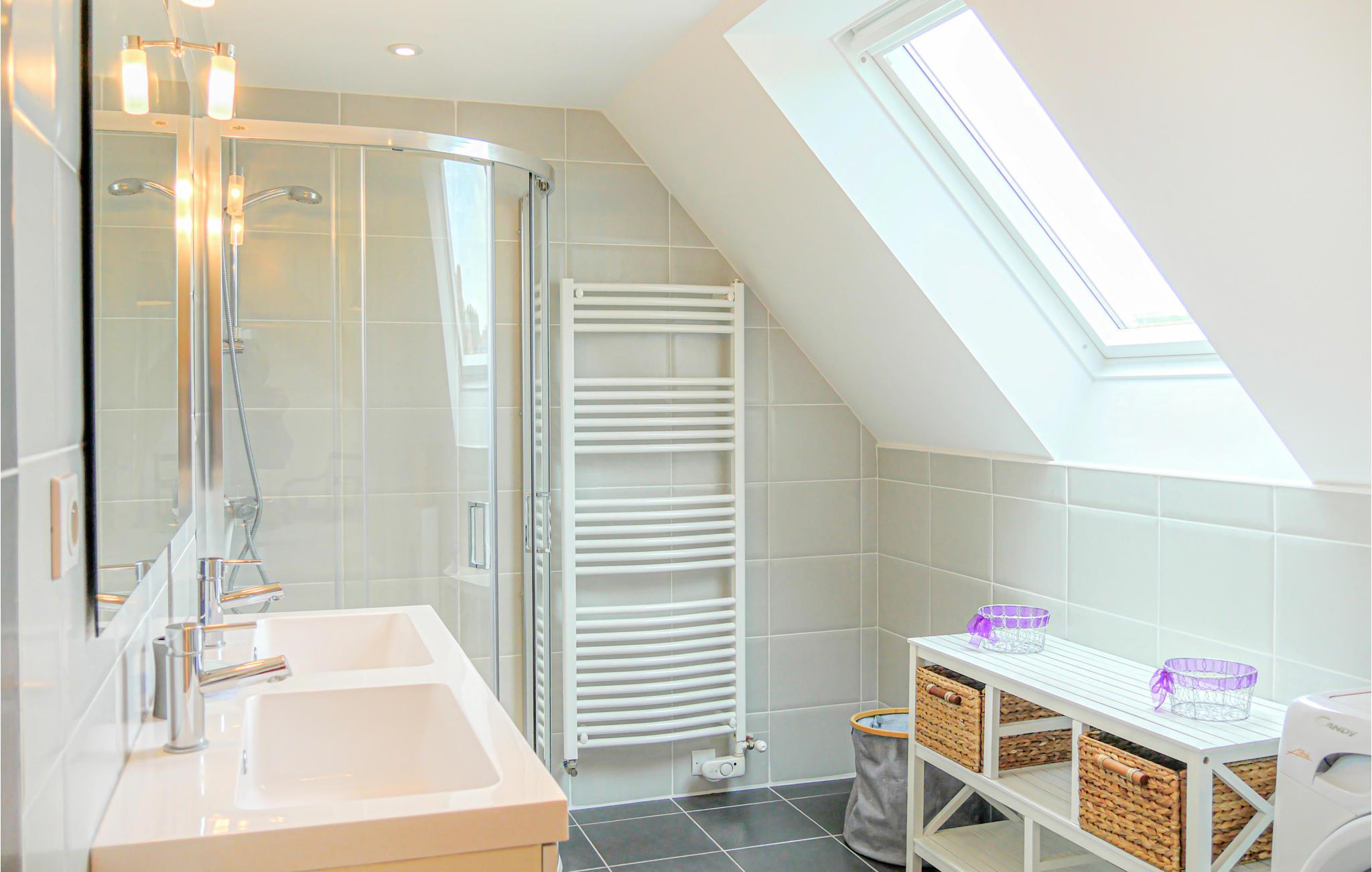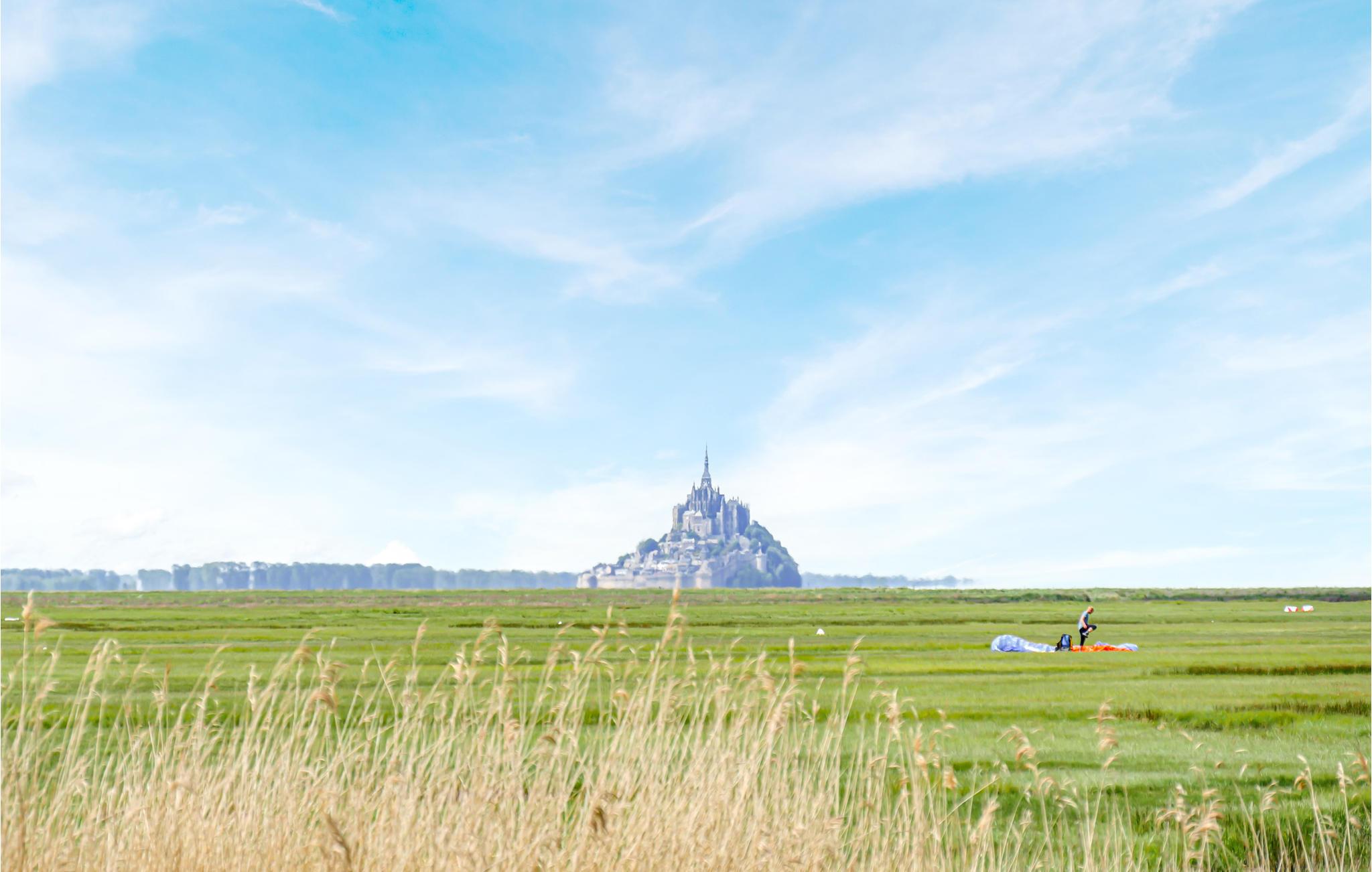 Denne særdeles indbydende lejlighed, der strækker sig over de øverste etager i en mølle i Cavigny, forener moderne komfort med bindingsværk og sten. Nyd den skønne udsigt over de landlige omgivelser med græssende køer og heste samt over kanalen, hvis strømmende vand stadig kan få møllens vandhjul til at dreje. I byen Avranches, 3 km væk, kan I se Mont Saint-Michel og bugten samt besøge den botaniske have med sit helt unikke udsigtspunkt.
