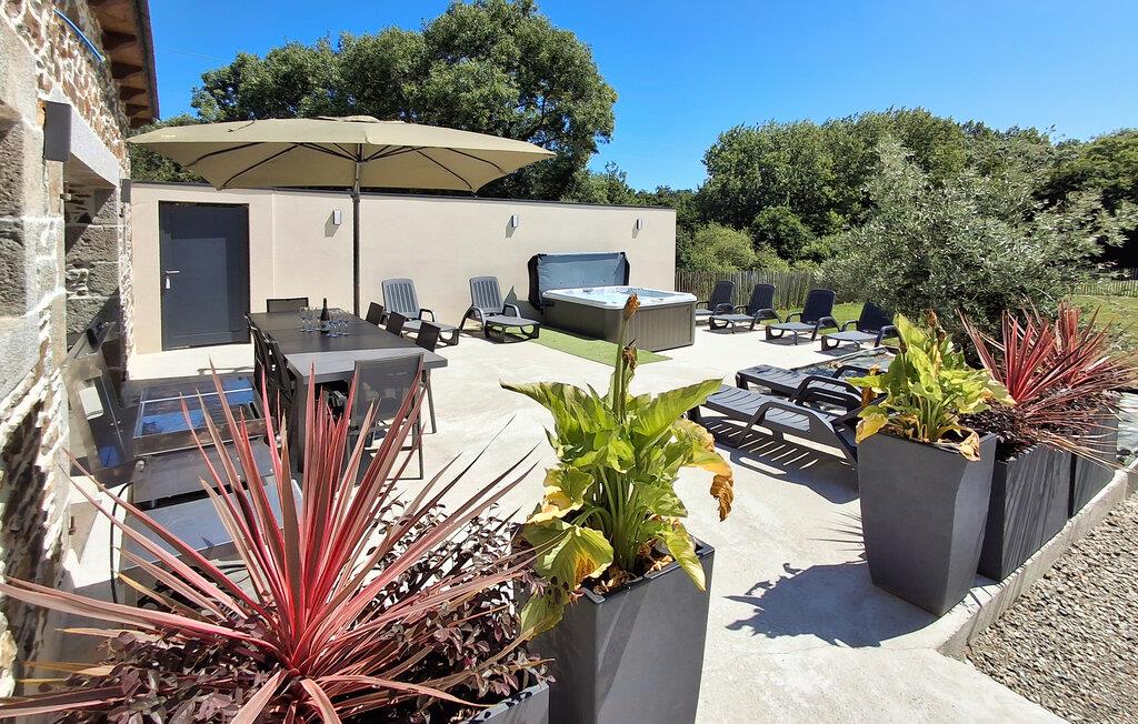 Med et bordtennisbord, en dartskive og en velplejet græsplæne tilbyder det afsondrede udendørsområde også masser af sjov for yngre gæster. Forkæl jer selv med afslappende øjeblikke i spabadet i fuldstændig privatliv, genoplad batterierne på liggestolen, og brug den indbydende terrasse til stemningsfulde grillmiddage.