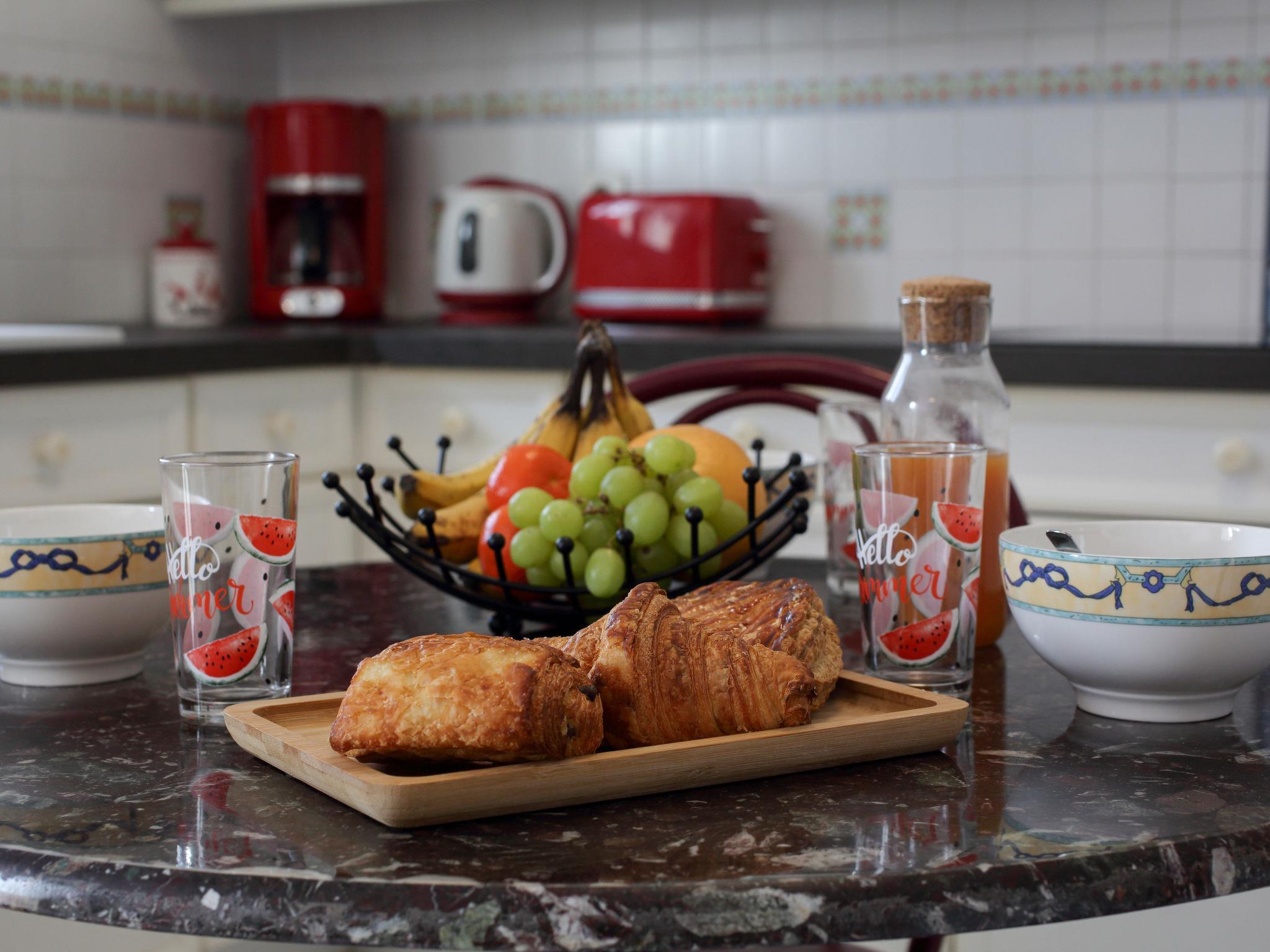 4-room house 70 m2, south-west facing position. Comfortable furnishings: living/dining room with TV (flat screen). Exit to the terrace. 1 room with 1 french bed (1 x 160 cm, length 200 cm). 1 room with 1 french bed (1 x 140 cm, length 190 cm). 1 room with 1 bed (90 cm, length 190 cm), 1 x 2 bunk beds (90 cm, length 190 cm). Open kitchen (oven, dishwasher, 3 induction hot plates, toaster, kettle, microwave, freezer, electric coffee machine, Capsules for coffee machine (Nespresso) extra). Shower, sep. WC. Electric heating. Terrace 18 m2, south facing position and west facing position. Terrace furniture, barbecue. Facilities: washing machine, dryer, iron, hair dryer. Internet (WiFi, free). Please note: non-smoking house. Maximum 1 small pet/ dog allowed. Smoke alarm. Bookings accepted for holiday purposes only. Bed layout is flexible. There are more sleeping options available than the maximum number of people allowed which may, however, not be exceeded. Offer by a commercial proprietor according to Art. 155, IV, CGI 44131000176UH