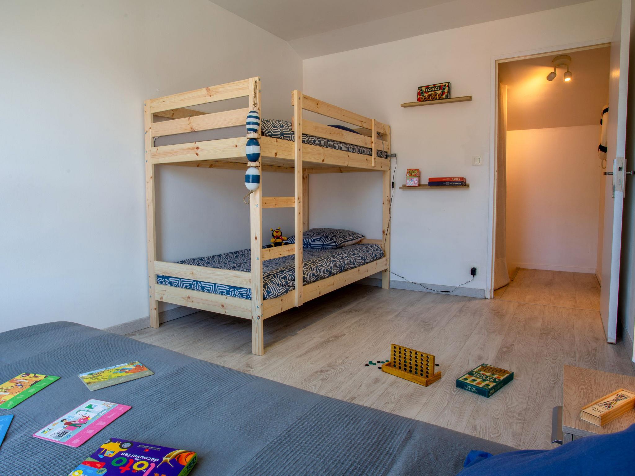 "Les Matelos", 4-room terraced house 80 m2 on 2 levels. Beautiful furnishings: living/dining room with dining table. Exit to the patio. 1 room with 1 french bed (1 x 160 cm, length 200 cm). 1 room with 1 french bed (1 x 160 cm, length 200 cm). Open kitchen (1 hot plate, oven, dishwasher, Gas stove, 4 gas rings, toaster, kettle, microwave, freezer, electric coffee machine, cooking island). Exit to the patio. Bath/shower, sep. WC. Upper floor: 1 room with 1 x 2 bunk beds (90 cm, length 190 cm), electric heating. Small garden 35 m2, west facing position. Terrace furniture. Facilities: children's high chair, baby cot for up to 2 year olds, hair dryer. Parking (1 car). Please note: non-smoking house. Smoke alarm. Offer by a private individual according to Art. 155, IV of CGI. 44131000685CP
