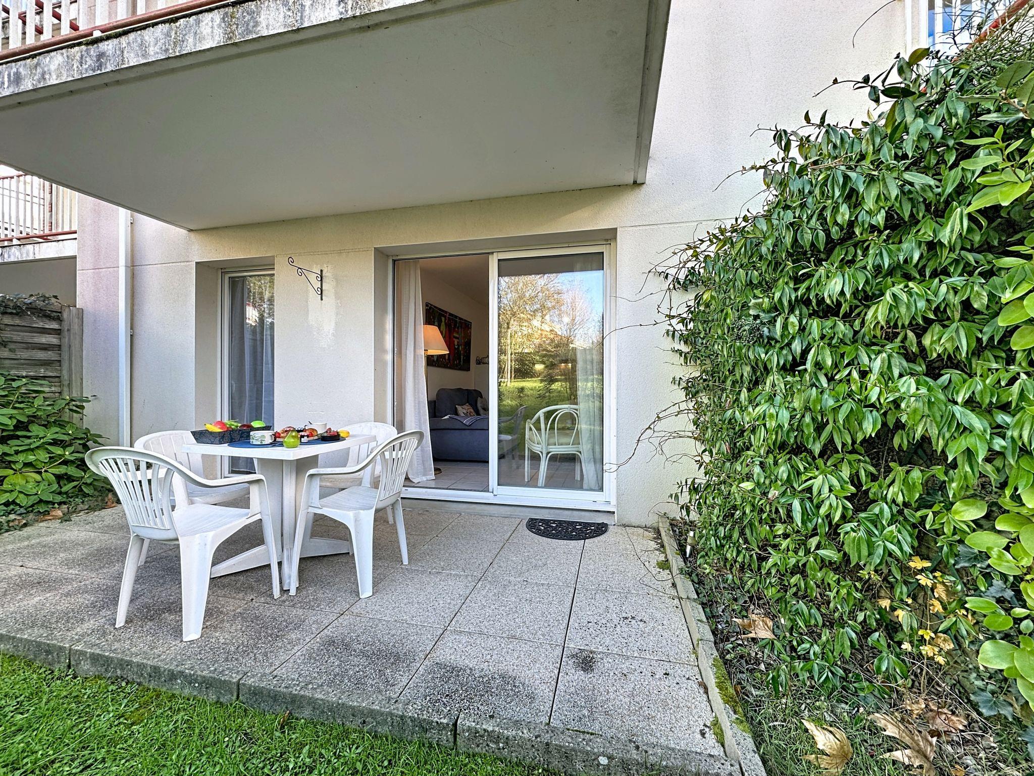 "Le Clos de la Corderie", 2-room apartment 46 m2, on the ground floor, west facing position. Spacious, modern furnishings: living/dining room with 1 double sofabed (1 x 140 cm, length 190 cm), TV (flat screen). Exit to the terrace, to the patio, west facing position. 1 room with 1 french bed (1 x 160 cm, length 200 cm). Exit to the terrace, to the patio, west facing position. Open kitchen (dishwasher, 4 ceramic glass hob hotplates, toaster, kettle, microwave, electric coffee machine). Bathroom, sep. WC. Electric heating. Terrace 20 m2, west facing position, patio 25 m2, west facing position. Terrace furniture. Facilities: washing machine, iron, hair dryer. Internet (WiFi, free). Parking space n 27 (roofed, 1 car). Please note: non-smokers only. Smoke alarm. Offer by a private individual according to Art. 155, IV of CGI. 44131001317DU