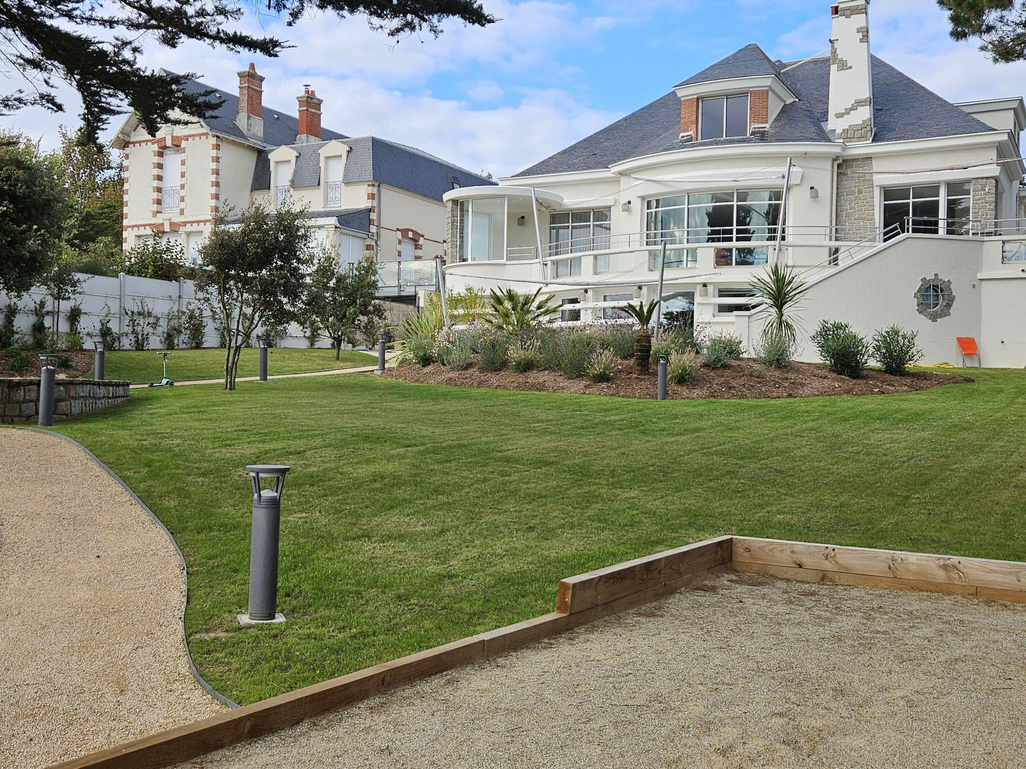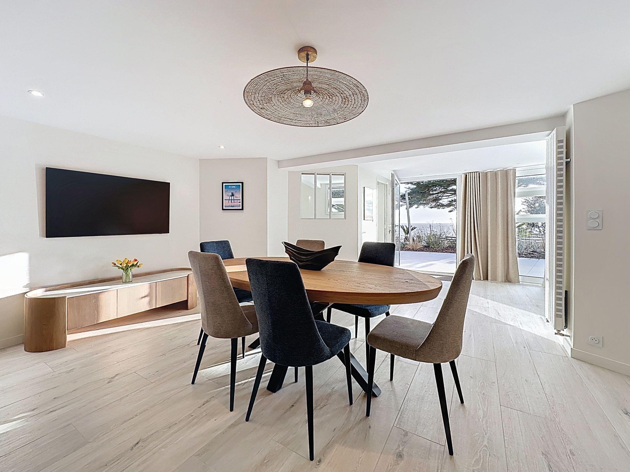 Very beautiful, luxurious 2-family house "Le Vent d'Avril", 2 storeys, detached, renovated in 2025. In the district of La Birochère - Les Sylphes, in a quiet position, 30 m from the sea, 30 m from the beach, direct access to the beach, south facing position. Private: property 1'700 m2, well-kept garden 650 m2 (fenced). Boules, parking. E-charging station. Shop 1.3 km, grocery 1 km, supermarket 1 km, restaurant 50 m, bakery 1 km, café 1 km, 20 minute walk to the centre, bus stop "Joli Séjour" 900 m, railway station "Gare de Pornic" 1.3 km, sandy beach "Plage de la Birochère" 30 m, thermal baths "Alliance Pornic Thalasso & Spa" 500 m. Sports harbour 1.3 km, golf course (18 hole) 6 km, minigolf 6 km, walking paths from the house 30 m, fishing possibilities 100 m. Nearby attractions: Plage de la Birochère 30 m, Alliance Pornic Thalasso & Spa 500 m, Port de Pornic 1.3 km, La Bernerie en Retz 8 km, Saint Brevin 20 km, Nantes 45 km. Well-known lakes can easily be reached: Lac de Saint Viaud 23 km. Hiking paths: Sentier des Douaniers Pornic 30 m. Please note: 1st floor is closed and not occupied.