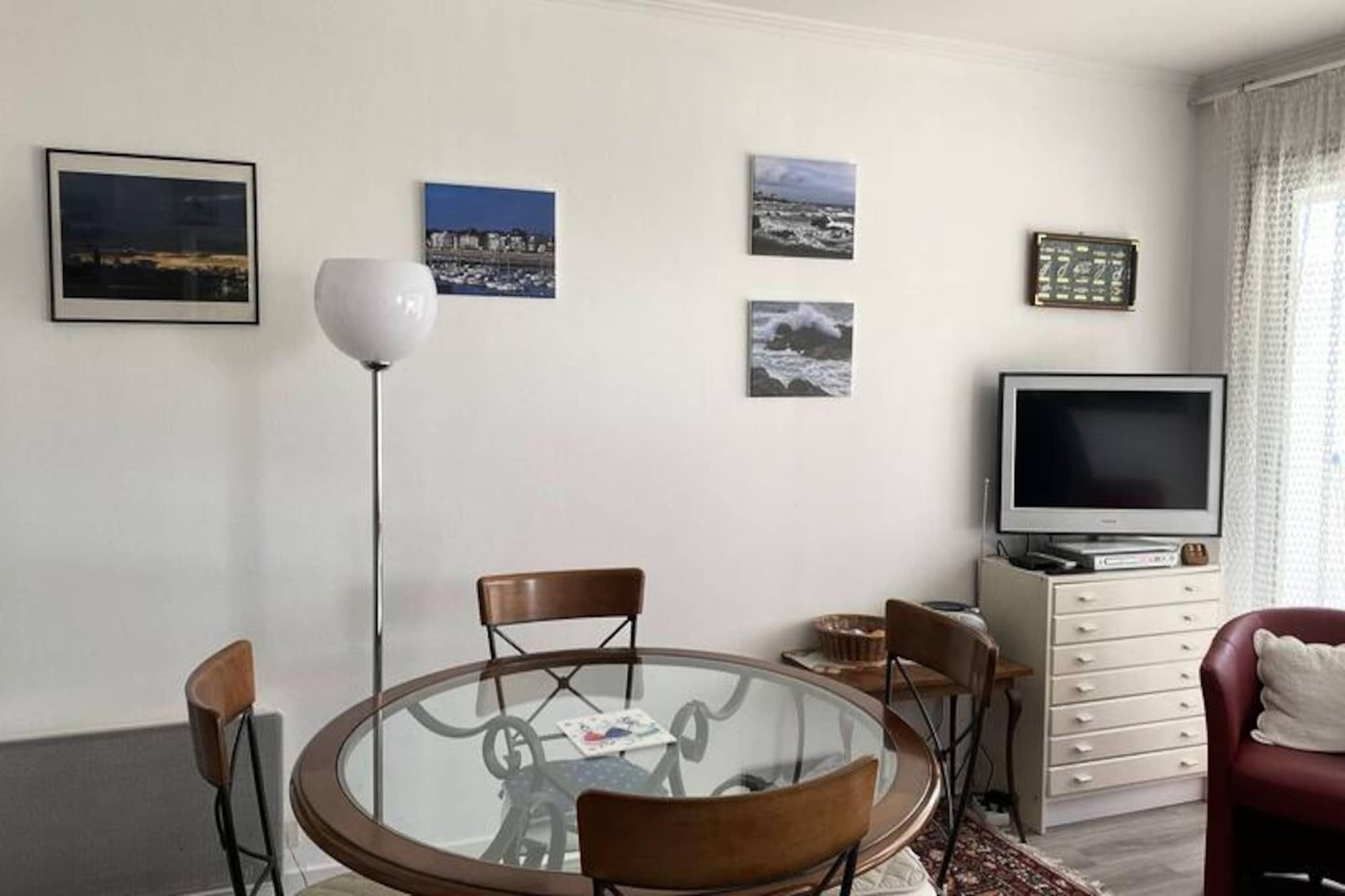 Væk dine sanser til Atlanterhavets blide rytme i denne lyse og indbydende lejlighed i Pornichet. Beliggende på anden sal i en moderne bygning med elevator, tilbyder dette kystnære tilflugtssted en betagende havudsigt fra sin rummelige terrasse, der skaber en rolig kulisse for din ferie. Uanset om du nipper til kaffe ved solopgang eller nyder et glas vin, mens solen går ned, er terrassen dit private fristed til at nyde den franske kysts skønhed. Kun få skridt fra sandstranden er denne ejendom perfekt placeret til afslapning og udforskning ved havet. \n\nIndenfor kan lejligheden prale af en gennemtænkt planløsning designet til komfort og bekvemmelighed. Stue-/spisestuen er badet i naturligt lys og er problemfrit forbundet med terrassen, hvilket gør den ideel til afslapning efter en dag ved havet. Det fuldt udstyrede køkken indbyder til kulinarisk kreativitet, mens de to hyggelige soveværelser tilbyder afslappende tilflugtssteder. Det første soveværelse har to enkeltsenge og en udtræksseng, perfekt til familier eller grupper, og åbner også ud til terrassen. Det andet soveværelse med sin bløde dobbeltseng og private balkon tilbyder en rolig tilflugtssted. Et moderne badeværelse og separat toilet fuldender faciliteterne og sikrer et problemfrit ophold. Derudover er der en dedikeret parkeringsplads bag bygningen, der bidrager til bekvemmeligheden. \n\nDenne lejlighed, der ligger kun 500 meter fra togstationen, er en indgangsport til Pornichets pulserende charme. Nærliggende butikker, caféer og restauranter inviterer dig til at fordybe dig i den lokale kultur, mens nærheden til stranden gør det nemt at dyrke vandsport, solbade eller gå en tur langs kysten. Uanset om du udforsker den maleriske kystlinje eller blot nyder komforten i denne veludstyrede lejlighed, er hvert øjeblik her en hyldest til livet ved kysten. \n\nVælg dette kystparadis til din næste ferie og skab uforglemmelige minder i hjertet af Bretagnes fantastiske kystlinje.