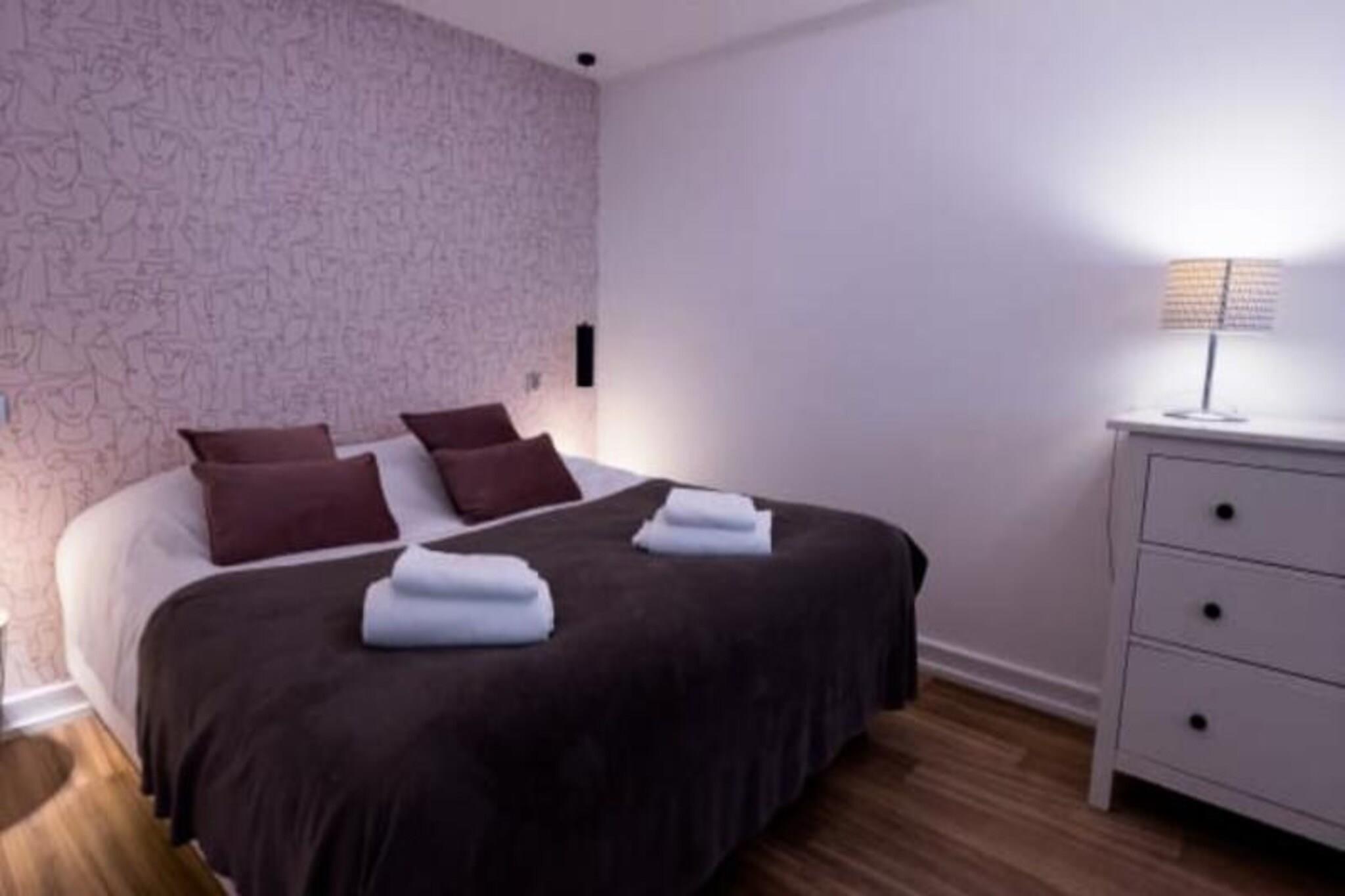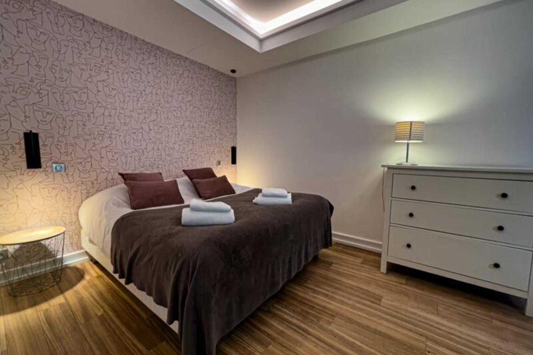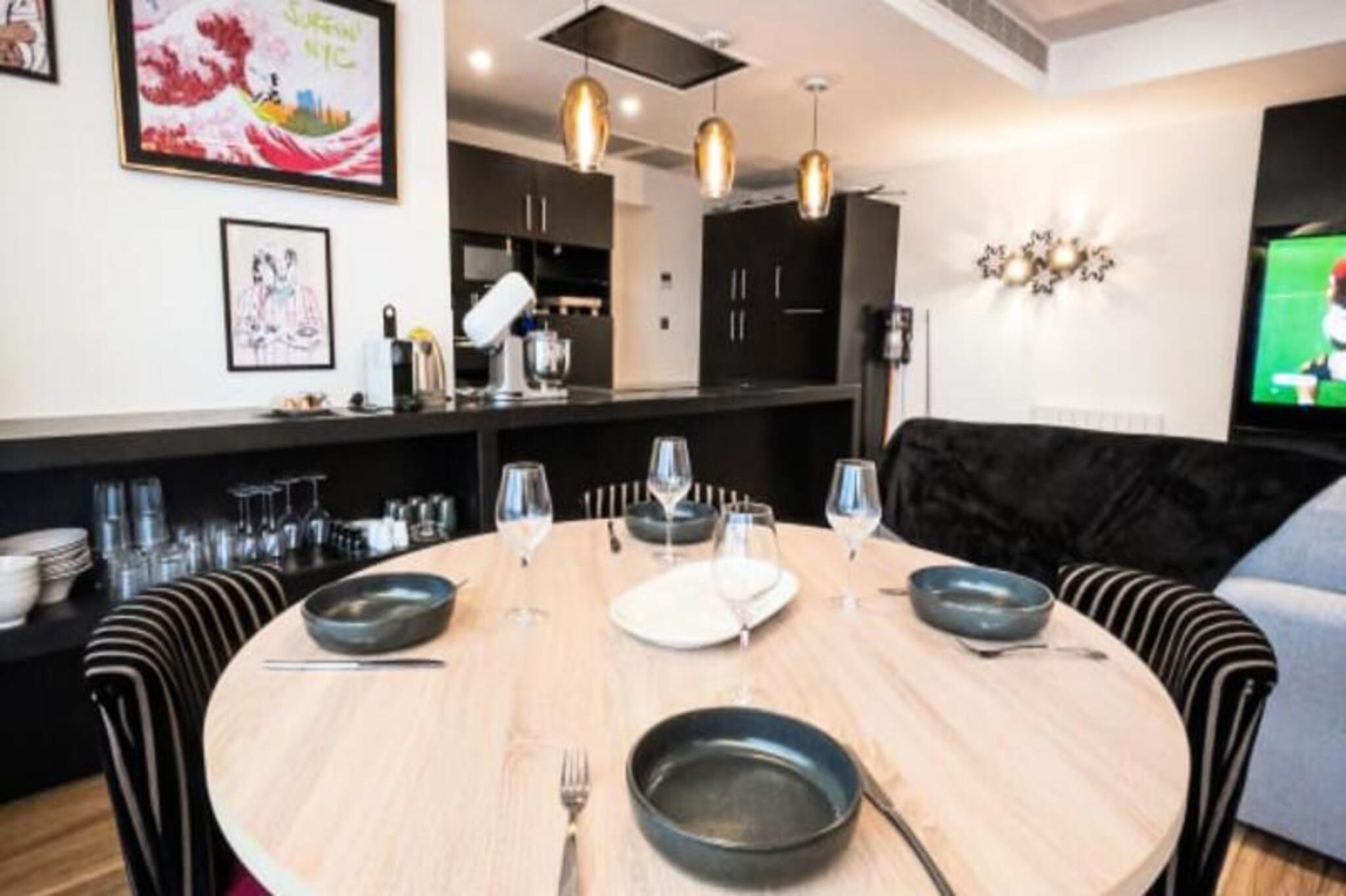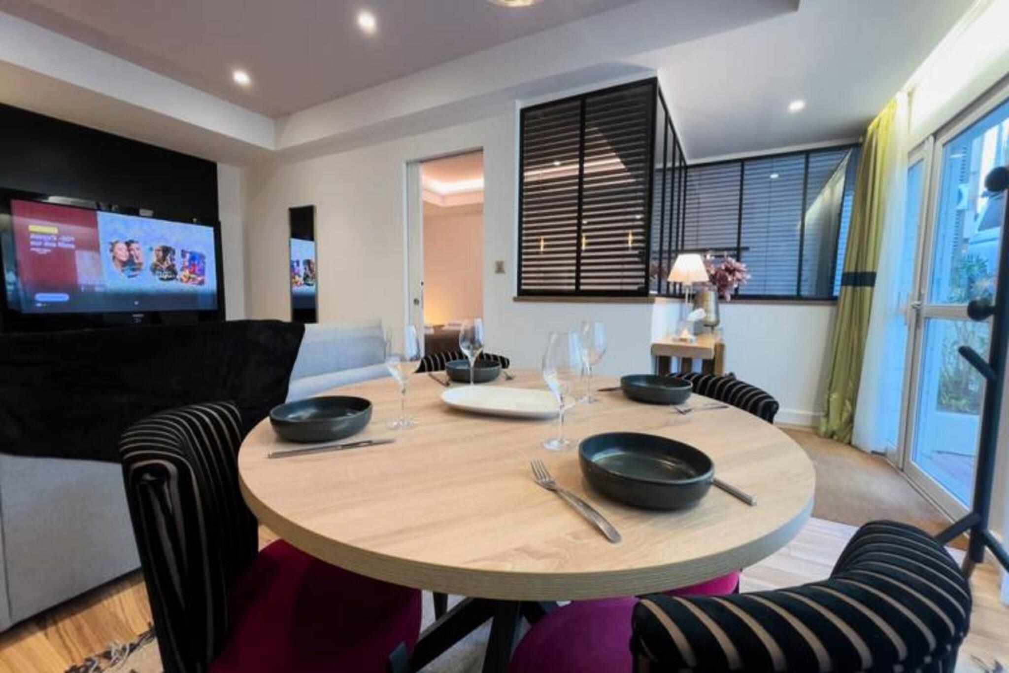 Denne højstandard T1-lejlighed tilbyder et behageligt ophold med hotellignende tjenester. Beliggende på første sal i en historisk bygning, det har et soveværelse og en stue med en sovesofa, der kan rumme op til fire gæster. Kvalitet sengetøj leveres. Selvom kæledyrsvenlighed ikke er nævnt, er det bedst at bekræfte med værten. Ejendommen er stolt af personlig velkomst og opmærksomhed under hele dit ophold. Beliggende i Pornichet, en dynamisk familiebadeby, der deler strand med La Baule, er dette feriehus ideelt beliggende. Pornichet er kendt for sin livlige strandscene, kasino, marina og lokale attraktioner som "Le Bidule". Den omkringliggende region byder på rig arv og muligheder for udforskning, herunder Guérandes strandenge, Brière regionale park, Saint Nazaires skibsbygningsaktiviteter, Le Croisics fiskerihavne og Morbihan-bugten, kun en kort afstand derfra. Lejligheden er fuldt udstyret med køkken med ovn, mikroovn, opvaskemaskine, køleskab og fryser samt madlavnings- og serveringsudstyr til fire. Der er også vaskemaskine og tørretumbler. Alle værelser har aircondition, og der er trådløs internetadgang overalt. Adgang sker via en udvendig trappe. Ekstraudstyr inkluderer parkering, adgang til et spa-hammam-område og massage (afhængig af tilgængelighed og reservation). Ingen depositum er påkrævet.