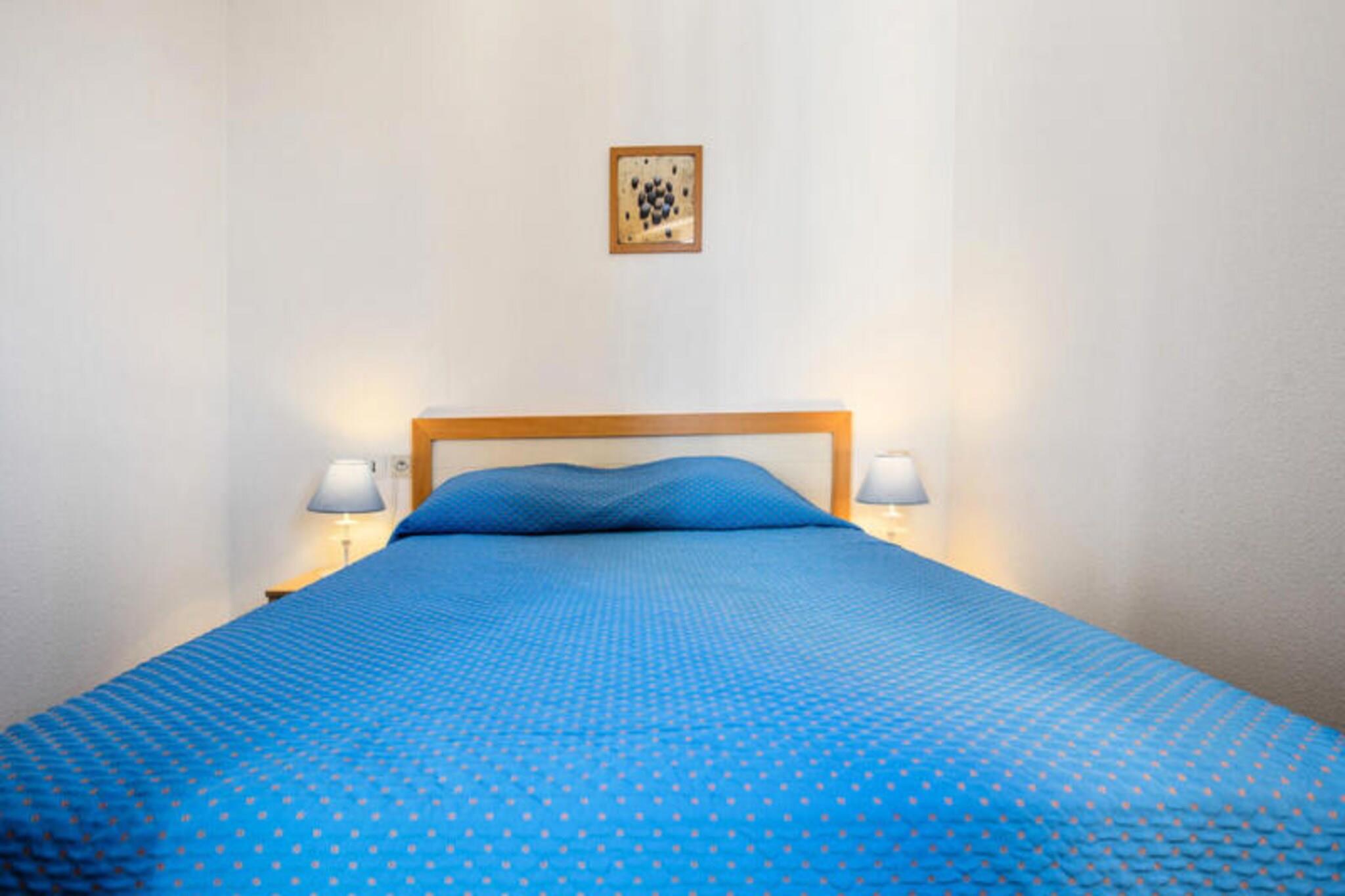 Denne charmerende 2-værelses lejlighed kan rumme op til 6 gæster, og tilbyder en komfortabel og velholdt plads til din ferie ved havet. Lejligheden har en hyggelig stue, et privat soveværelse, et kabineområde, et fuldt udstyret køkken og et badeværelse. Med kæledyrsvenlige muligheder (mod betaling) og Wi-Fi-adgang mod et gebyr, er det et ideelt tilflugtssted for familier eller grupper, der søger bekvemmelighed og afslapning. Elevatorer og cykelopbevaring i boligen gør dit ophold lettere. Lejligheden ligger direkte ved stranden og har en førsteklasses beliggenhed kun 600 meter fra butikker og i gåafstand fra et kendt thalassoterapicenter. Gæsterne kan udforske nærliggende attraktioner såsom golfbaner, tennisklubber og et kasino. Friluftsentusiaster vil sætte pris på områdets brede udvalg af vandsports- og cykelmuligheder, mens de lokale caféer og markeder byder på en smag af regional charme. Lejlighedens køkken indeholder væsentlige apparater til at tilberede måltider, og dets moderne badeværelse sikrer komfort og bekvemmelighed. Yderligere tjenester såsom leje af babyudstyr, overdækket parkering og adgang til et nærliggende wellnesscenter med spabade og saunaer forbedrer oplevelsen. Slutrengøring og linnedservice er tilgængelige mod et gebyr, hvilket sikrer en bekymringsfri ferie ved havet.