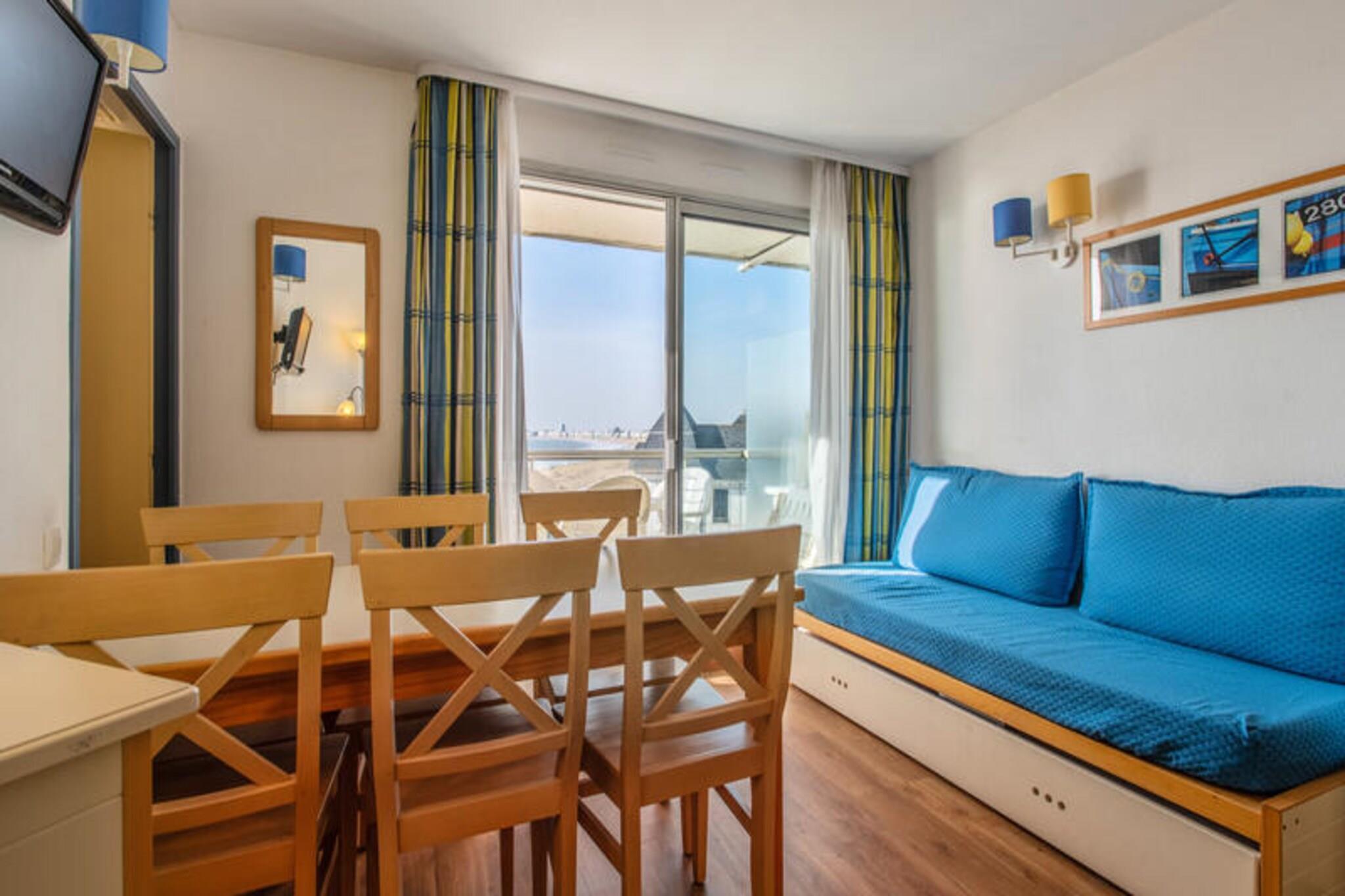 Denne hyggelige lejlighed ligger kun 20 meter fra stranden og tilbyder et førsteklasses sted for dem, der ønsker at nyde havet. Det kan rumme op til 4 personer, med en stue med en sovesofa til to og et kabineområde med køjesenge. Lejligheden indeholder også et separat soveværelse med dobbeltseng og et badeværelse med badekar-bruser kombination. Kæledyr er tilladt (spørg venligst for detaljer), og parkering er inkluderet for din bekvemmelighed. Boligen tilbyder også Wi-Fi-adgang (afhængigt af tilgængelighed) og en obligatorisk slutrengøring. Boligens beliggenhed er ideel for dem, der søger både afslapning og eventyr. Ud over stranden, som ligger kun en kort gåtur væk, ligger Thalassoterapi-centret 600 meter fra din udlejning, og tilbyder en række wellness-behandlinger. For dem, der elsker sport, er der en nærliggende golfbane, en tennisklub og vandaktiviteter at nyde. Det populære kasino er også inden for rækkevidde, hvilket sikrer, at der er noget for enhver smag. Derudover er der butikker placeret 600 meter væk, perfekt til at fylde op på det væsentlige eller udforske lokale butikker. Inde i lejligheden finder du et halvåbent køkken fuldt udstyret til at tilberede måltider, hvilket gør det til et godt valg for dem, der foretrækker selvforplejning. Opholdsrummet inkluderer også en spiseplads med bord og stole, ideel til at nyde måltider med din gruppe. Lejligheden ligger på 4. sal og byder på altan, hvor du kan nyde frisk luft og udsigt til omgivelserne. En overdækket parkeringsplads er inkluderet for din bekvemmelighed.