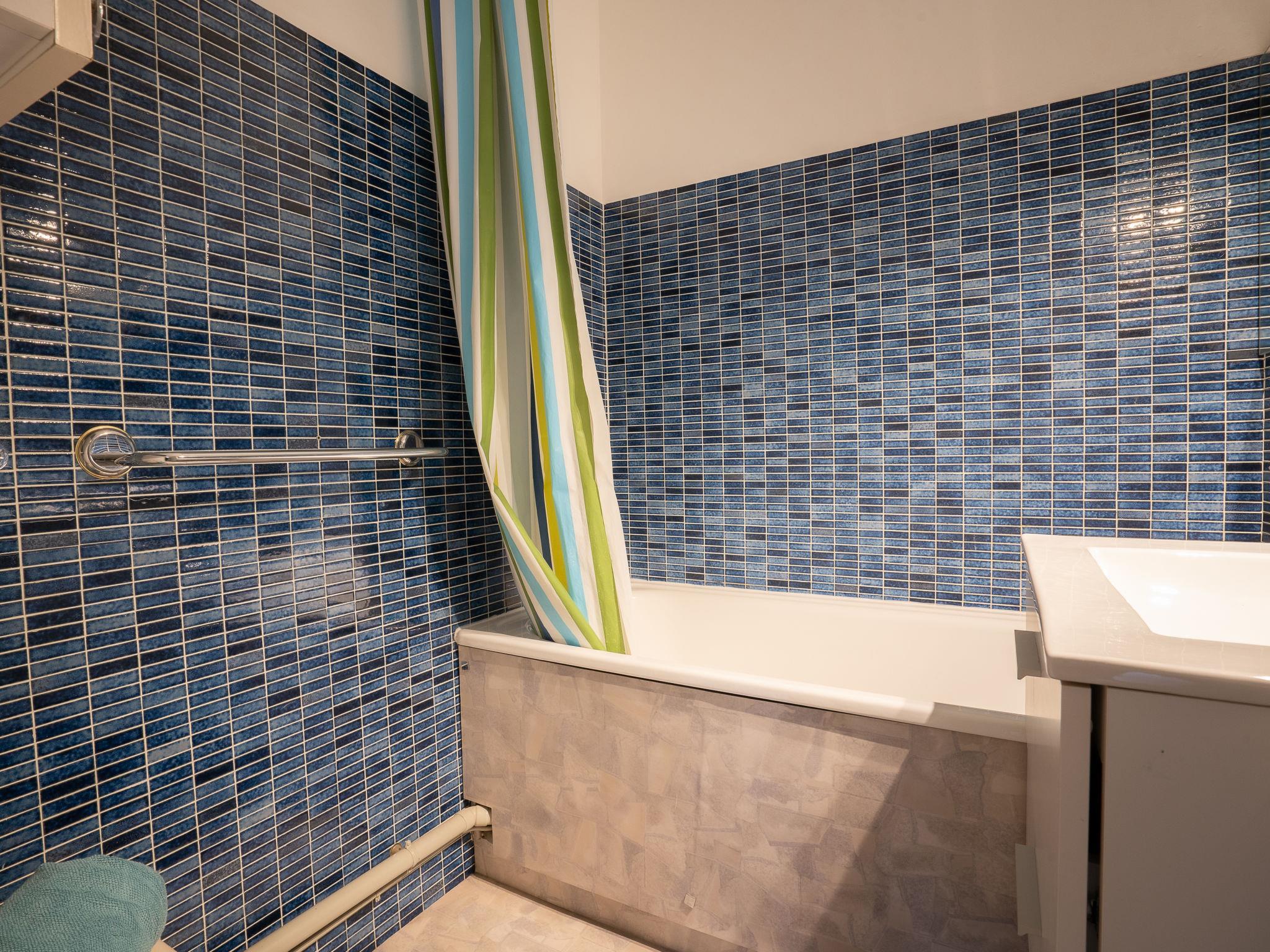 2-room apartment 27 m2 on 2nd floor. Living/dining room with 1 french bed (140 cm, length 190 cm), TV and air conditioning. 1 room with sliding door with 1 x 2 bunk beds (90 cm, length 180 cm). Small, open kitchen (3 hot plates, oven, microwave). Bathroom, sep. WC. Terrace 10 m2, east facing position. Terrace furniture. Facilities: Internet (WiFi, extra). Please note: smoke alarm.