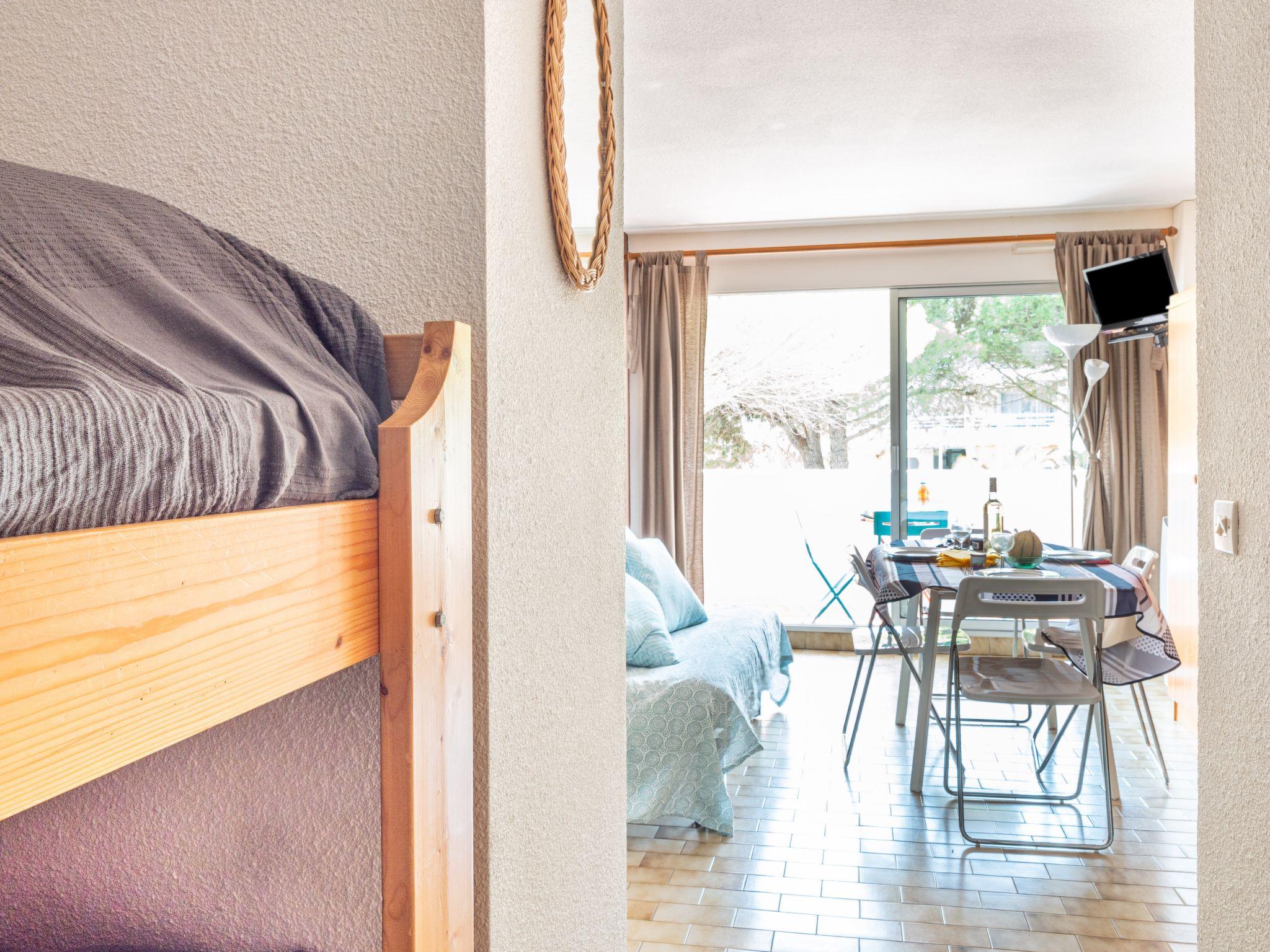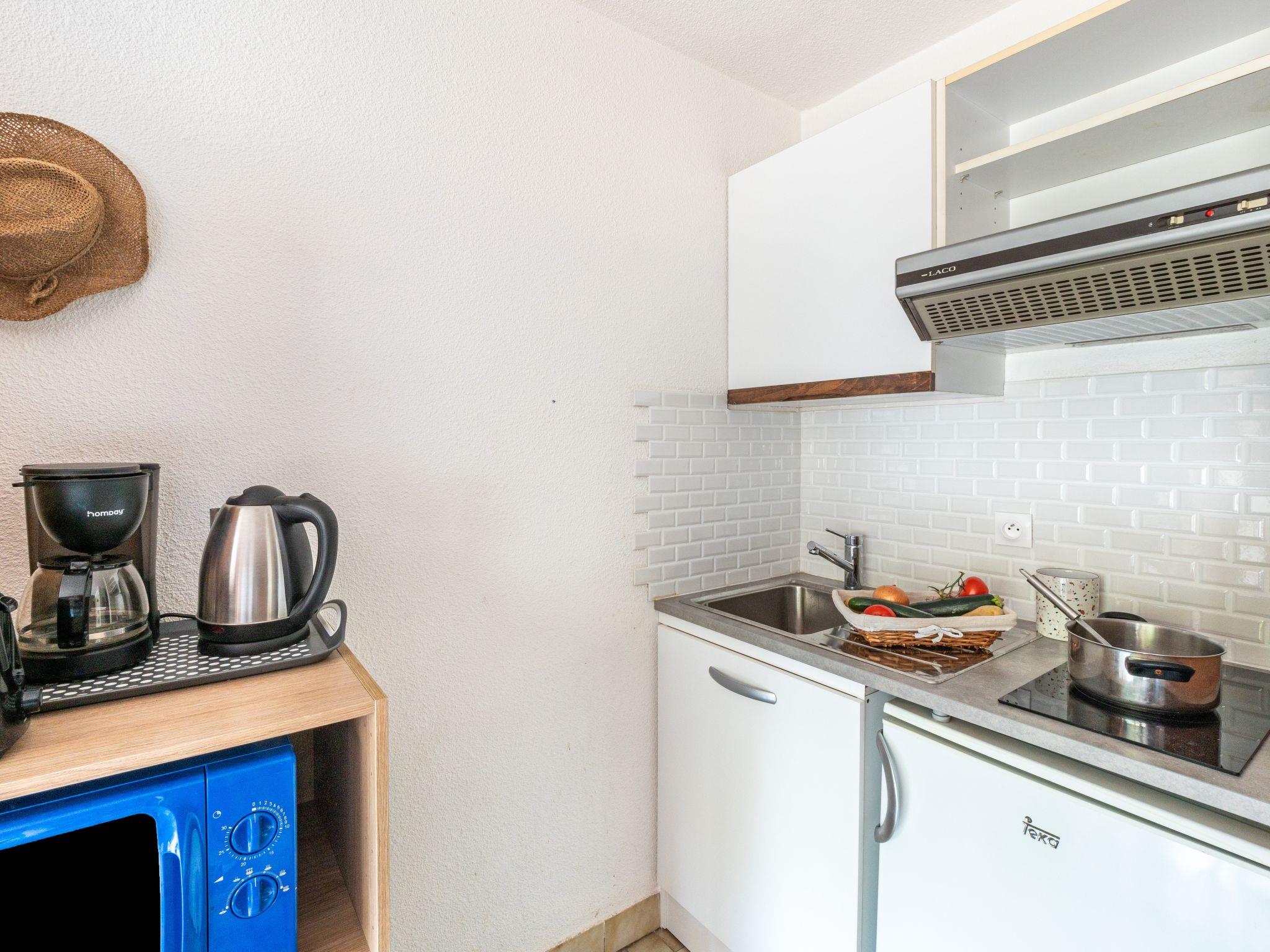 1-room studio 25 m2 on 1st floor. Object suitable for 2 adults + 2 children. Living/dining room with 1 double sofabed (140 cm, length 190 cm), TV (flat screen). Exit to the terrace. Sleeping alcove with 1 x 2 bunk beds (90 cm, length 190 cm). Kitchenette (2 hot plates, microwave, electric coffee machine). Hip bath/WC. Small terrace. Terrace furniture. Facilities: Internet (WiFi, extra). Please note: suitable for families. No parking. Smoke alarm. Instead of an enclosed bedroom, some sleeping areas are located in an open-plan area (gallery, alcove, etc.).