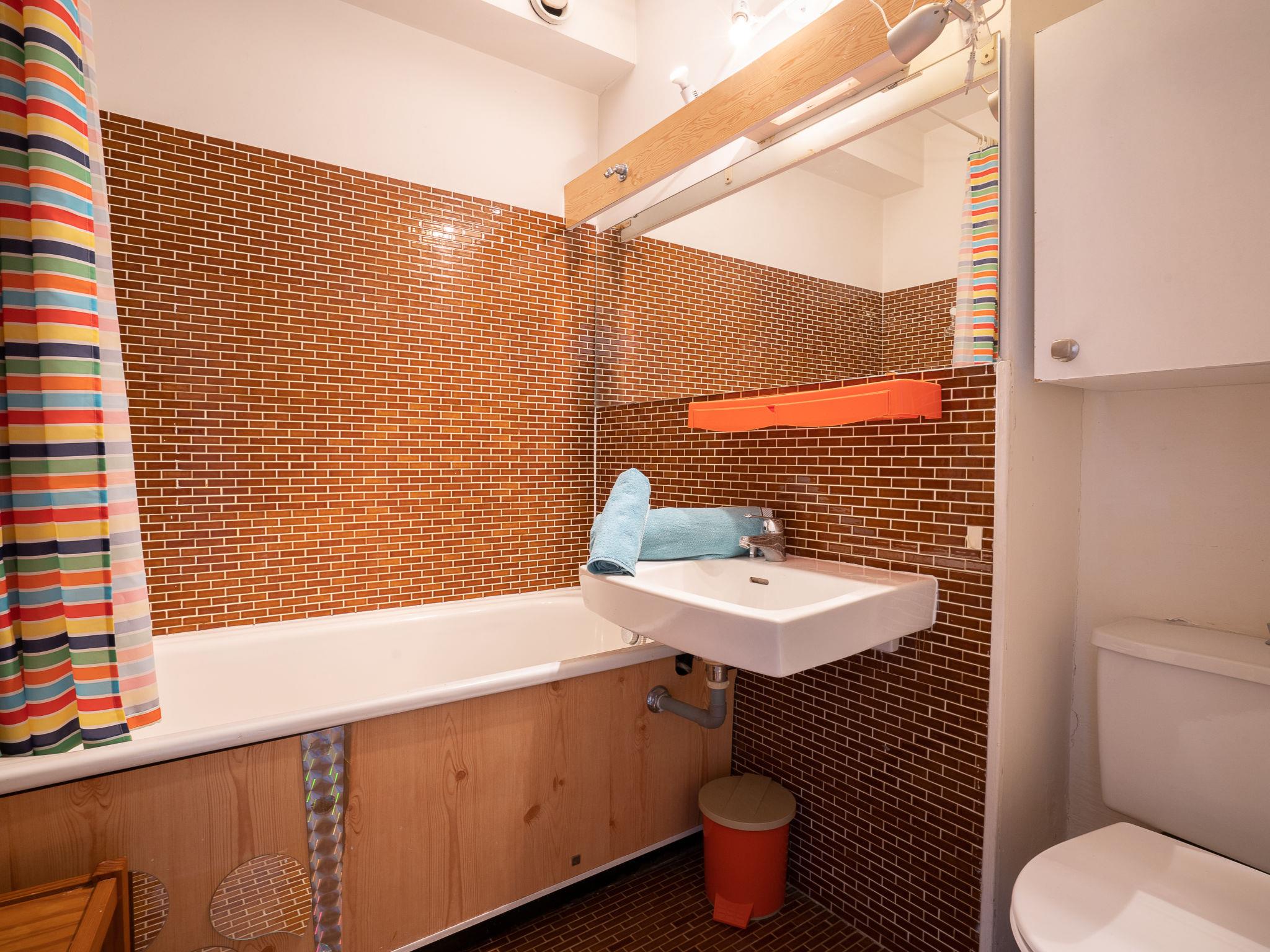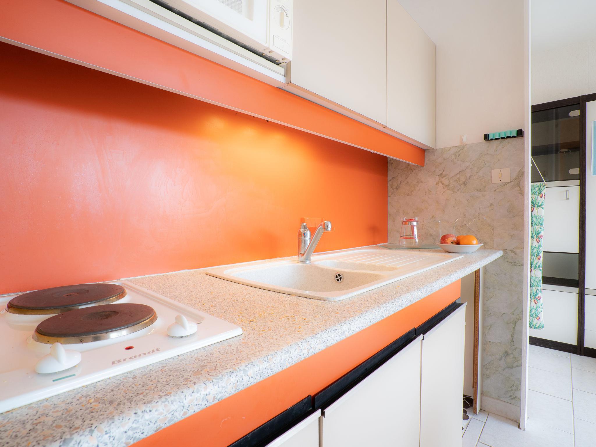 1-room studio 27 m2 on 1st floor. Living/dining room with 1 double sofabed (140 cm, length 190 cm), 1 x 2 bunk beds (80 cm, length 190 cm), TV. Kitchenette (2 hot plates, oven, microwave). Bath/WC. Terrace 8 m2, north-east facing position. Terrace furniture. Facilities: Internet (WiFi, extra). Please note: apartment carpark side. Maximum 1 pet/ dog allowed. Smoke alarm. Offer by a private individual according to Art. 155, IV of CGI.