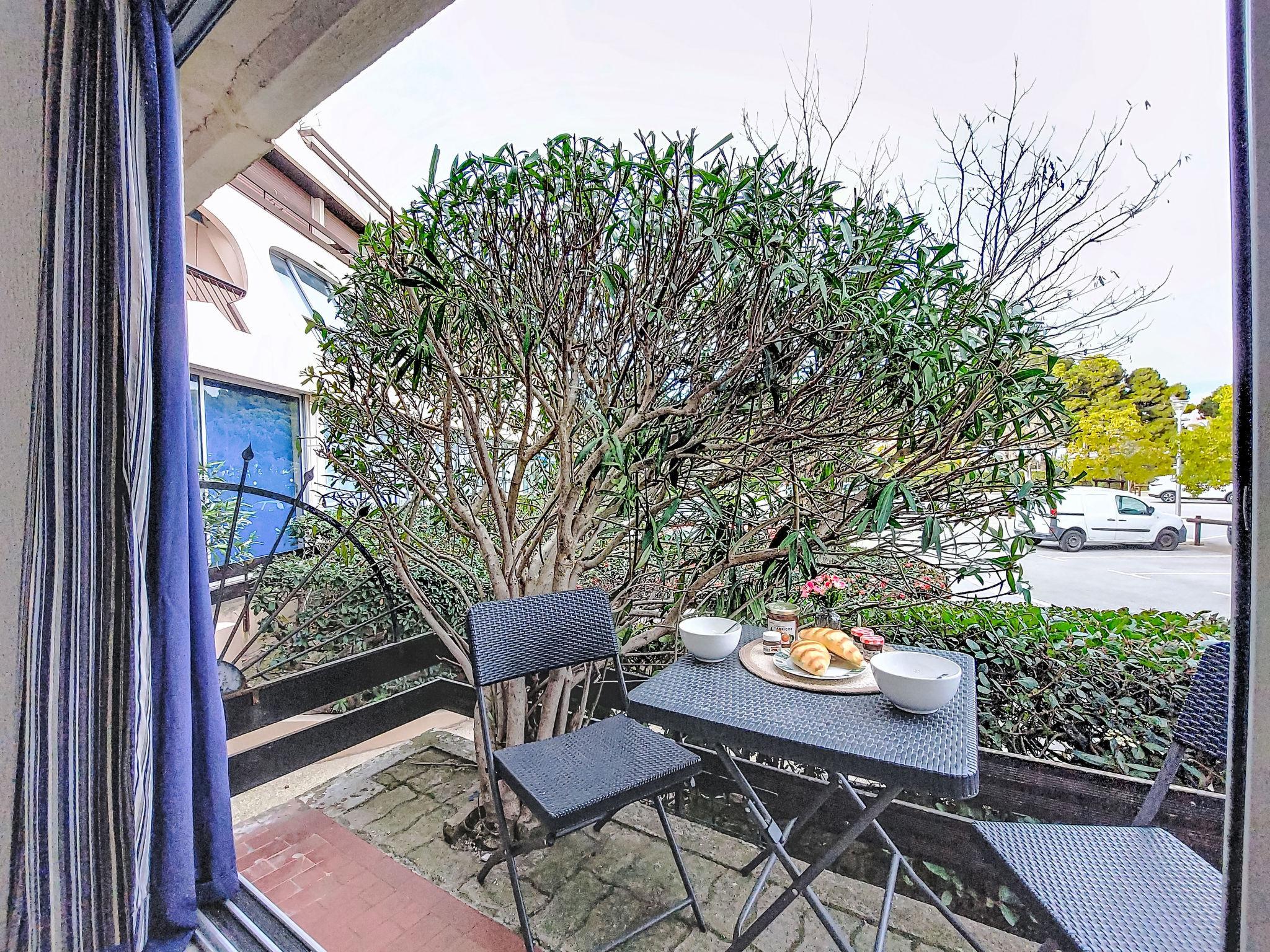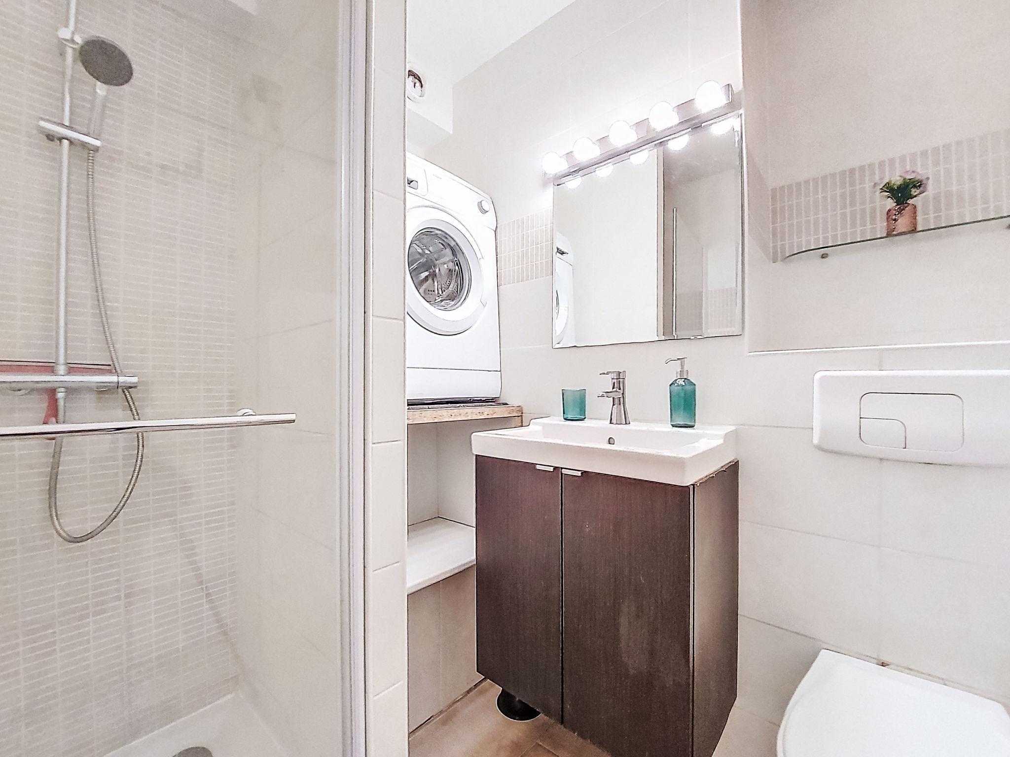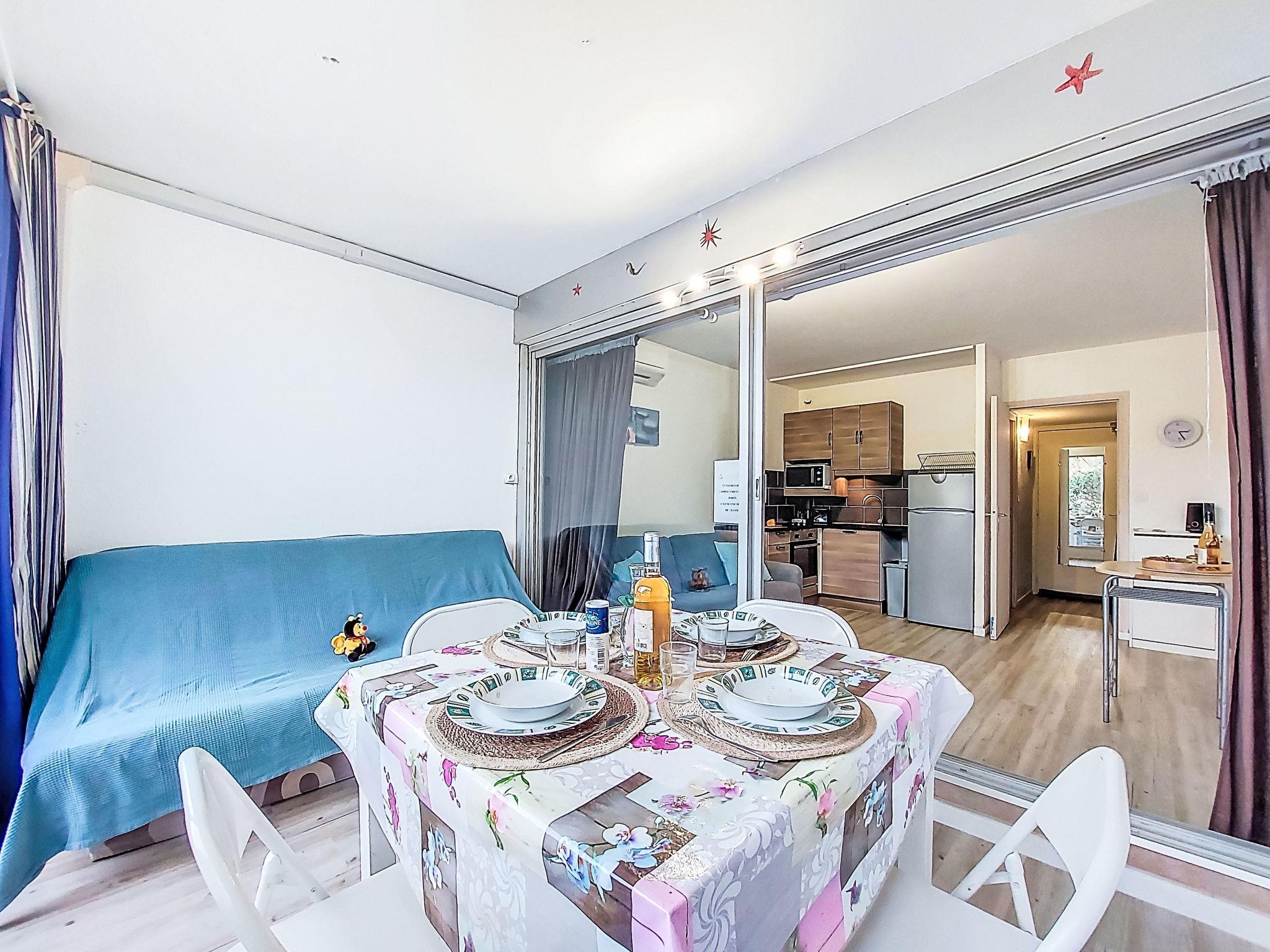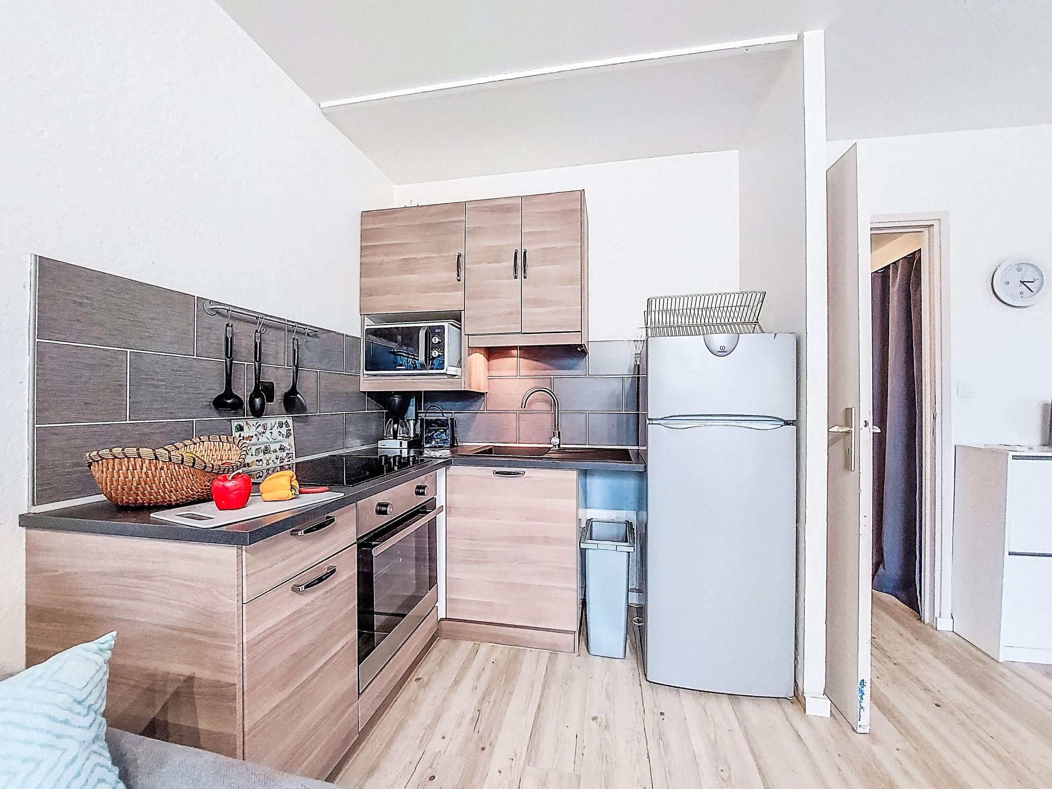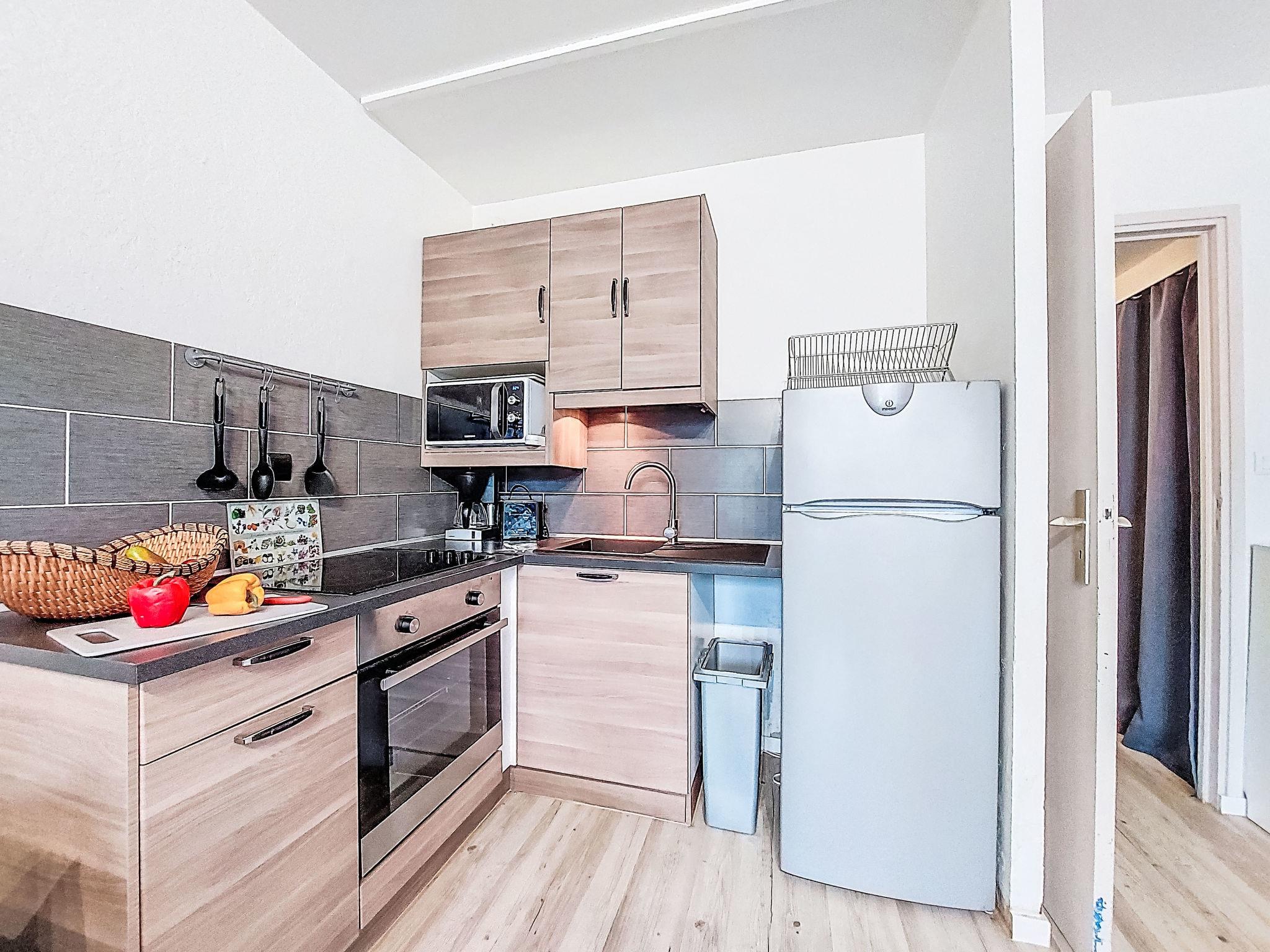 1-room studio 28 m2, on the ground floor. Living/dining room with 2 double sofabeds (140 cm, length 190 cm), air conditioning. Kitchenette (oven, 3 ceramic glass hob hotplates, toaster, kettle, microwave, electric coffee machine). Bathroom, shower/WC. Covered balcony. Facilities: washing machine. Internet (WiFi, free). Parking space n EN COMMUN. Please note: apartment carpark side. Maximum 1 pet/ dog allowed. Smoke alarm.