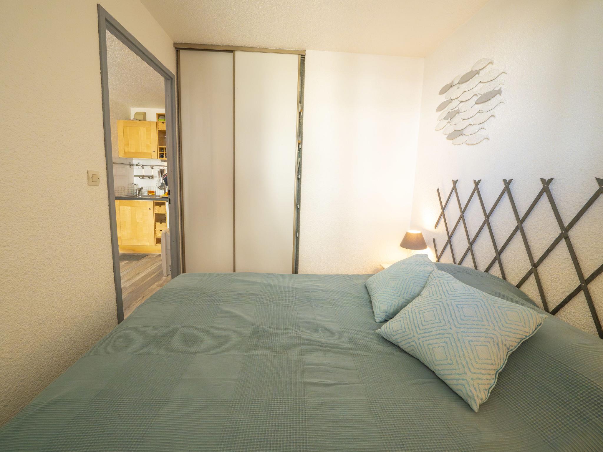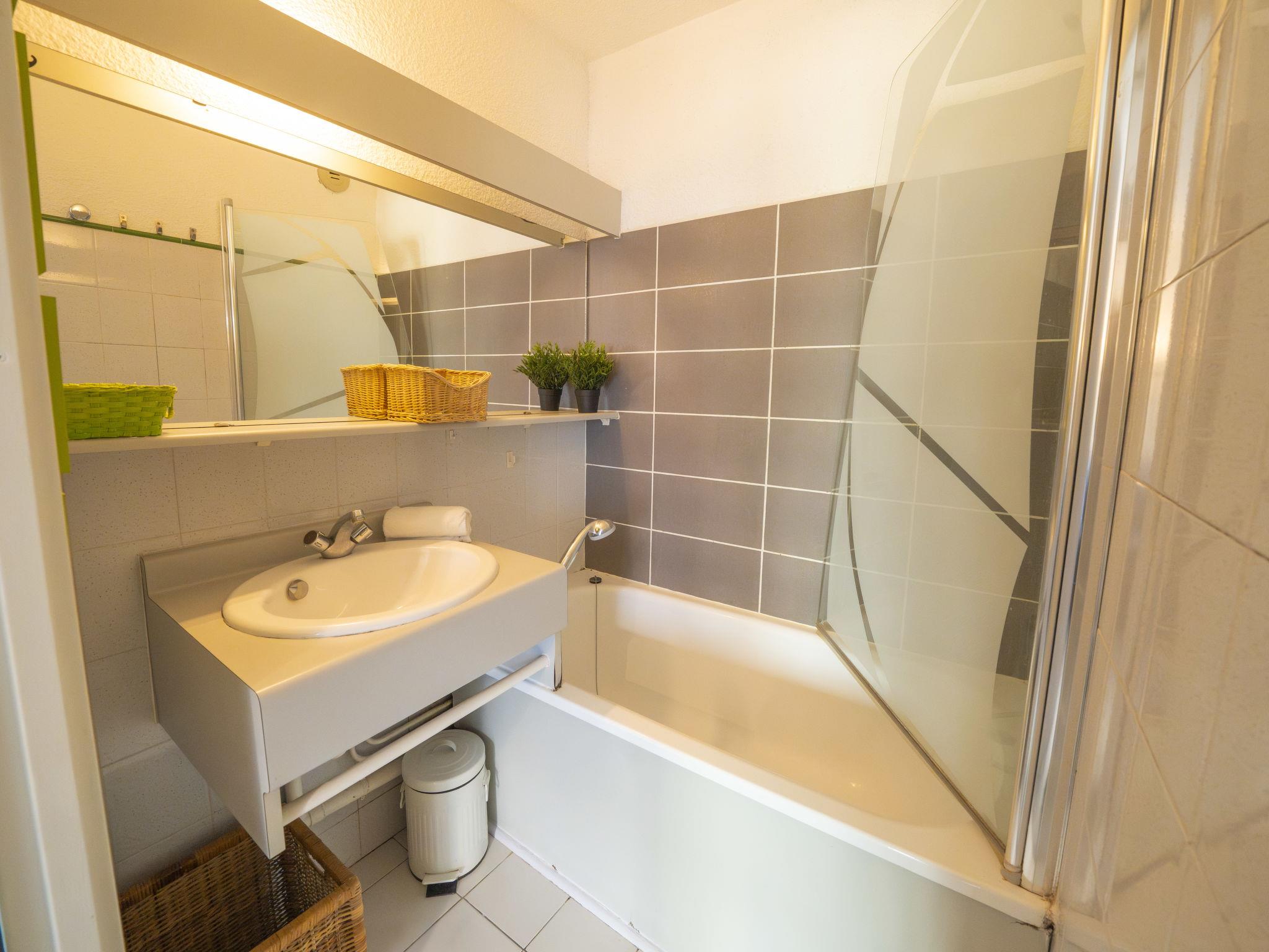 "Les Terrasses du Lac", 2-room apartment 28 m2 on 1st floor, north-east facing position. Object suitable for 2 adults + 2 children. Bright, beautiful furnishings: living/dining room with kitchen corner, bath/WC, separate WC and TV (flat screen), electric heater and fan. Exit to the balcony. 1 small room 10 m2 with 1 bed (140 cm, length 190 cm). Sleeping alcove 6 m2, without window with 1 x 2 bunk beds (90 cm, length 190 cm). Balcony 10 m2, north facing position and, east facing position. Terrace furniture, covered balcony. Partial view of the lake. Facilities: washing machine. Internet (WiFi, free). Parking space n 23 (1 car). Please note: non-smokers only. Maximum 1 pet/ dog allowed. Smoke alarm. Offer by a private individual according to Art. 155, IV of CGI. 30133000783I3
