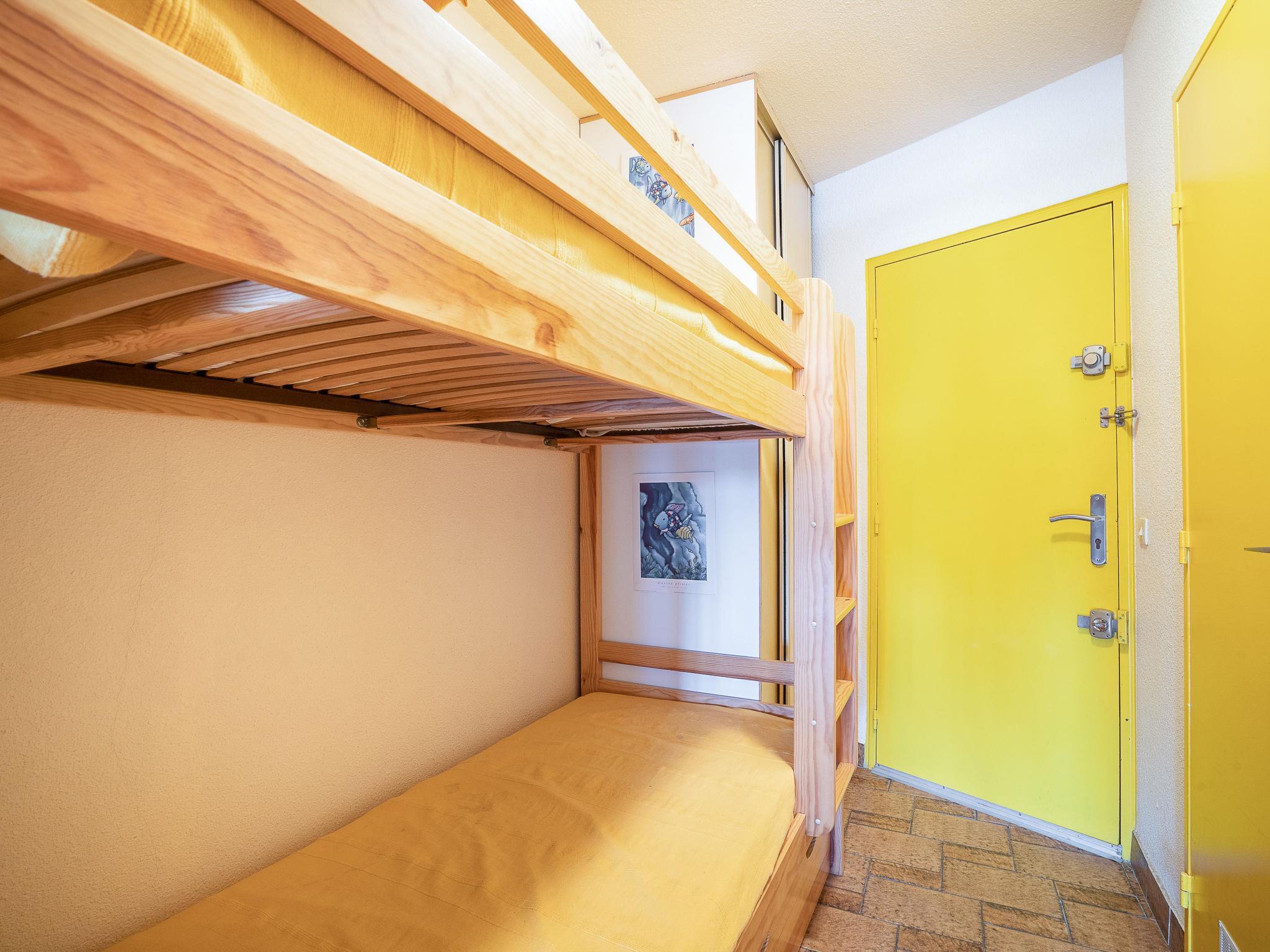 1-room studio 27 m2 on 1st floor. Object suitable for 2 adults + 2 children. Living/dining room with 1 fold-away bed (140 cm, length 190 cm), TV (flat screen). Sleeping alcove with 1 x 2 bunk beds (90 cm, length 190 cm). Kitchenette (mini-oven, oven, 2 ceramic glass hob hotplates, microwave, freezer, electric coffee machine). Shower/WC. Terrace furniture, covered balcony. View of the port. Facilities: washing machine. Internet (WiFi, extra). Please note: no parking. Smoke alarm. Instead of an enclosed bedroom, some sleeping areas are located in an open-plan area (gallery, alcove, etc.).